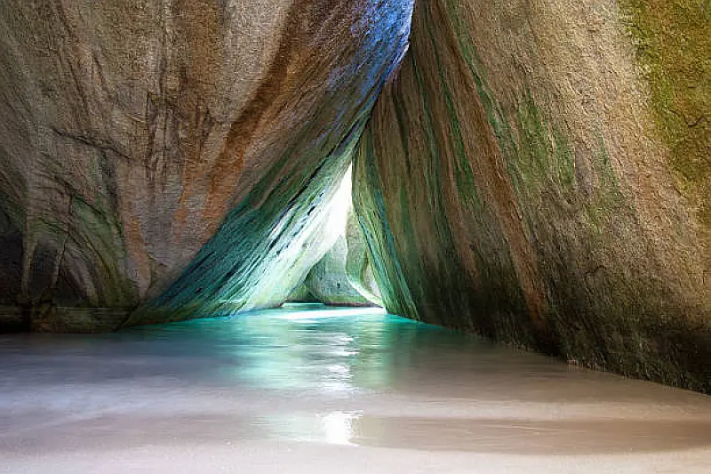 Besuchen Sie The Baths: The Baths sind eine Reihe großer Granitfelsen auf der Insel Virgin Gorda, die natürliche Pools und Grotten bilden.