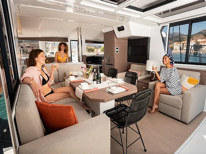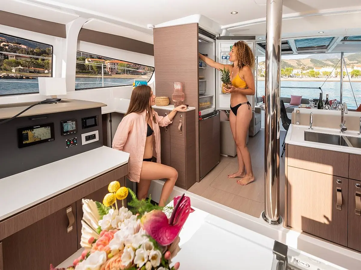 Cockpit-Kissen, Klimaanlage, Generator, Wassermacher, Bimini, Beiboot, Außenbordmotor, Sprayhood, Kühlschrank, Lautsprecher im Cockpit