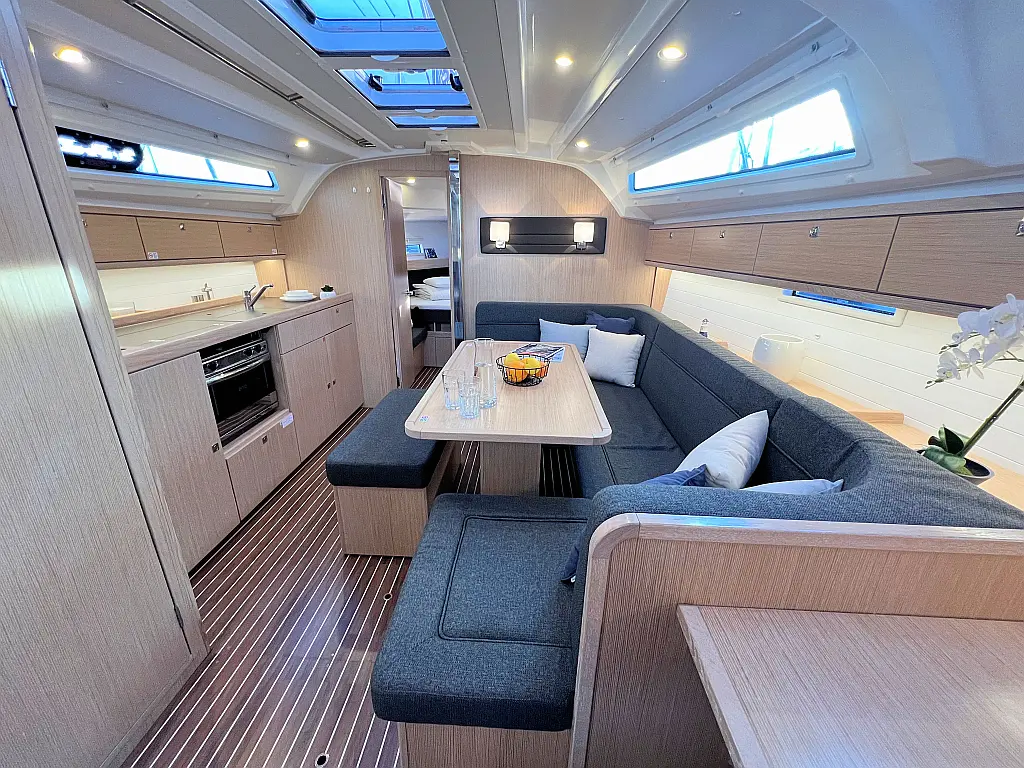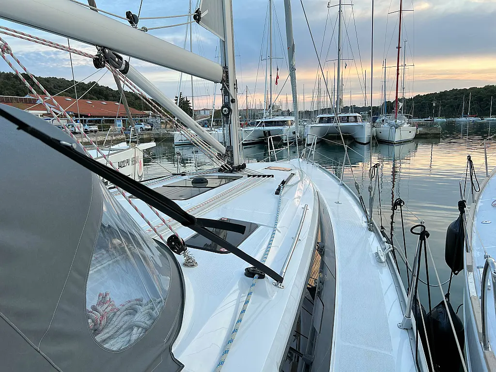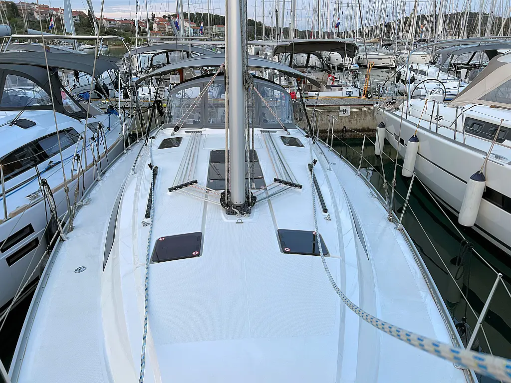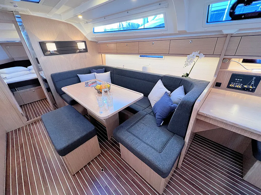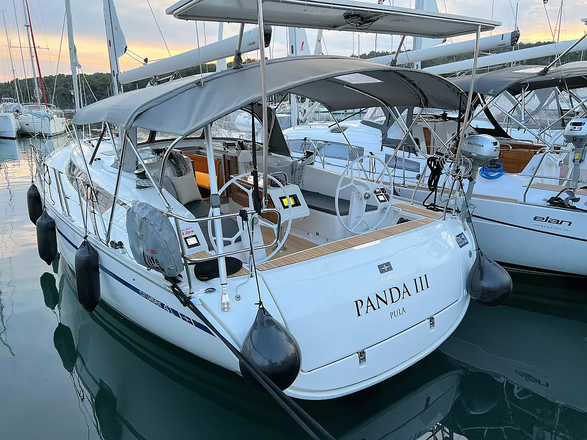 Lautsprecher im Cockpit, Fäkalientank, Bimini, Cockpit-Kissen, Beiboot, Sprayhood, Teak Cockpit, Kühlschrank, Heizung, Solar-Panele