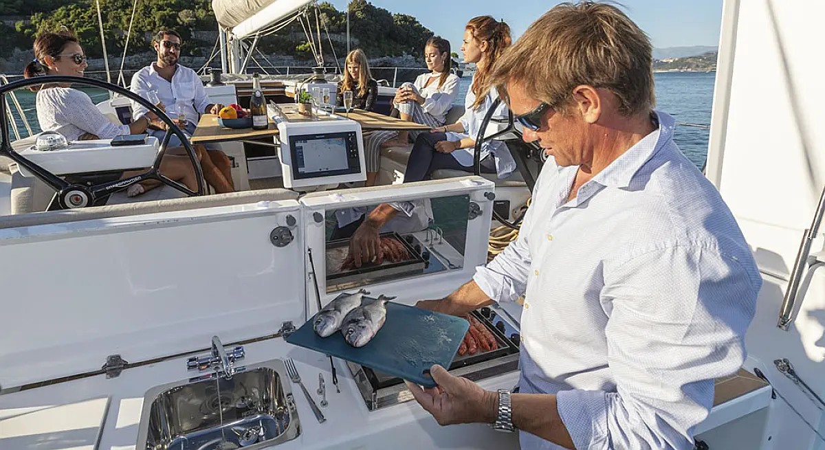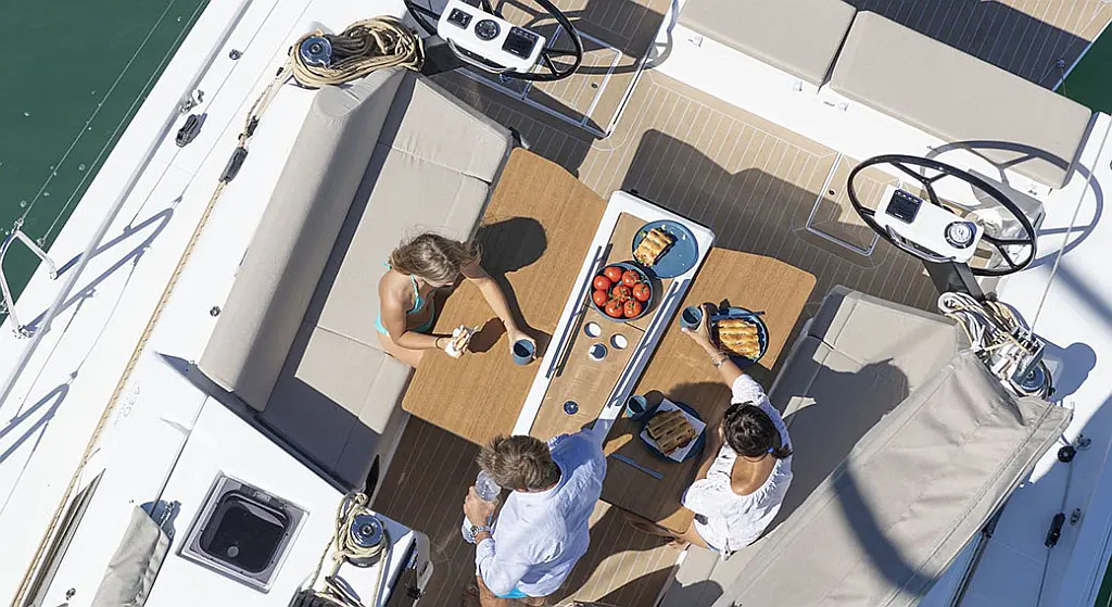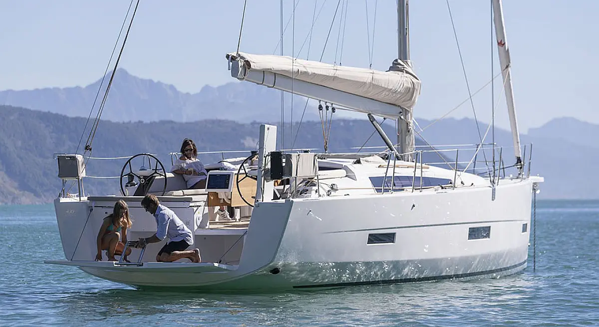 Bimini, Solar-Panele, Sprayhood, Badeplattform, Beiboot, Cockpit-Kissen, Kaffeemaschine, Außenbordmotor