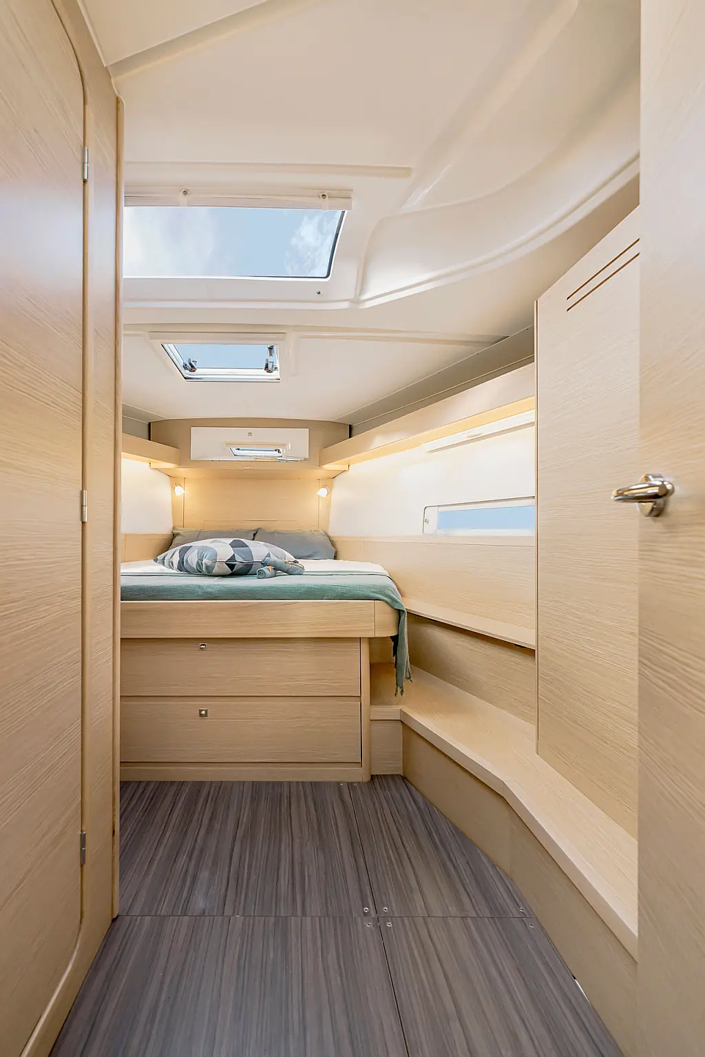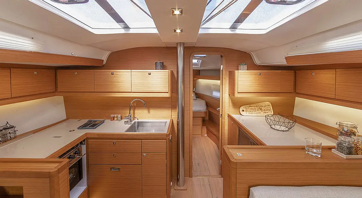 4 (3 double cab. + 1 cab. with bunk bed + convertible saloon table)