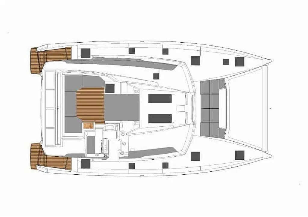 Kühlschrank, Bimini, Cockpit-Kissen, Inverter, Solar-Panele, Wassermacher, Beiboot, Außenbordmotor