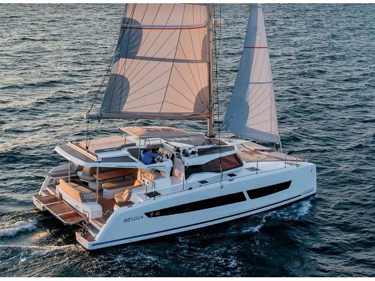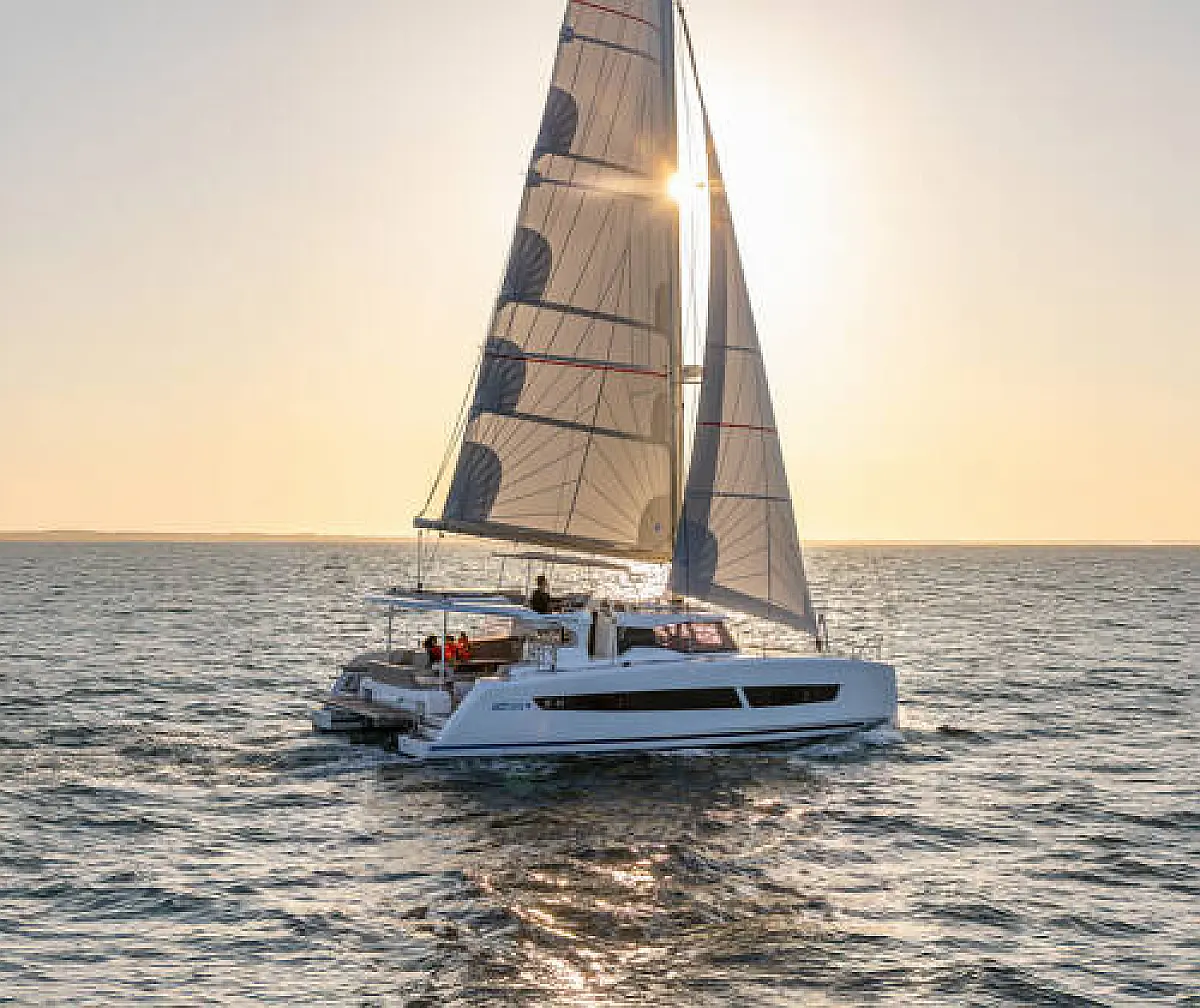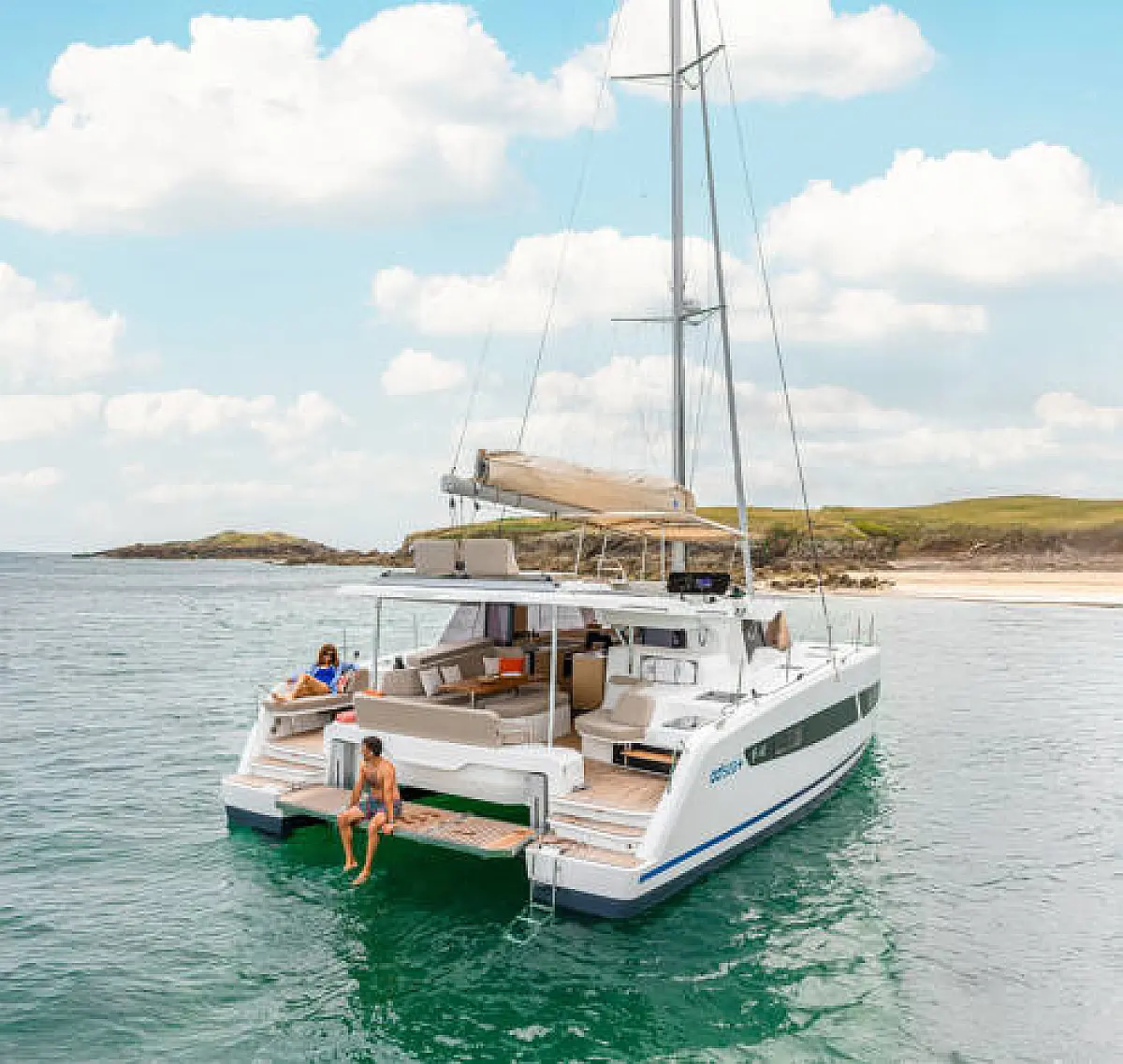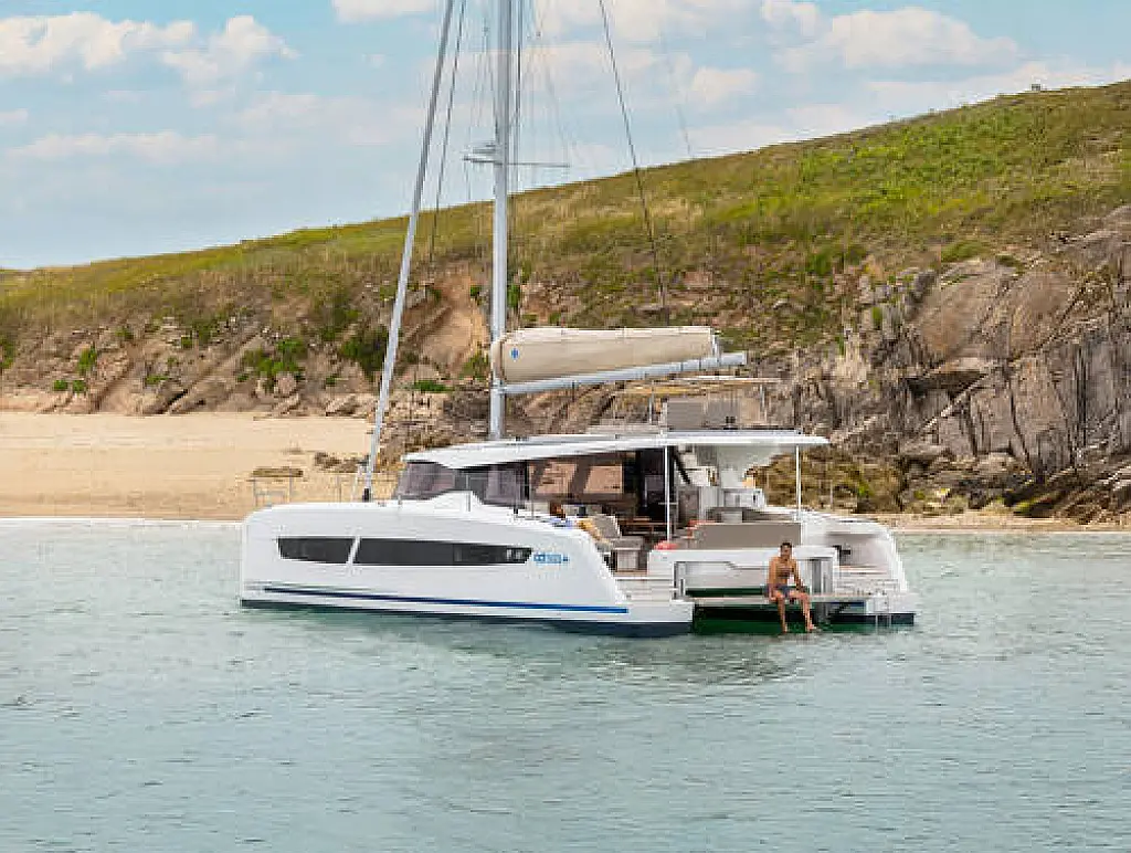 Kühlschrank, Bimini, Cockpit-Kissen, Solar-Panele, Wassermacher, Beiboot, Außenbordmotor
