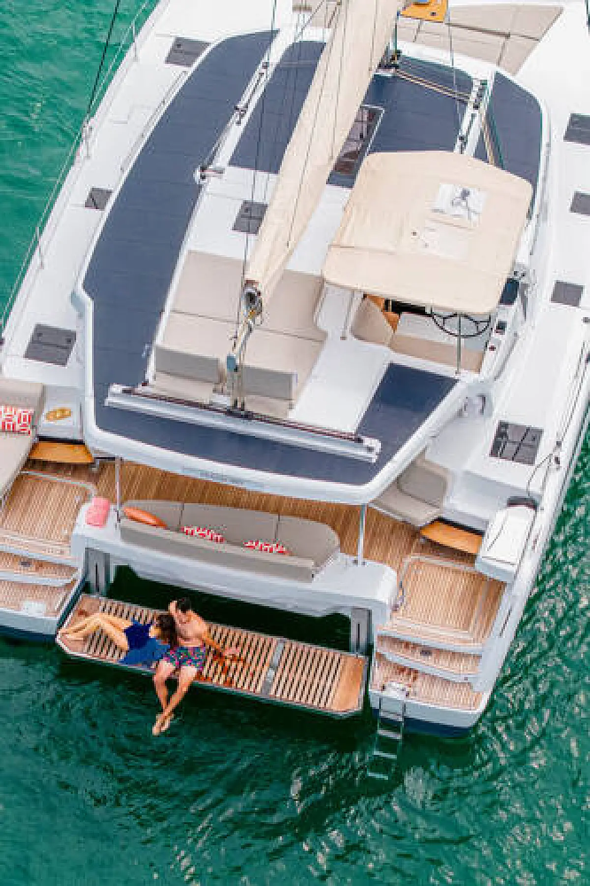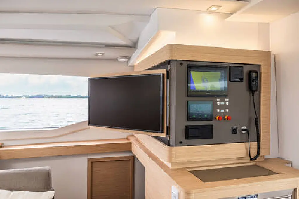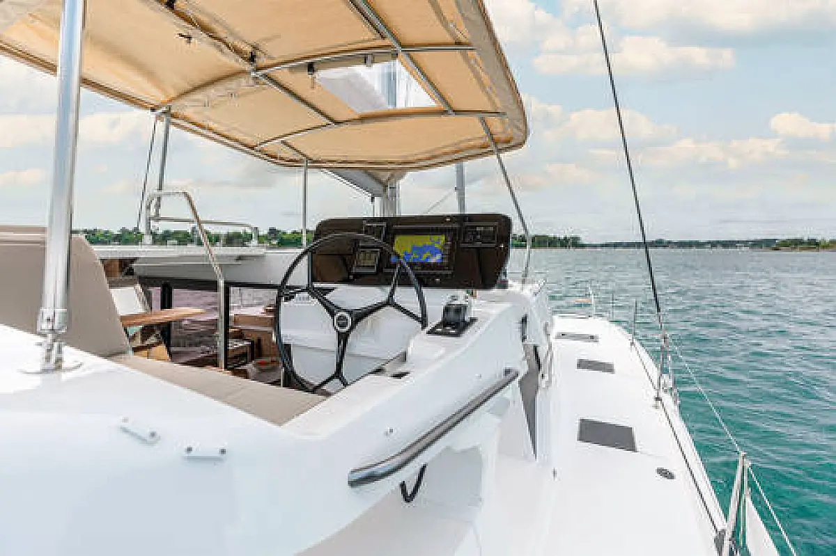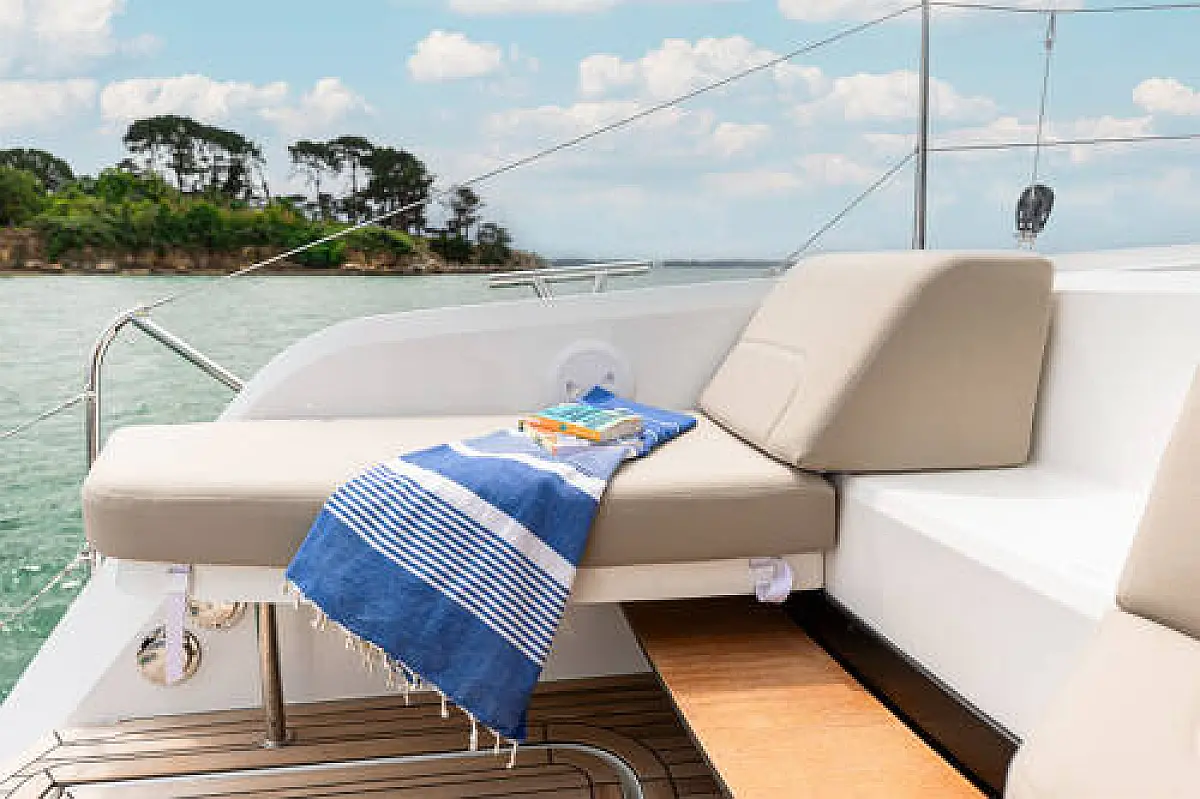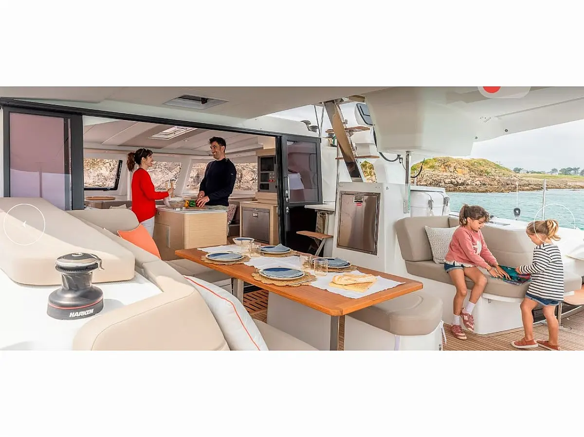 Kühlschrank, Bimini, Cockpit-Kissen, Solar-Panele, Wassermacher, Beiboot, Außenbordmotor