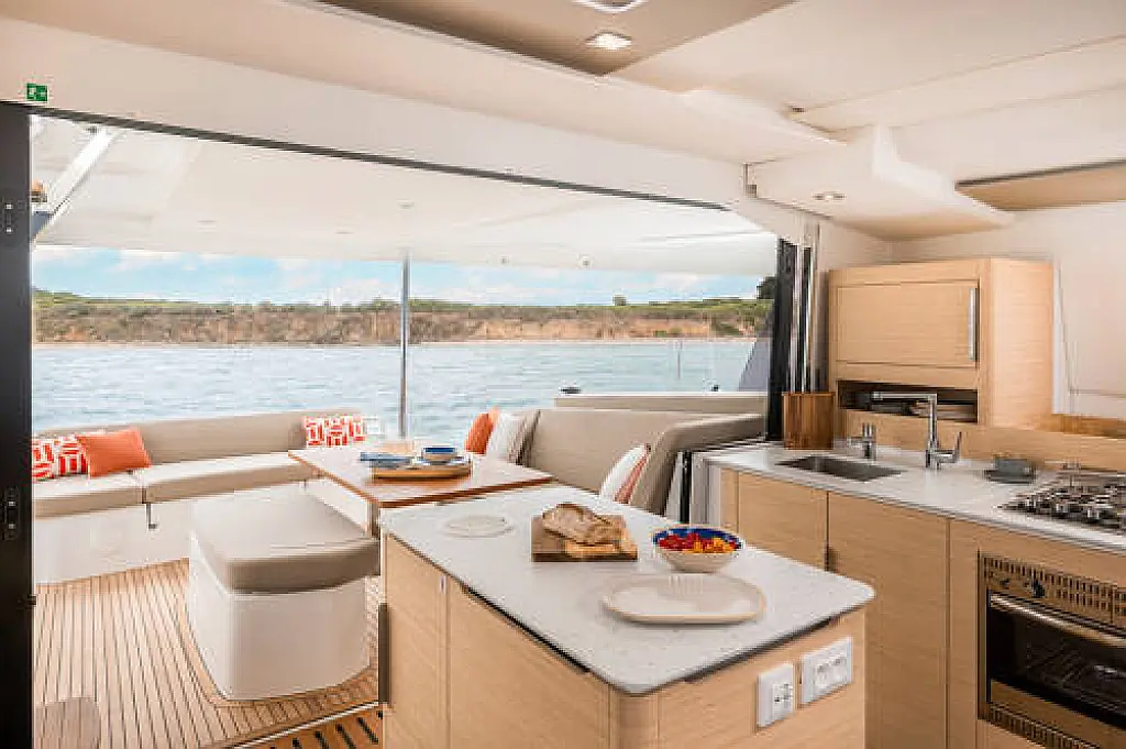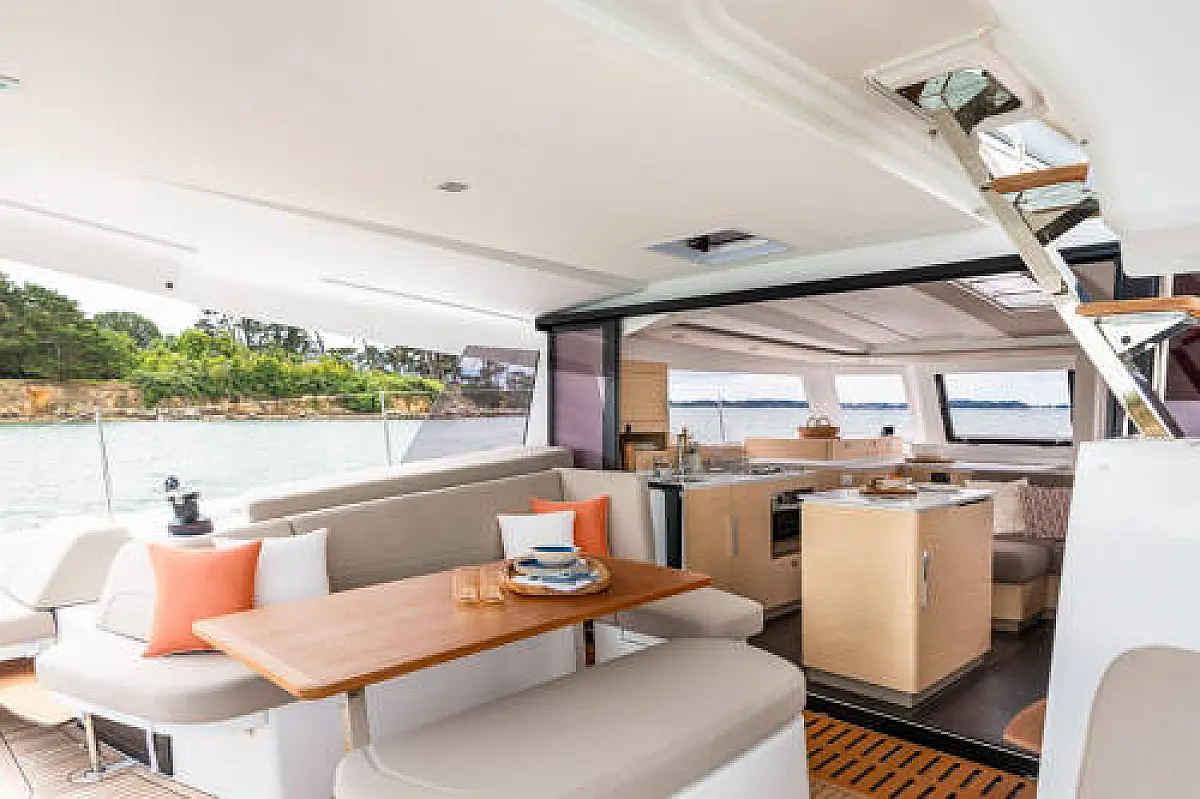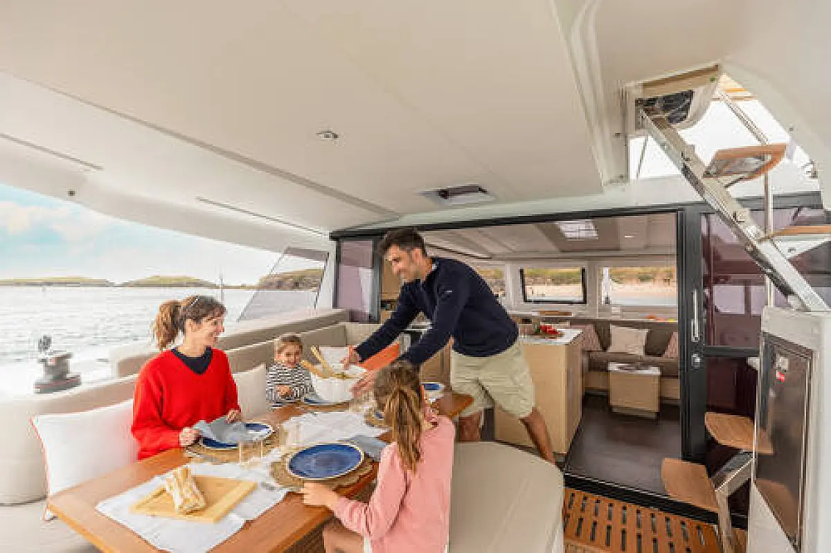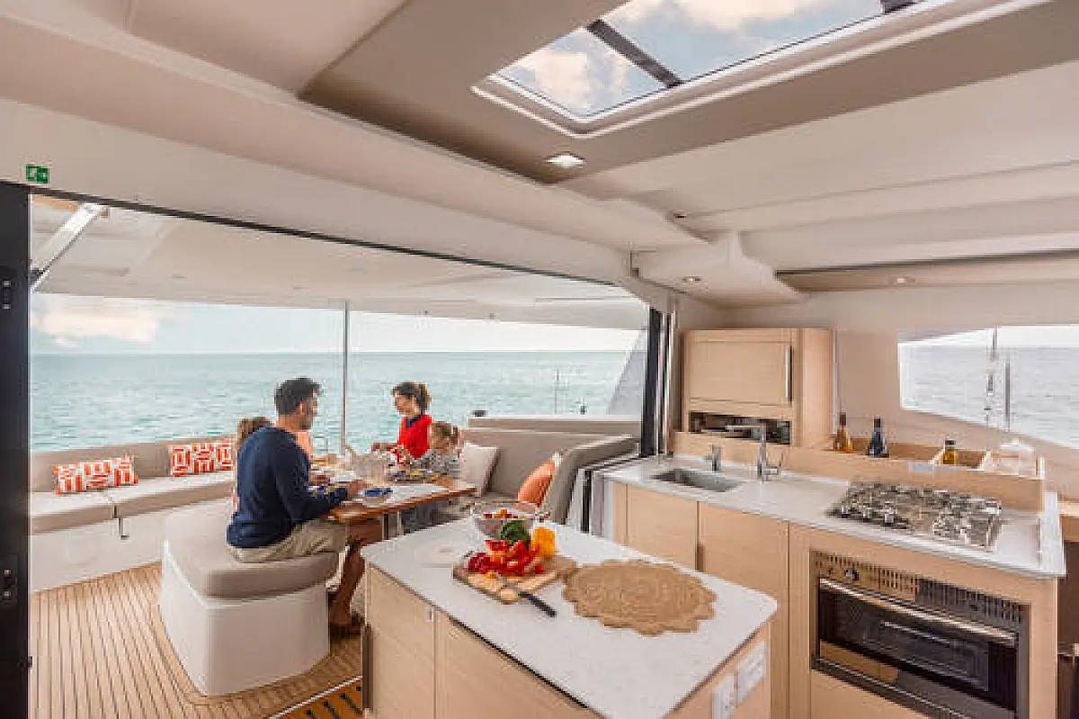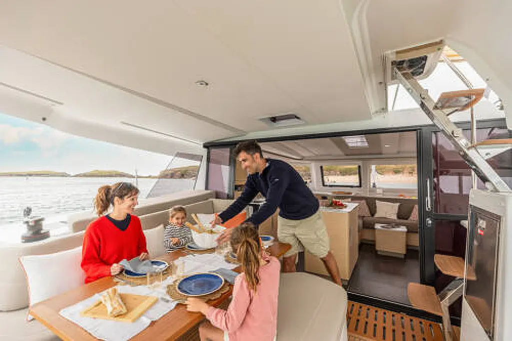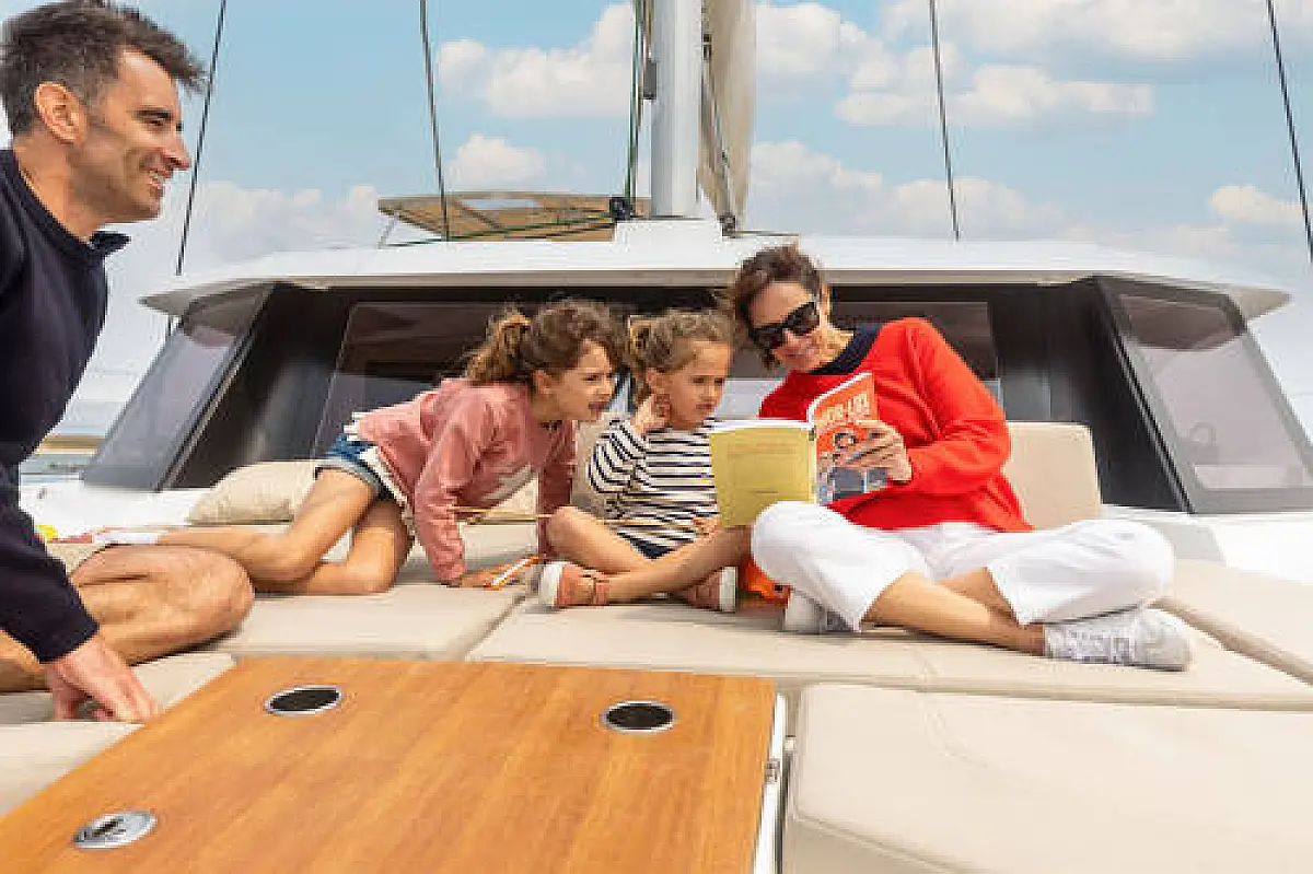 Kühlschrank, Bimini, Cockpit-Kissen, Solar-Panele, Wassermacher, Beiboot, Außenbordmotor