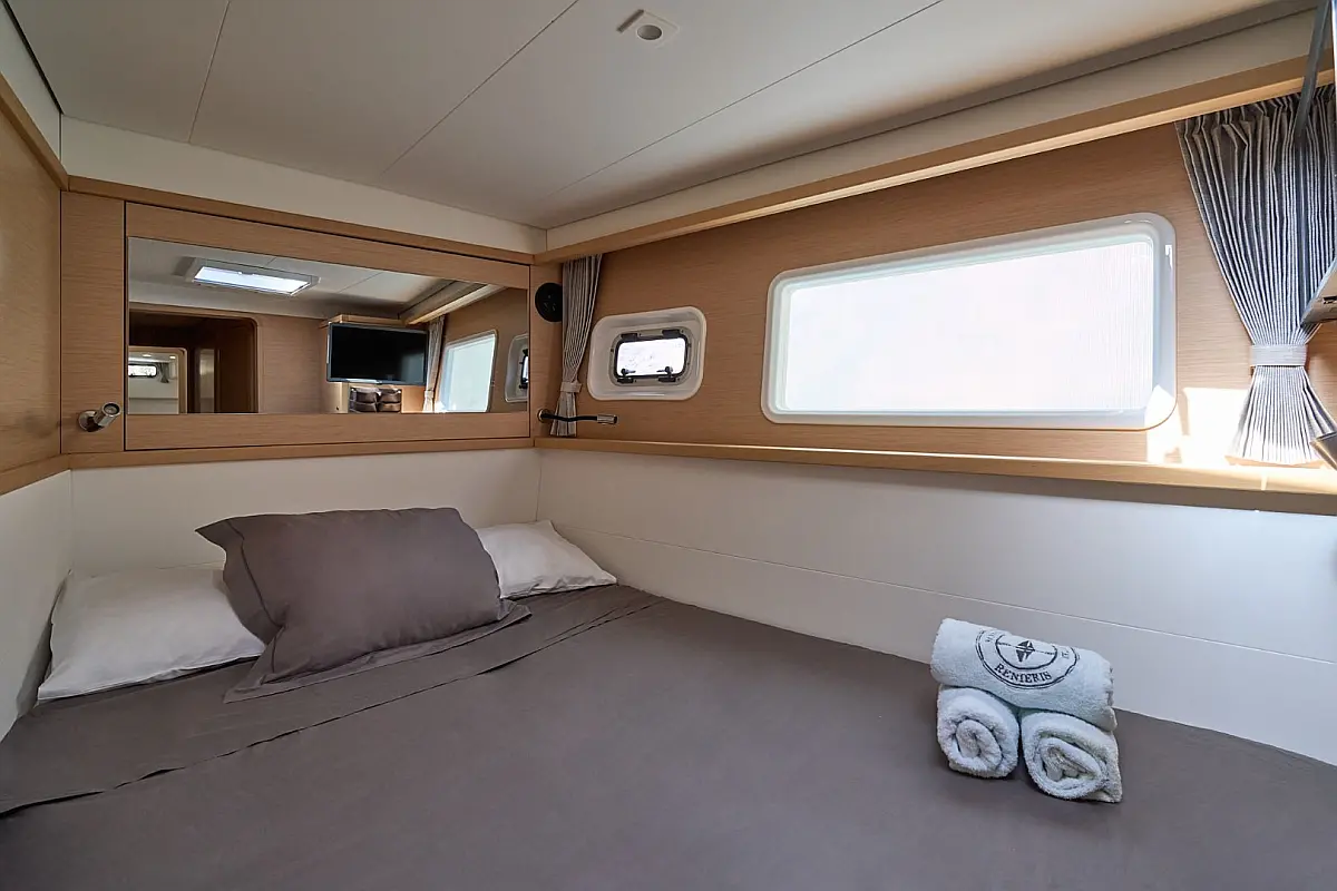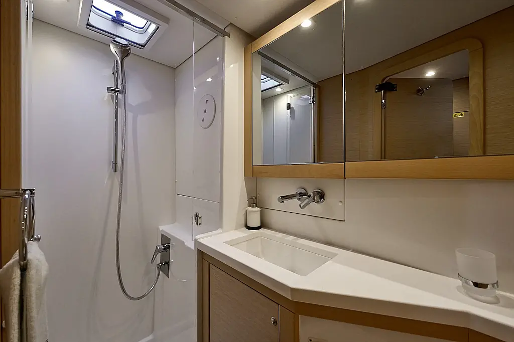 Beiboot, Außenbordmotor, Bimini, Cockpit-Kissen, Teak Cockpit, Elektrische Winch (Segel), Klimaanlage, Kühlschrank, Elektrische Toilette, Kaffeemaschine, Generator, Hydraulische Gangway, Wassermacher