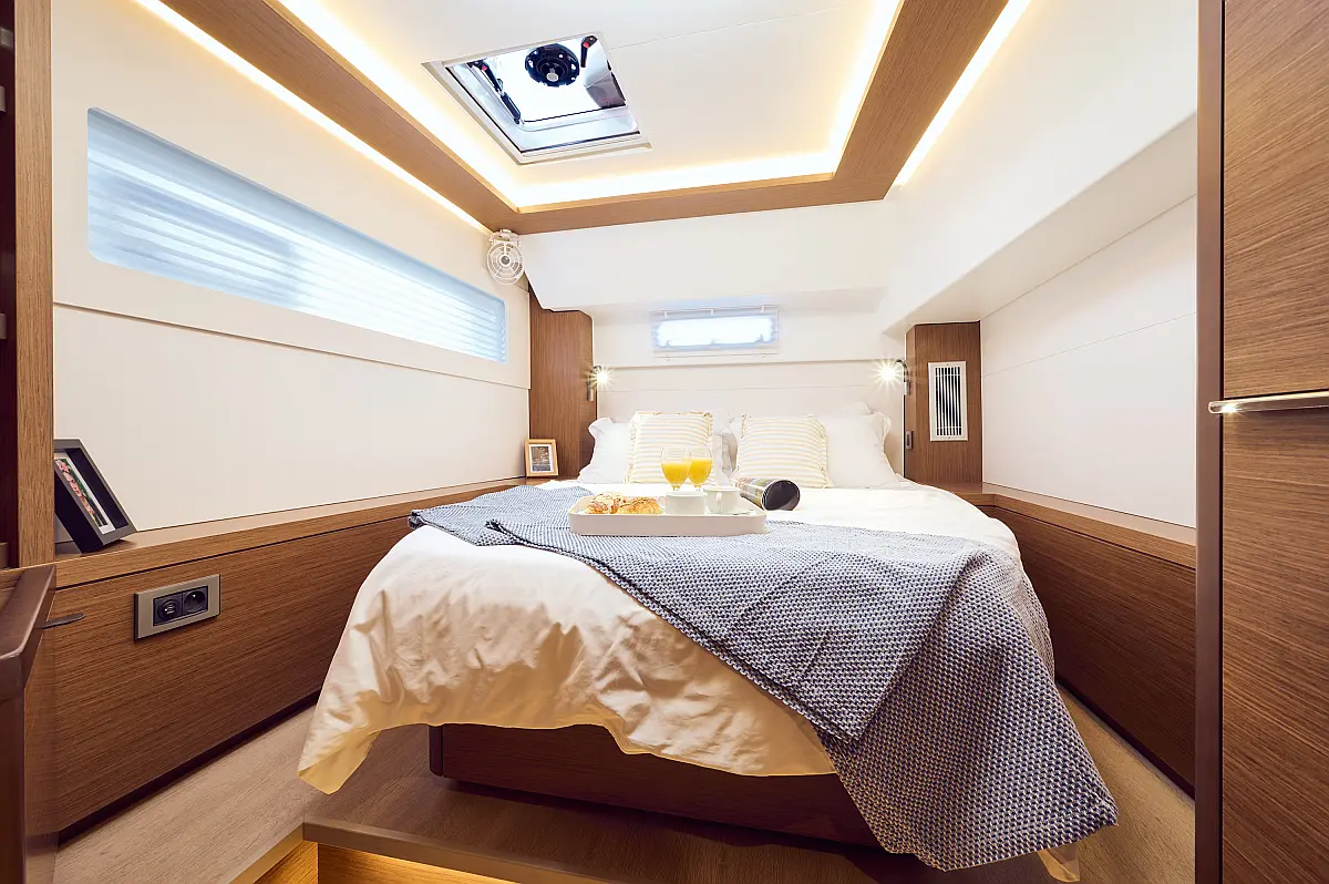 Bimini, Teak Cockpit, Außenbordmotor, Klimaanlage, Kühlschrank, Generator, Eismaschine, Kaffeemaschine, Wassermacher, Wi-Fi und Internet, Elektrische Toilette