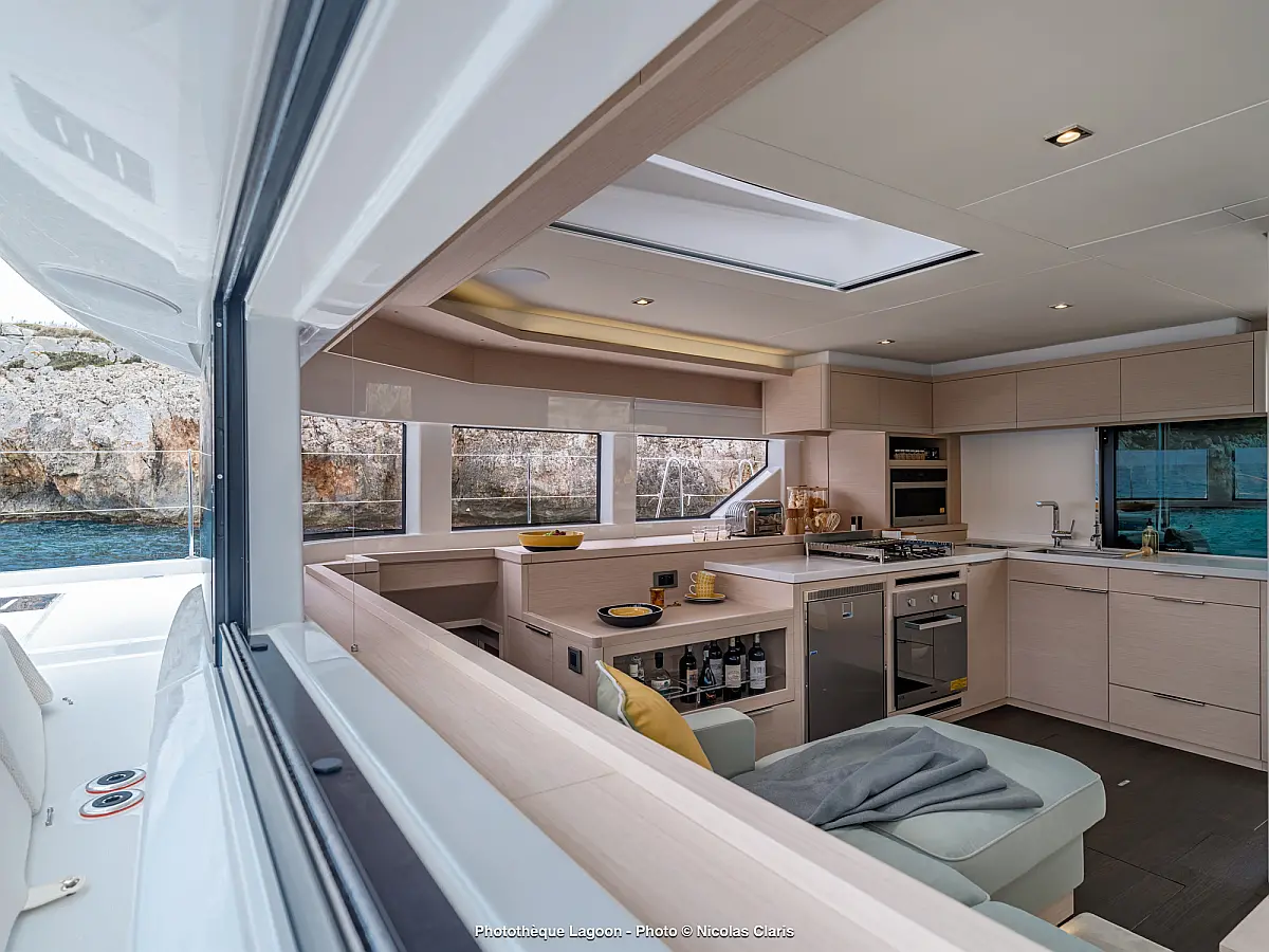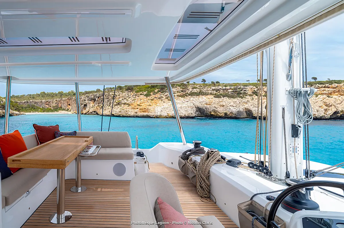 Außenbordmotor, Teak Cockpit, Kühlschrank, Flybridge, Elektrische Winch (Segel), Klimaanlage, Lautsprecher im Cockpit, Wassermacher, Elektrische Toilette, Beiboot, Grill im Cockpit, Inverter, Kaffeemaschine, Generator