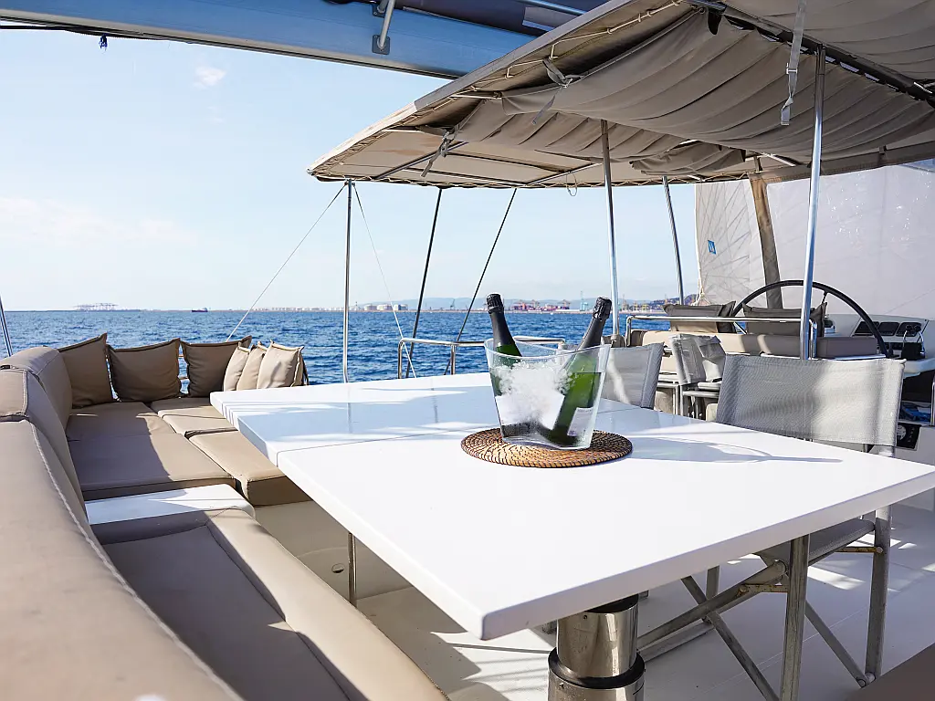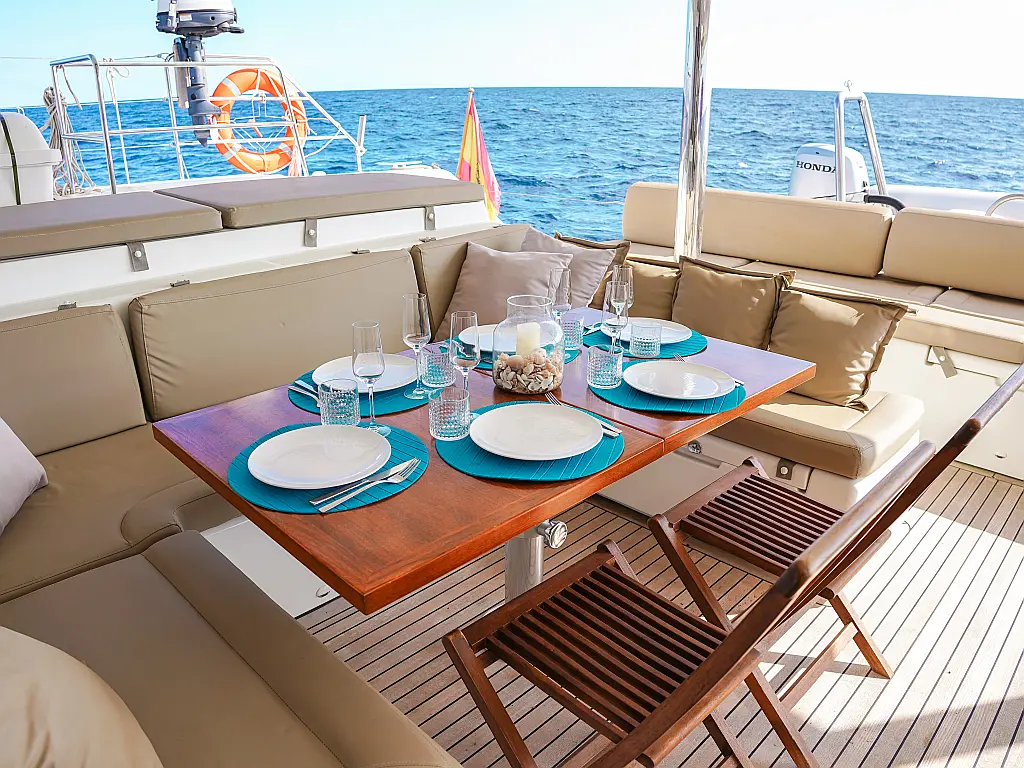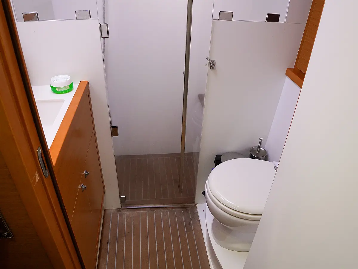 Beiboot, Lautsprecher im Cockpit, Klimaanlage, Elektrische Winch (Segel), Kühlschrank, Generator, Wassermacher