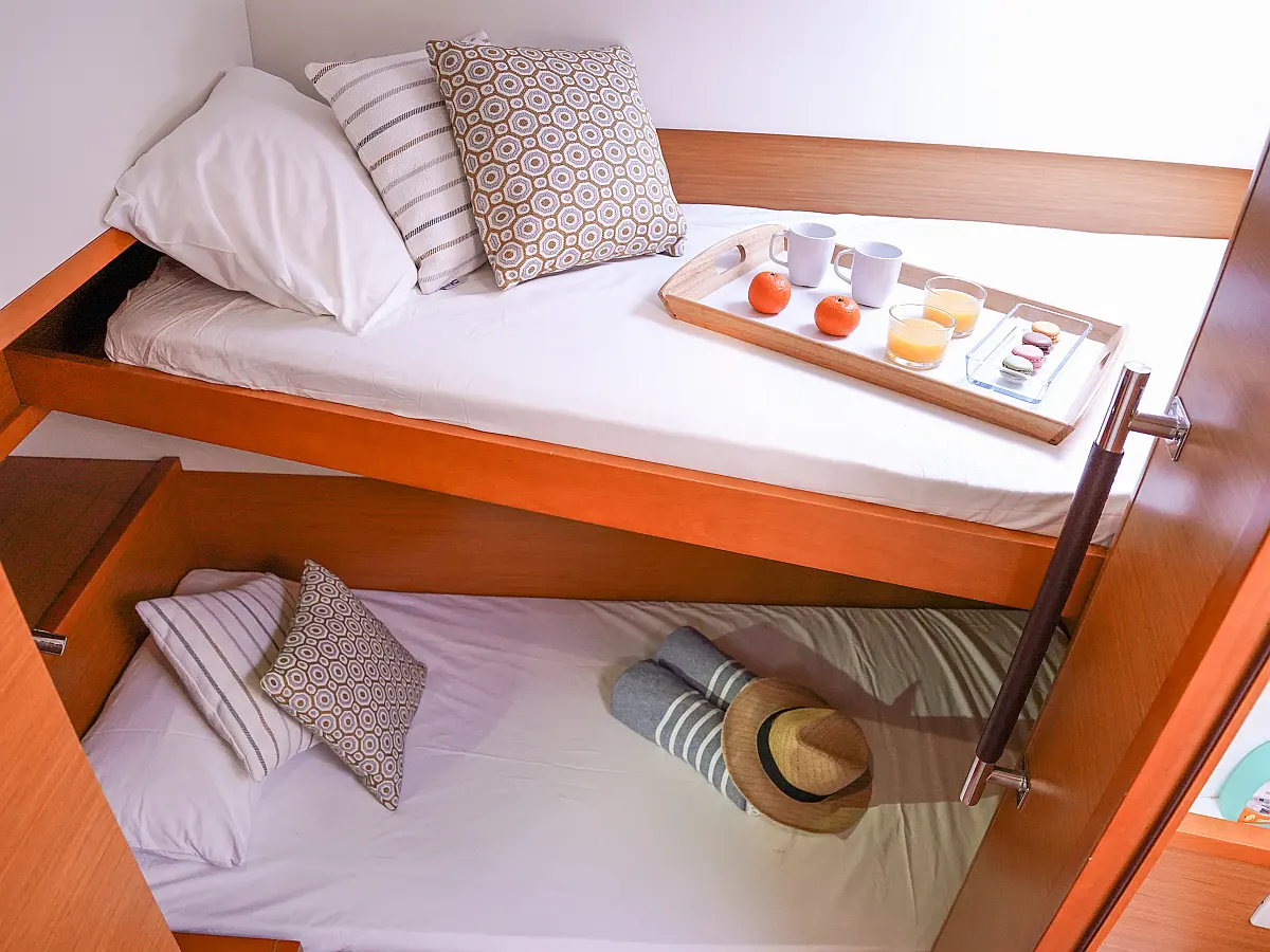 5 (5+2) 4 doble cabins + 1 bunkbed cabin