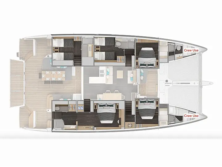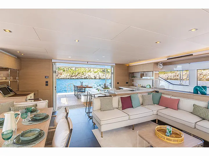 Beiboot, Kühlschrank, Teak Cockpit, Hydraulische Gangway, Flybridge, Solar-Panele, Elektrische Winch (Segel), Klimaanlage, Lautsprecher im Cockpit, Grill im Cockpit, Inverter, Wassermacher, Kaffeemaschine, Generator, Elektrische Toilette
