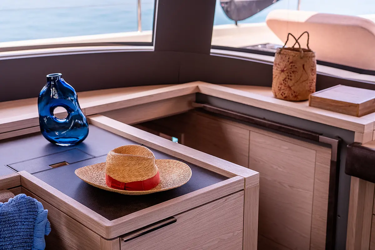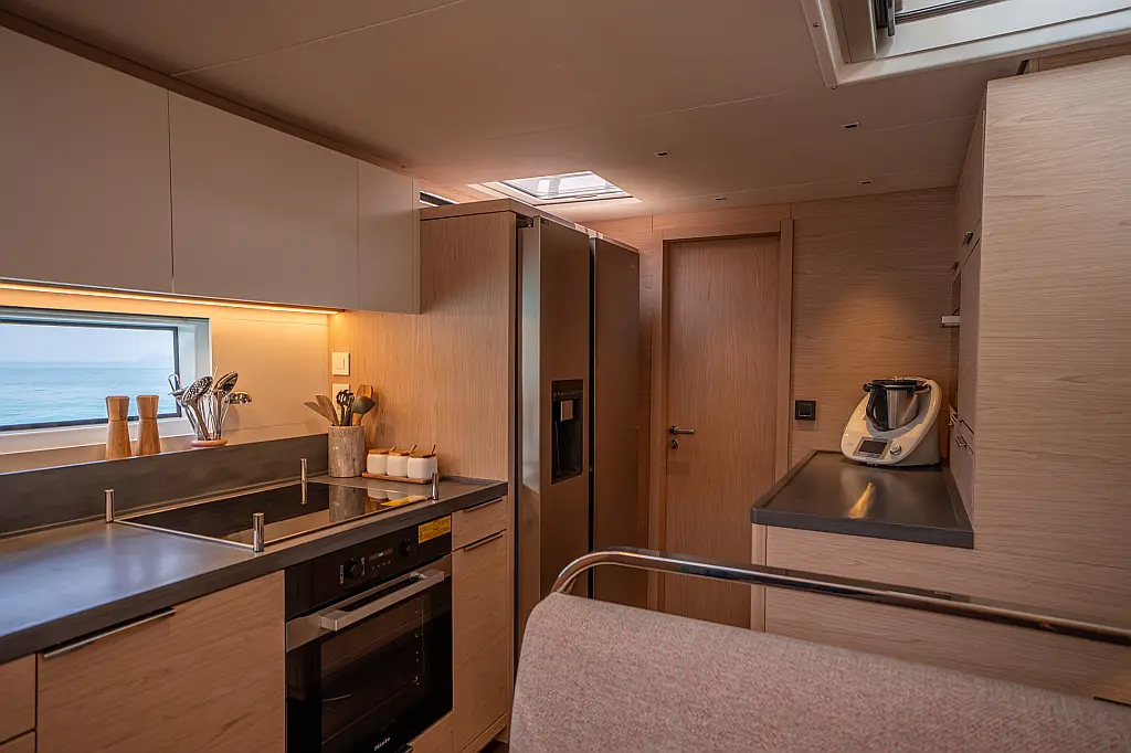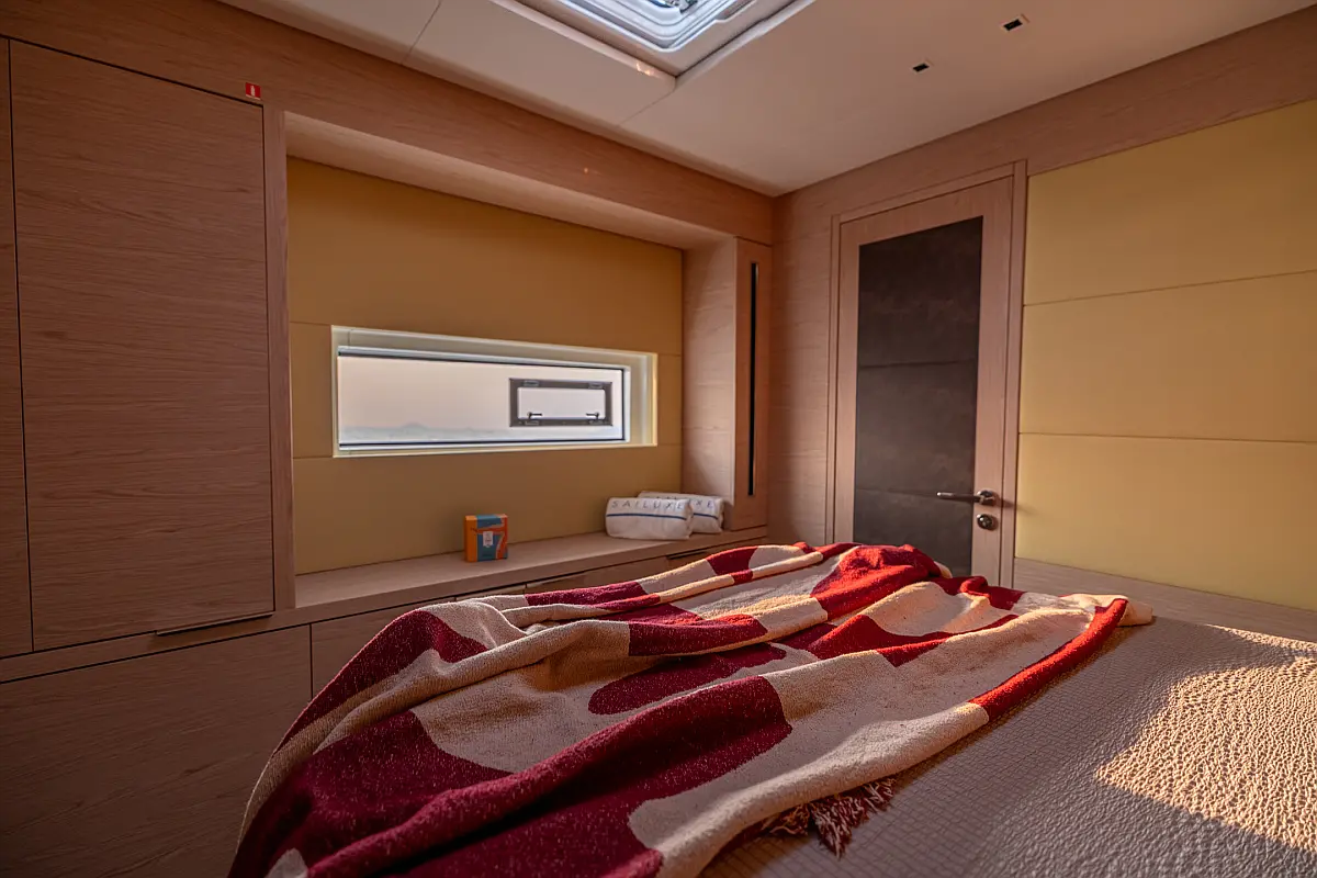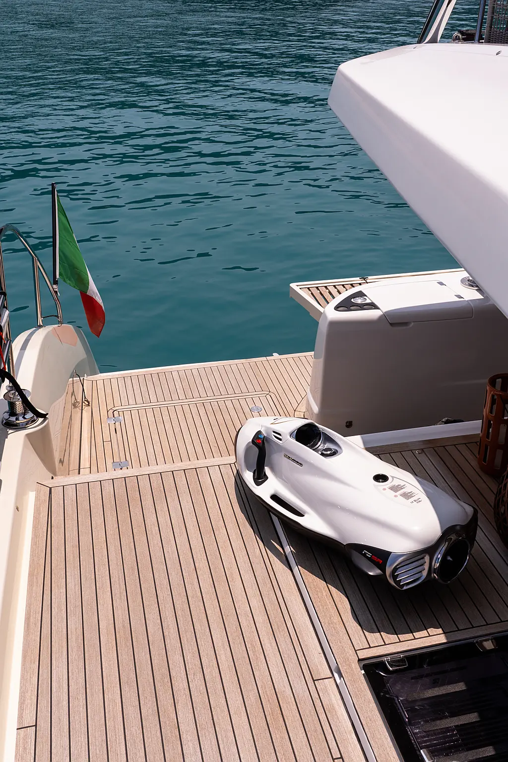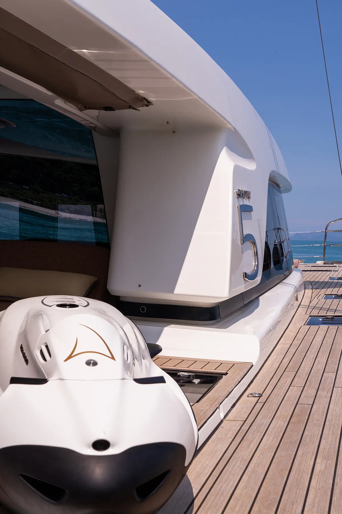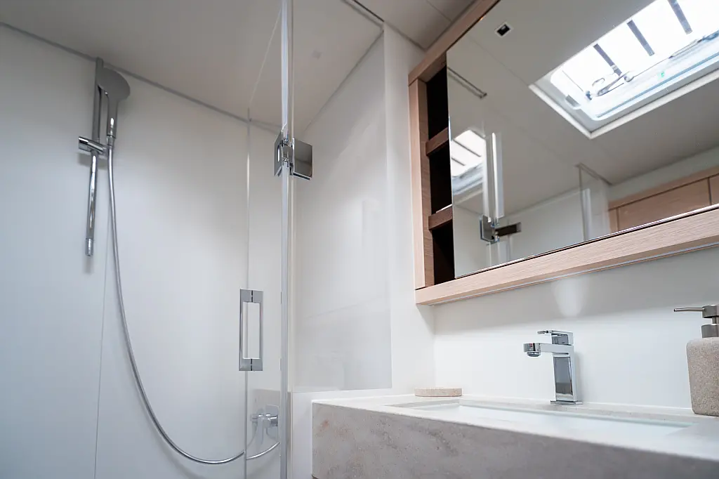 Beiboot, Kühlschrank, Teak Cockpit, Hydraulische Gangway, Flybridge, Klimaanlage, Lautsprecher im Cockpit, Grill im Cockpit, Inverter, Wassermacher, Kaffeemaschine, Generator, Elektrische Toilette
