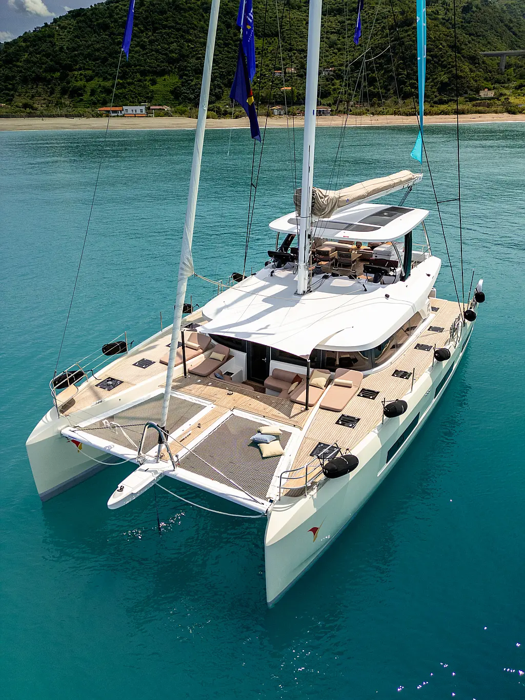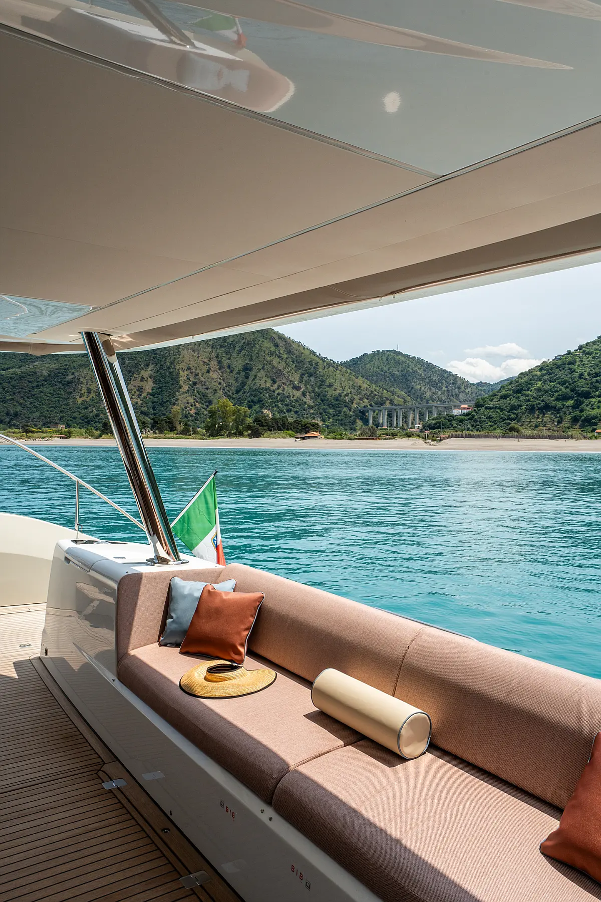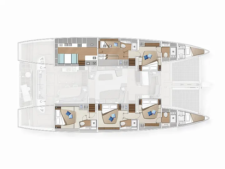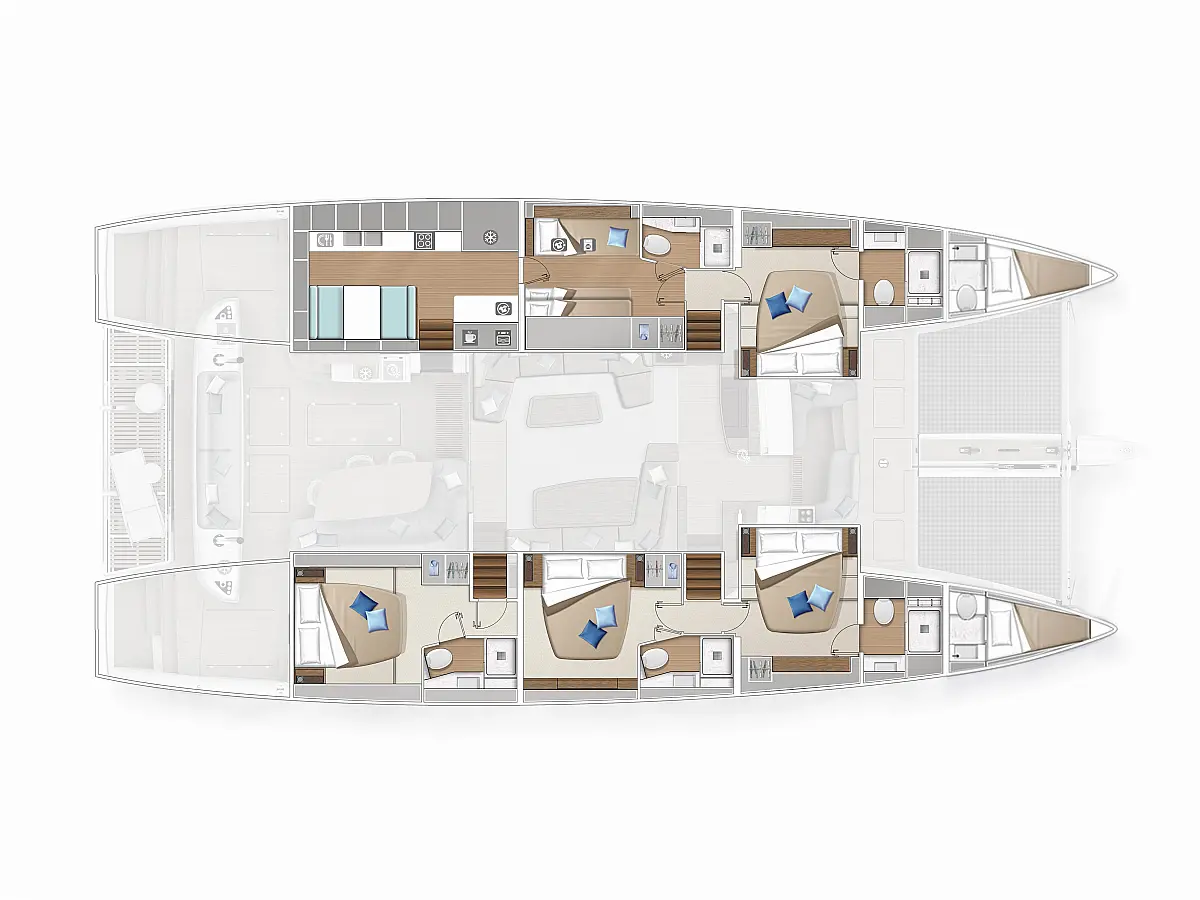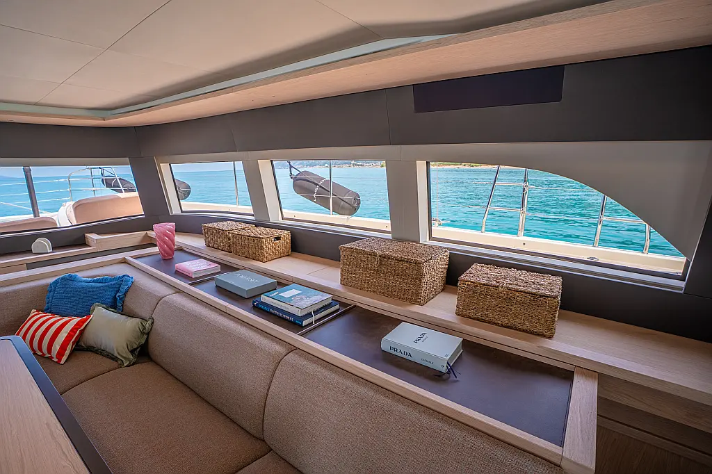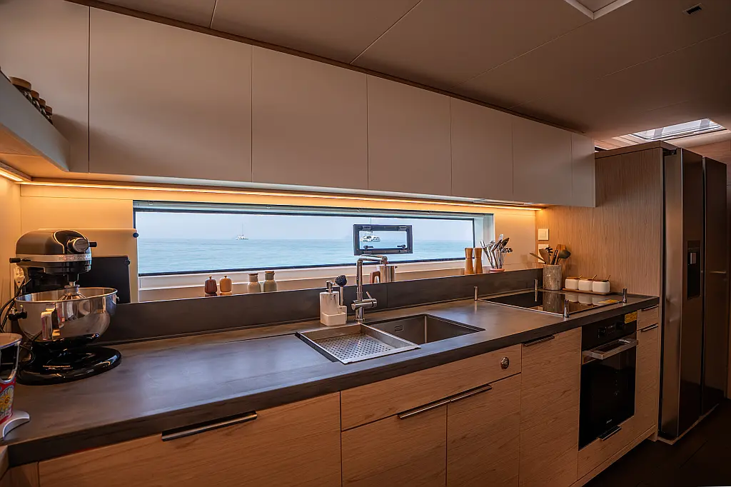 Beiboot, Kühlschrank, Teak Cockpit, Hydraulische Gangway, Flybridge, Klimaanlage, Lautsprecher im Cockpit, Grill im Cockpit, Inverter, Wassermacher, Kaffeemaschine, Generator, Elektrische Toilette