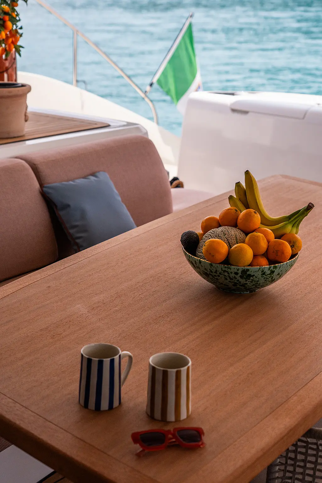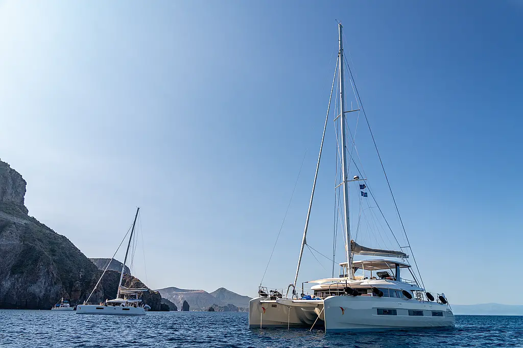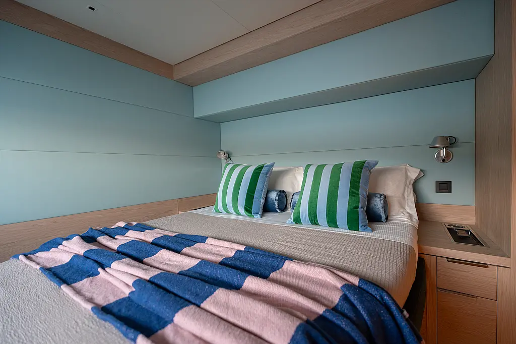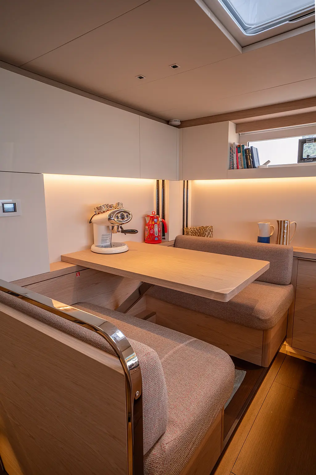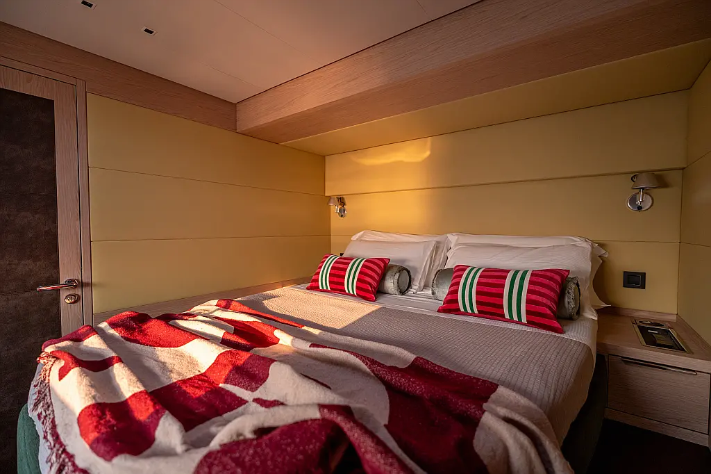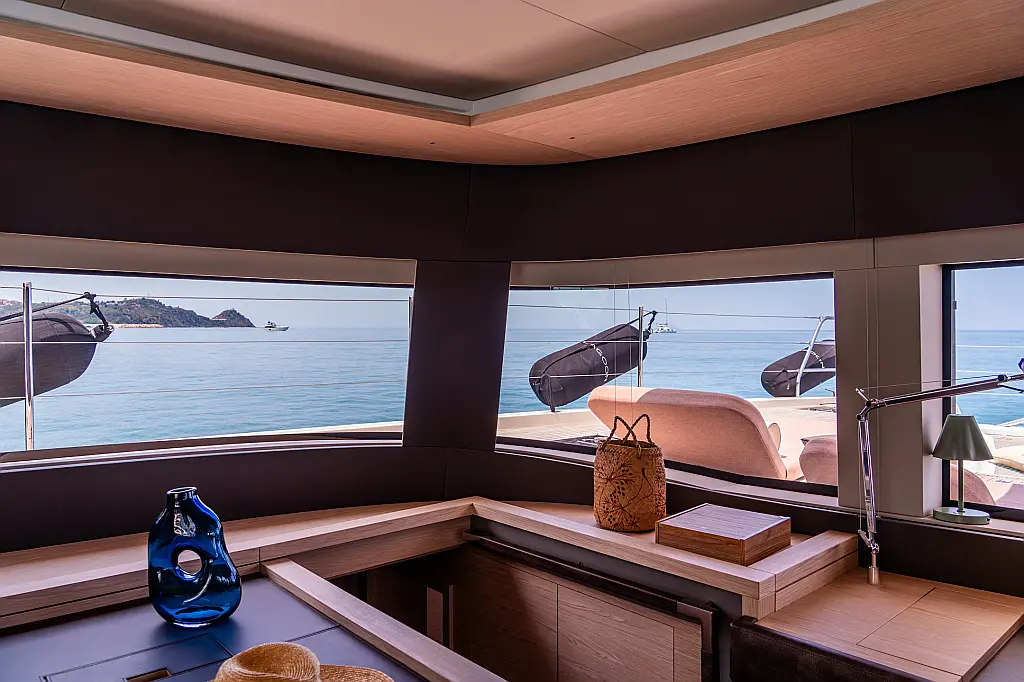Beiboot, Kühlschrank, Teak Cockpit, Hydraulische Gangway, Flybridge, Klimaanlage, Lautsprecher im Cockpit, Grill im Cockpit, Inverter, Wassermacher, Kaffeemaschine, Generator, Elektrische Toilette