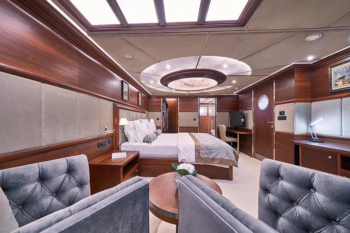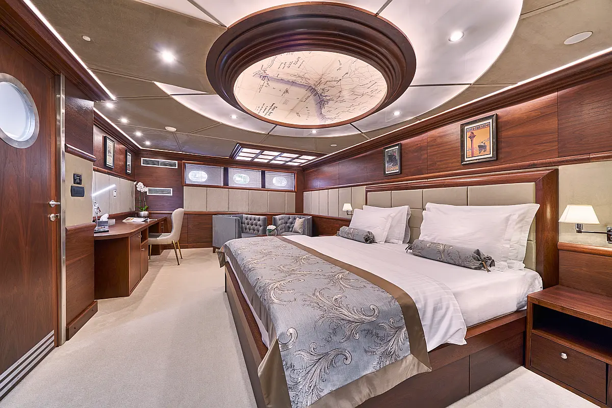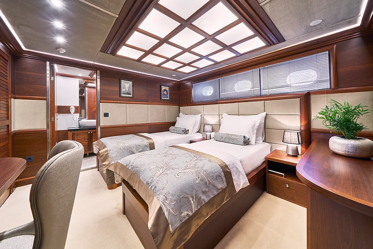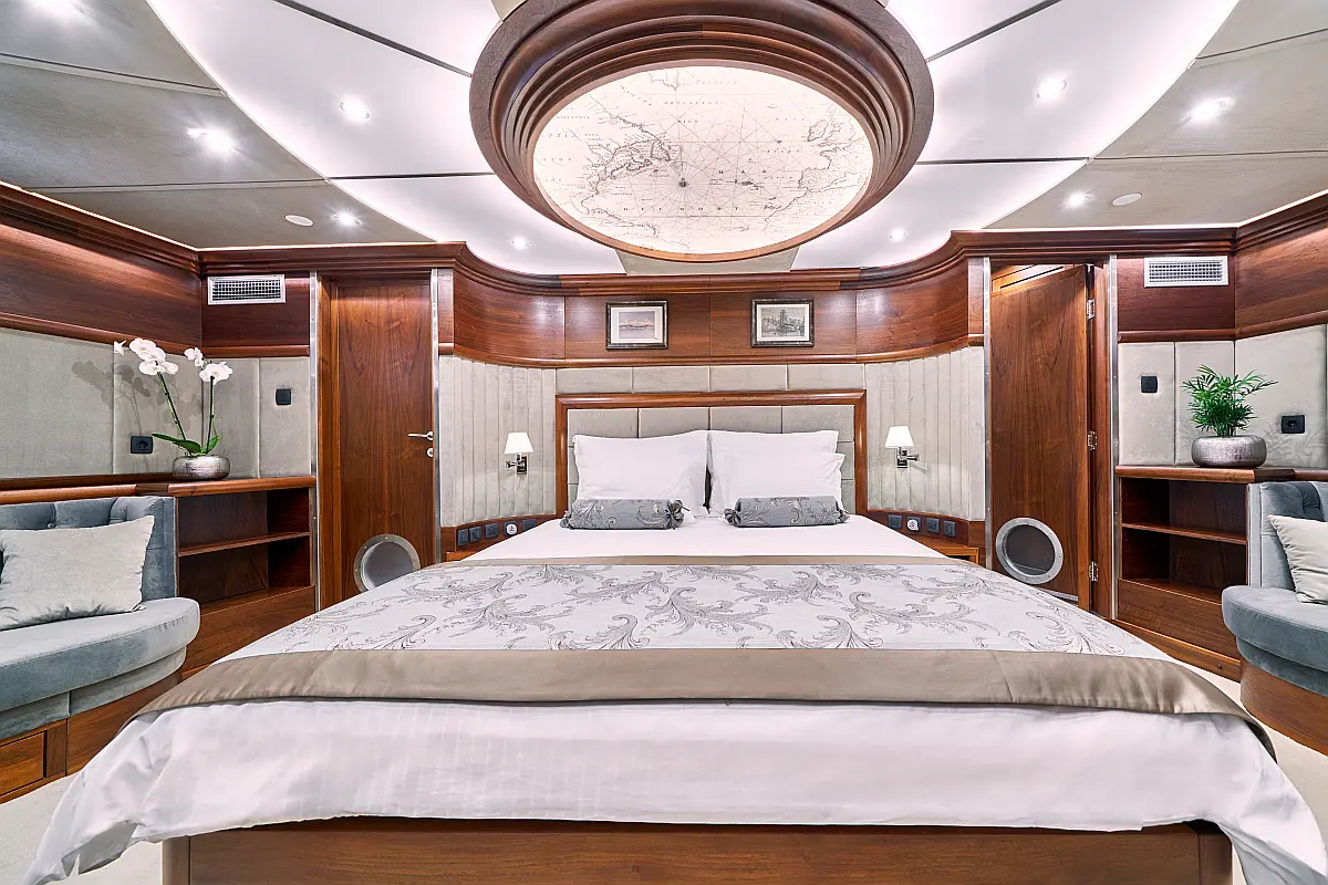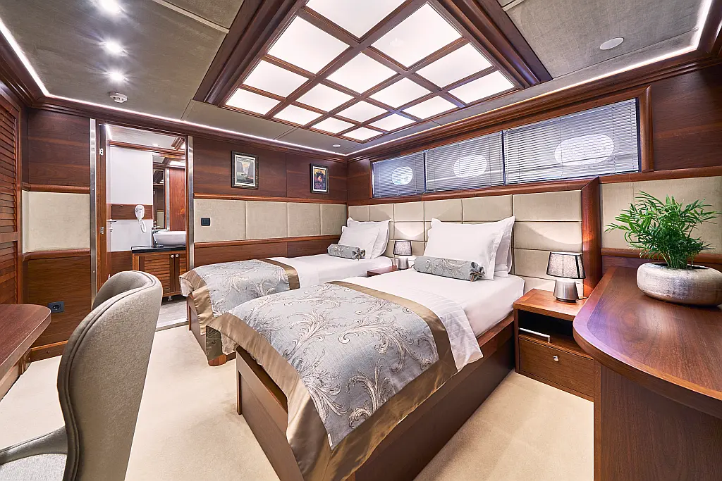 162 ft | Länge 6 (4 Double Cabins, 2 Twin (Convertible) Cabins) + crew Kabinen 12 Kojen 6 Heads Technische Spezifikationen Tiefgang: 12 ft | Motor: Cummins Wassertank: N/A Hauptsegel: None Displacement: N/A Treibstofftank: N/A Beam: 28 ft | Genua: None Ausrüstung Komfort: Beiboot, Badeplattform, Flybridge Unterhaltung: Stand up paddle, Schnorchelausrüstung Dokumente