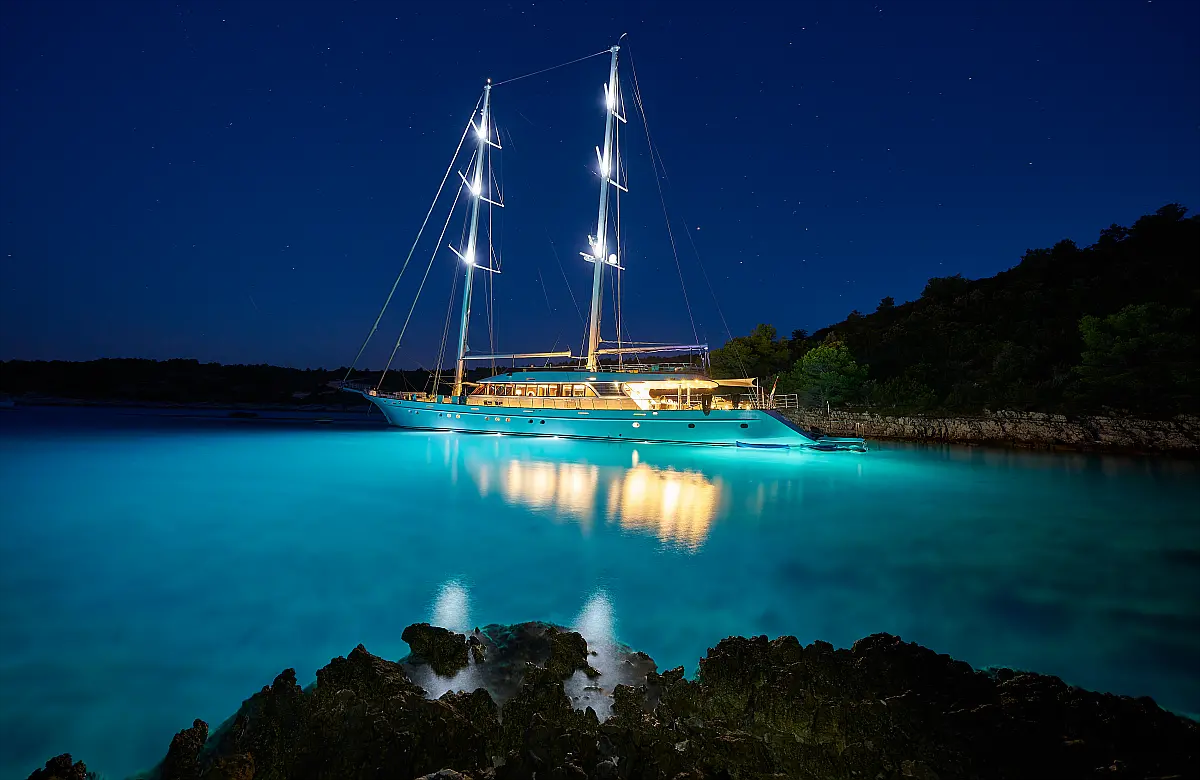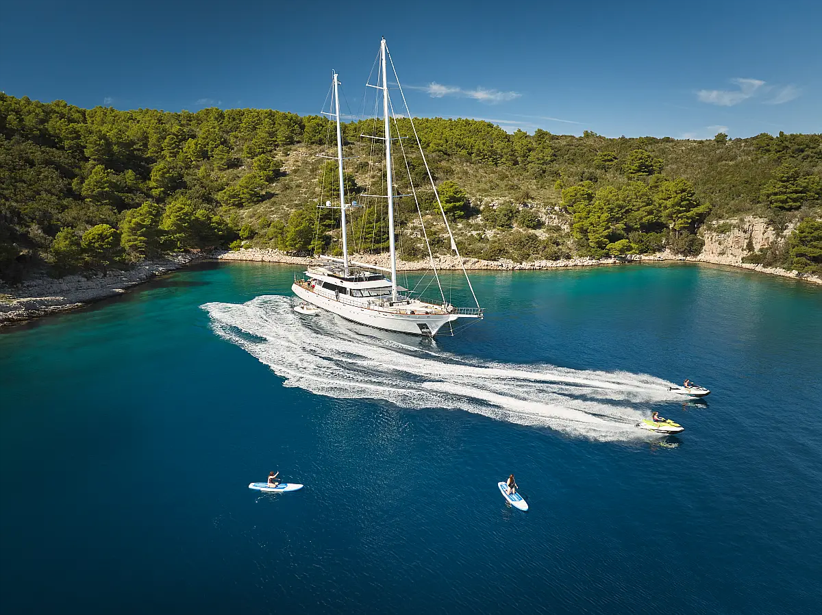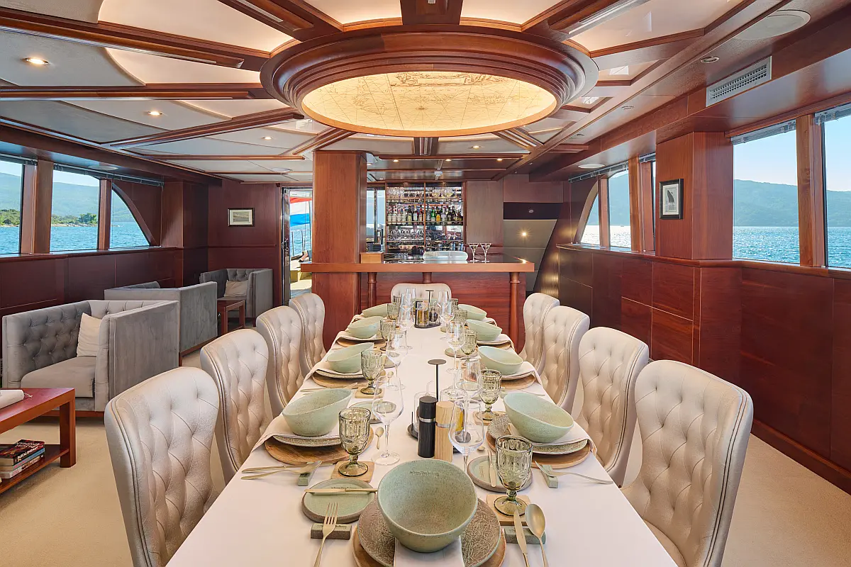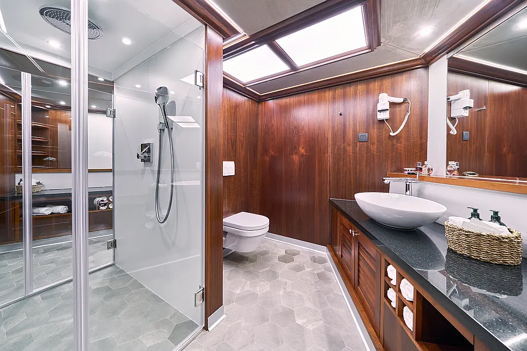 162 ft | Länge 6 (4 Double Cabins, 2 Twin (Convertible) Cabins) + crew Kabinen 12 Kojen 6 Heads Technische Spezifikationen Tiefgang: 12 ft | Motor: Cummins Wassertank: N/A Hauptsegel: None Displacement: N/A Treibstofftank: N/A Beam: 28 ft | Genua: None Ausrüstung Komfort: Beiboot, Badeplattform, Flybridge Unterhaltung: Stand up paddle, Schnorchelausrüstung Dokumente