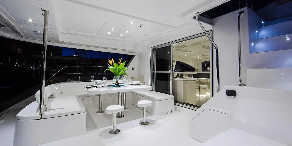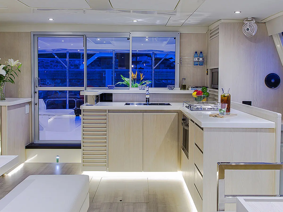 Bimini, Grill im Cockpit, Lautsprecher im Cockpit, Solar-Panele, Kühlschrank
