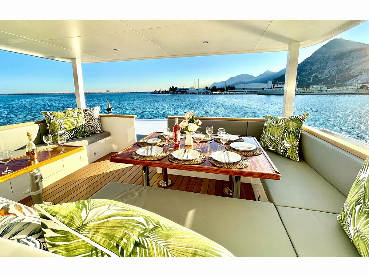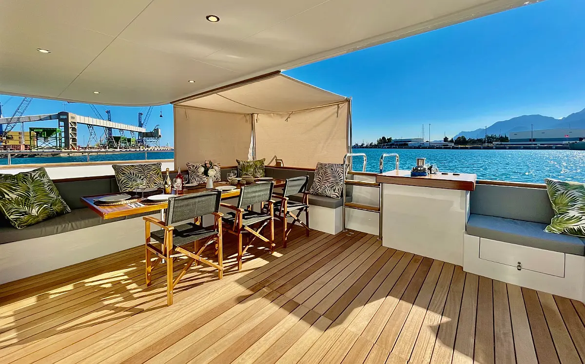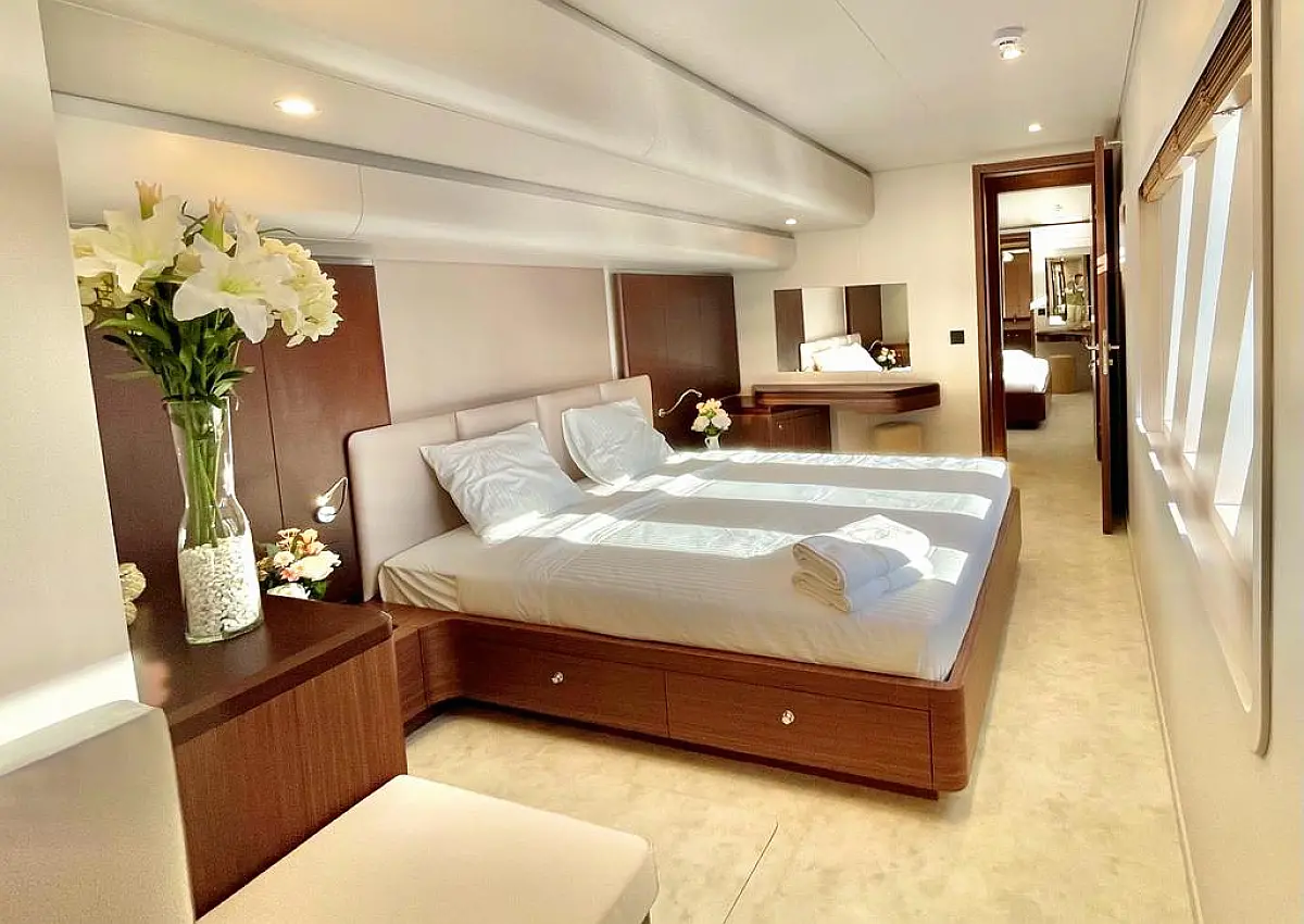 65 ft | Länge 4 plus Crew Kabinen 8 plus Crew Kojen 4 plus Crew Heads Technische Spezifikationen Tiefgang: 3 ft | Motor: Yanmar Wassertank: N/A Hauptsegel: None Displacement: 35000.00 kg Treibstofftank: N/A Beam: 37 ft | Genua: None Ausrüstung Komfort: Beiboot, Geschirrspüler, Flybridge, Badeplattform, Generator, Solar-Panele Unterhaltung: TV Navigation: Autopilot, Kartenplotter Dokumente