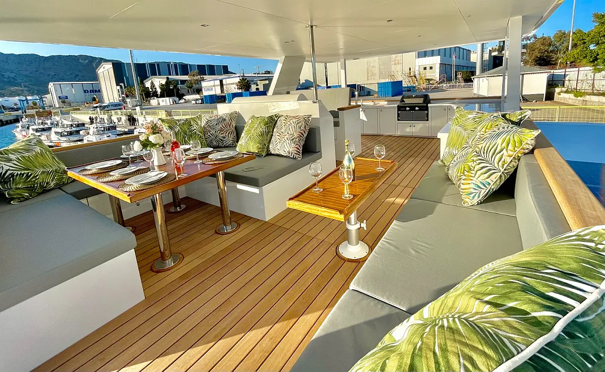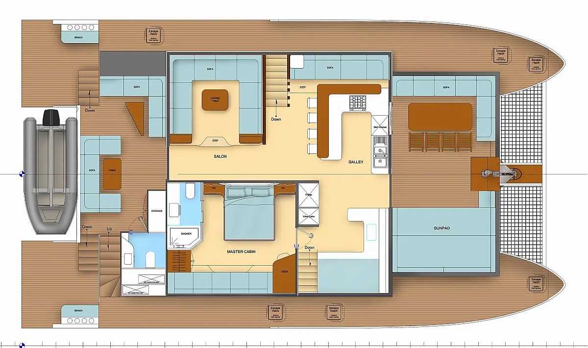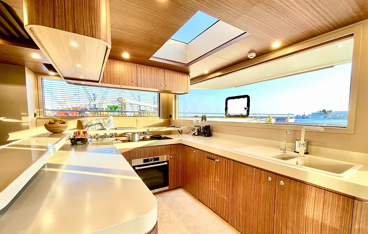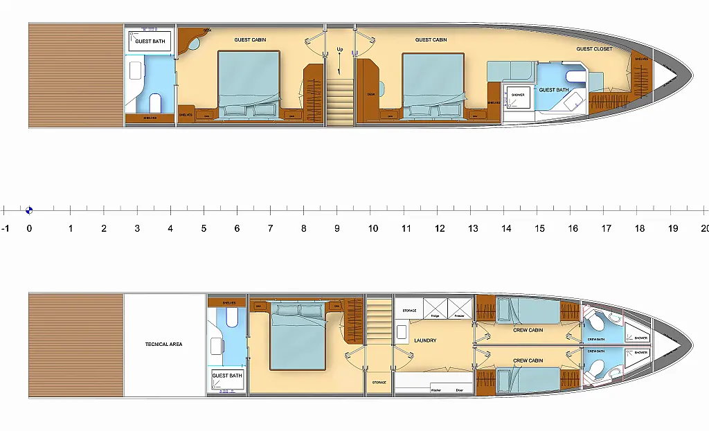 65 ft | Länge 4 plus Crew Kabinen 8 plus Crew Kojen 4 plus Crew Heads Technische Spezifikationen Tiefgang: 3 ft | Motor: Yanmar Wassertank: N/A Hauptsegel: None Displacement: 35000.00 kg Treibstofftank: N/A Beam: 37 ft | Genua: None Ausrüstung Komfort: Beiboot, Geschirrspüler, Flybridge, Badeplattform, Generator, Solar-Panele Unterhaltung: TV Navigation: Autopilot, Kartenplotter Dokumente