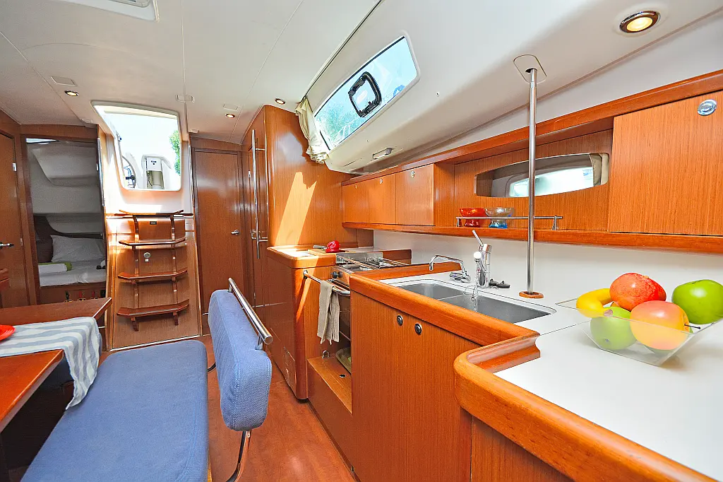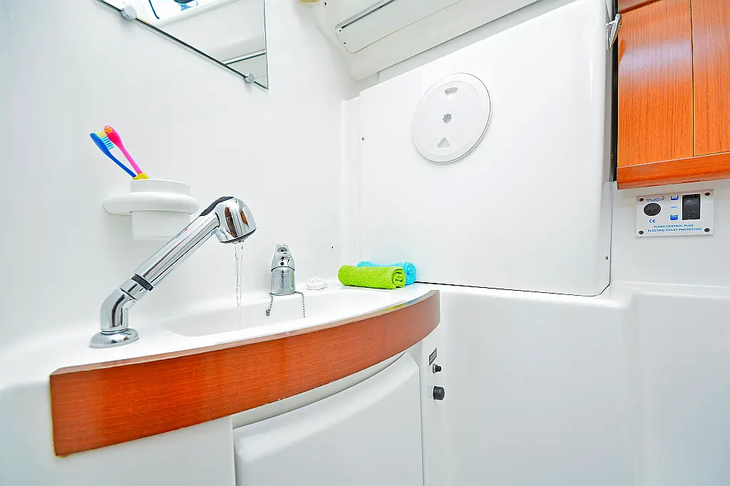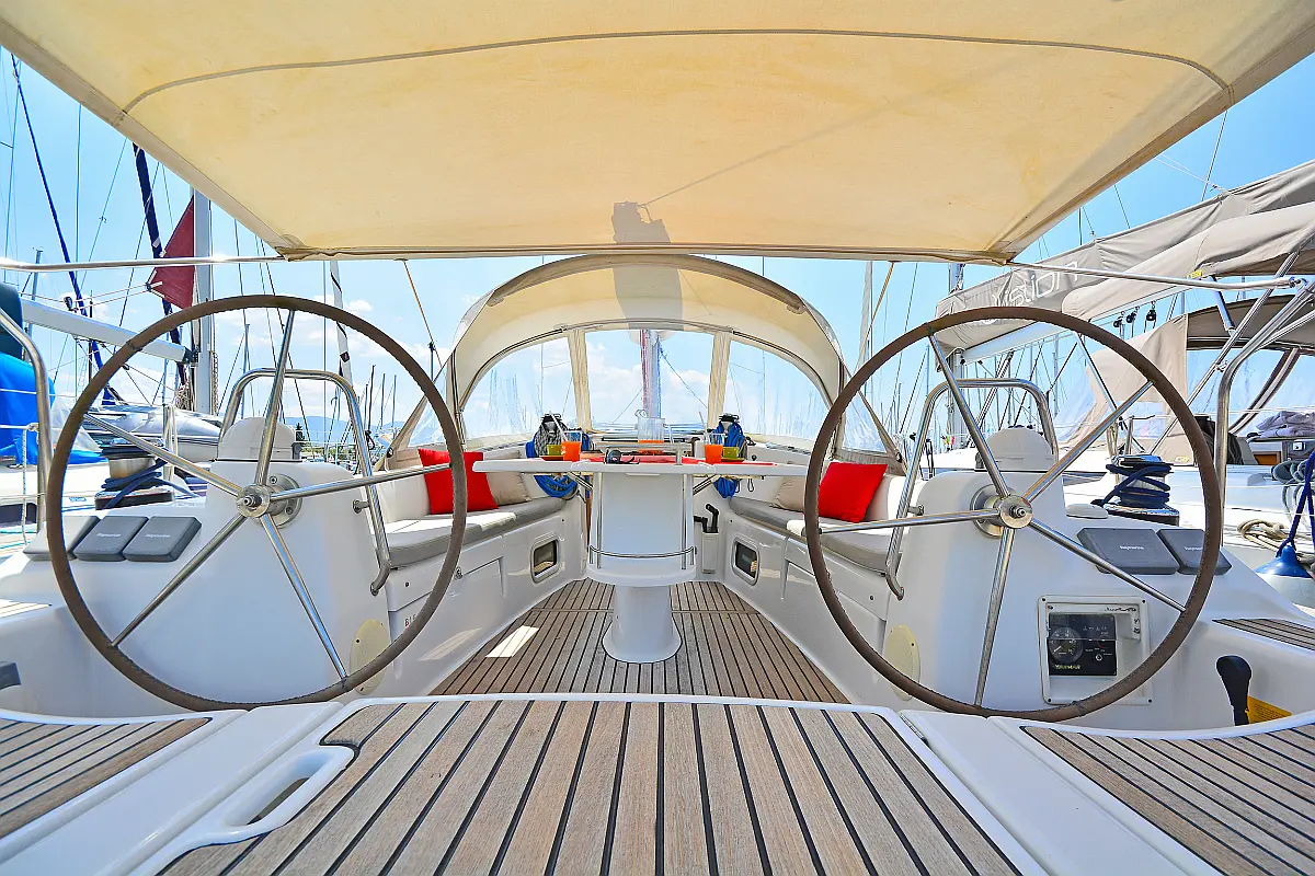 Cockpit-Kissen, Sprayhood, Bimini, Elektrische Toilette, Kühlschrank, Lautsprecher im Cockpit, Solar-Panele