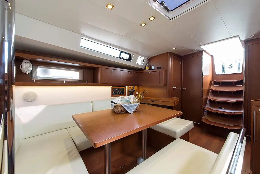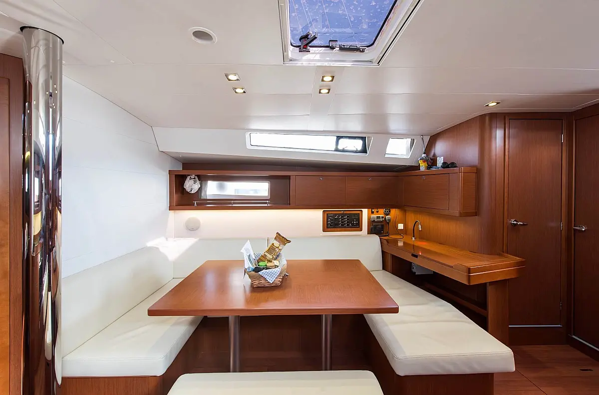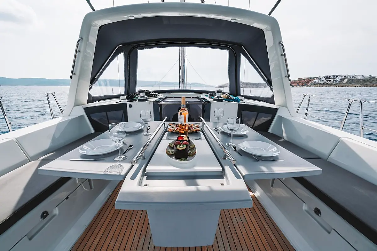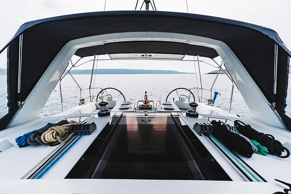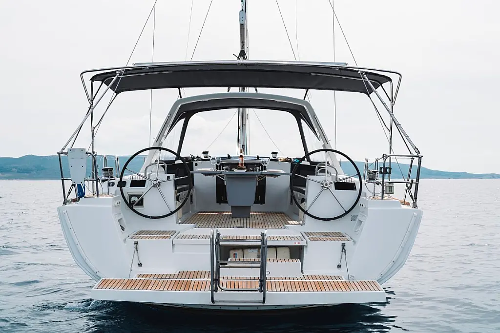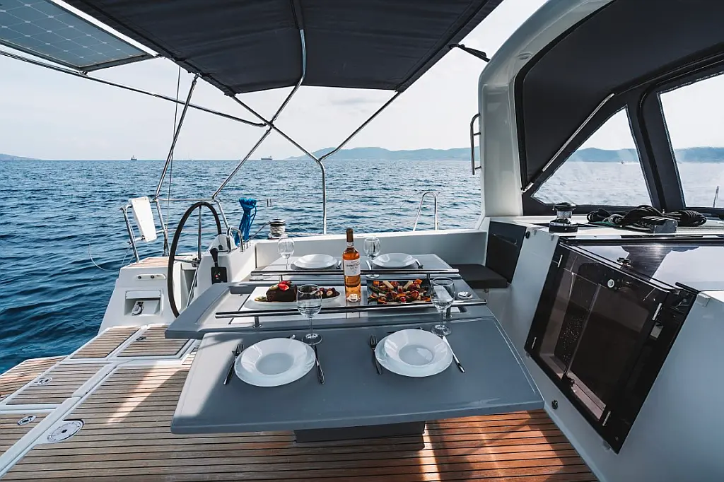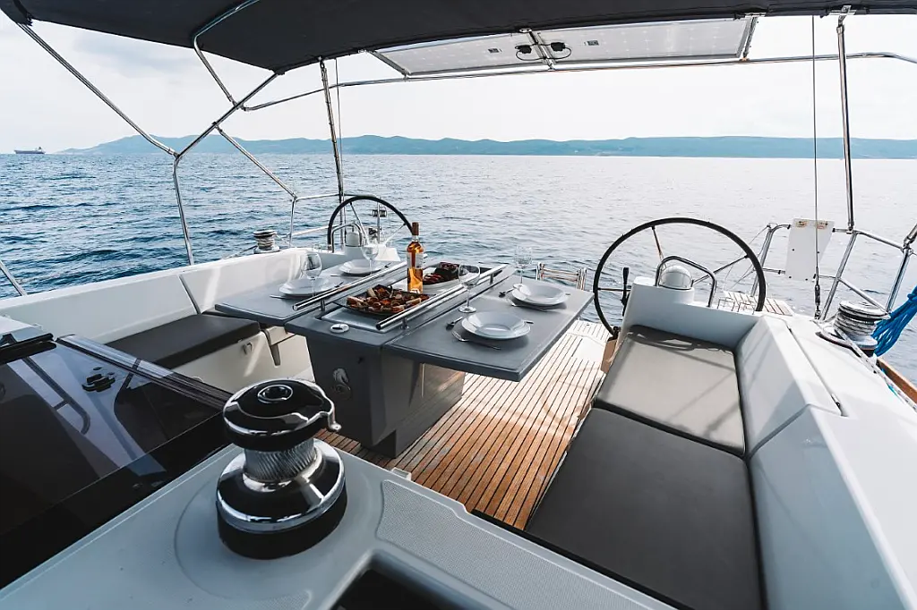Sprayhood, Solar-Panele, Beiboot, Teak Cockpit, Außenbordmotor, Cockpit-Kissen, Kühlschrank, Lautsprecher im Cockpit, Inverter