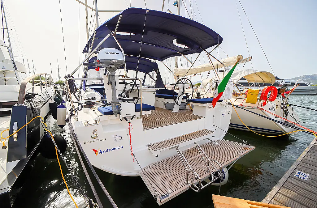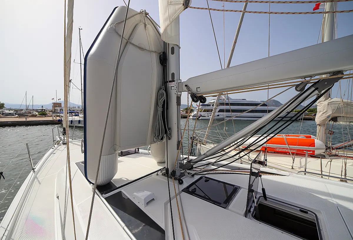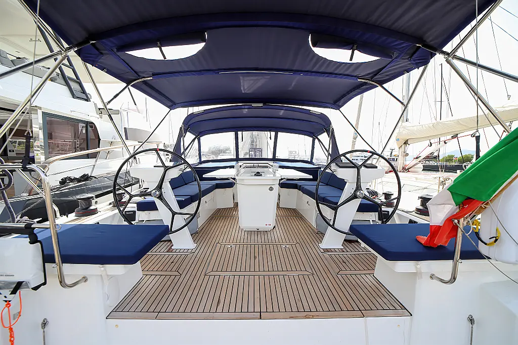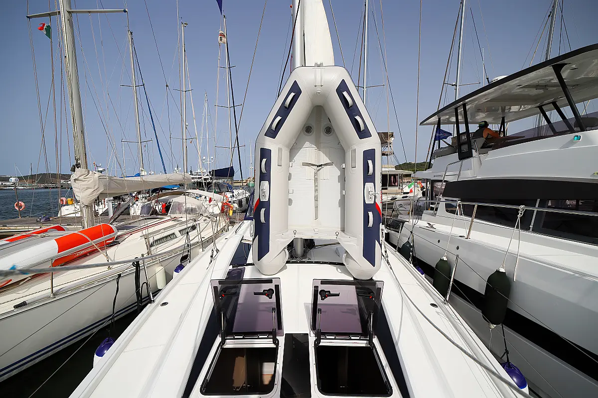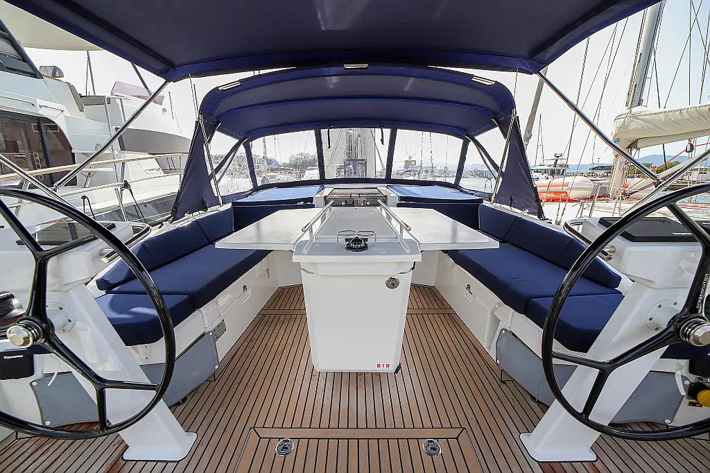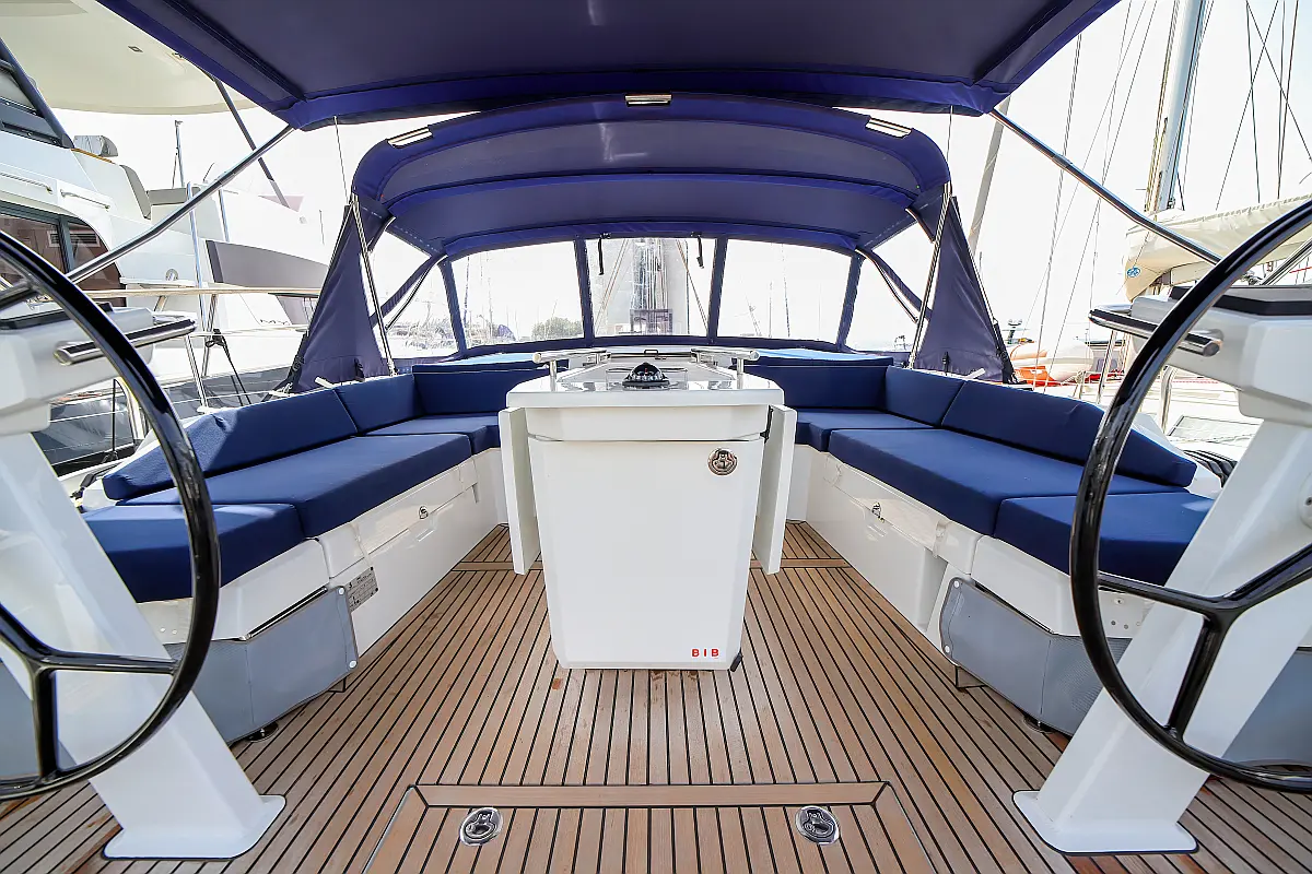 Beiboot, Außenbordmotor, Teak Cockpit, Bimini, Sprayhood, Inverter, Cockpit-Kissen, Elektrische Toilette, Kühlschrank