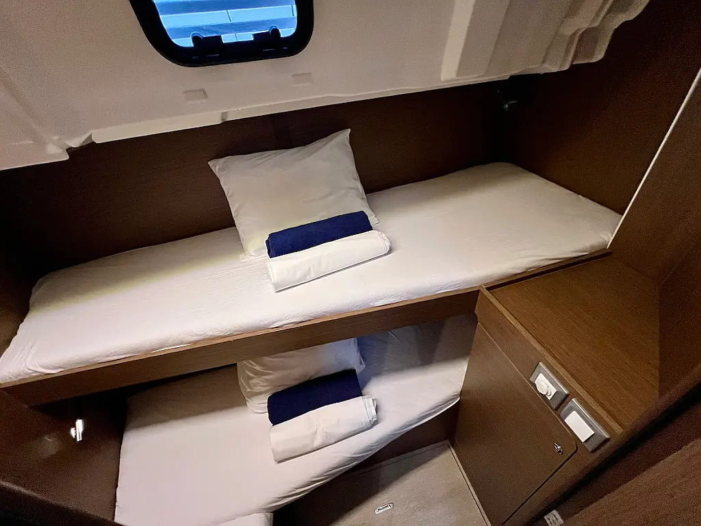 48 ft | Länge 5 Kabinen 12 (10+2) Kojen 3 Heads Technische Spezifikationen Tiefgang: 7 ft | Motor: 57 HP Wassertank: 530.00 l Hauptsegel: Full batten Displacement: 10597.00 kg Treibstofftank: 200.00 l Beam: 15 ft | Genua: Furling Ausrüstung Navigation: Bugstrahlruder, Autopilot Komfort: Beiboot, Sprayhood, Cockpit-Kissen, Bimini Segel: Lazy bag Dokumente