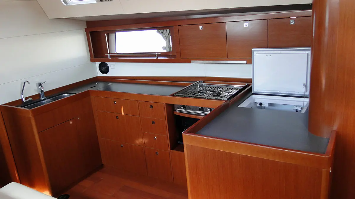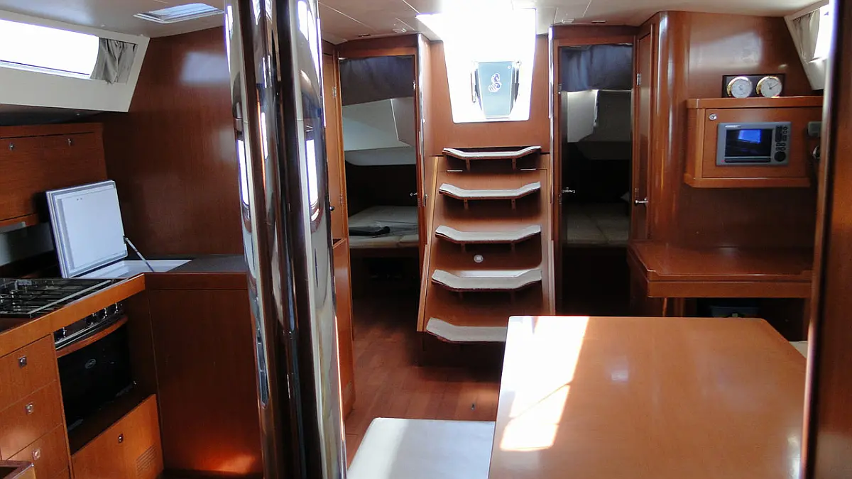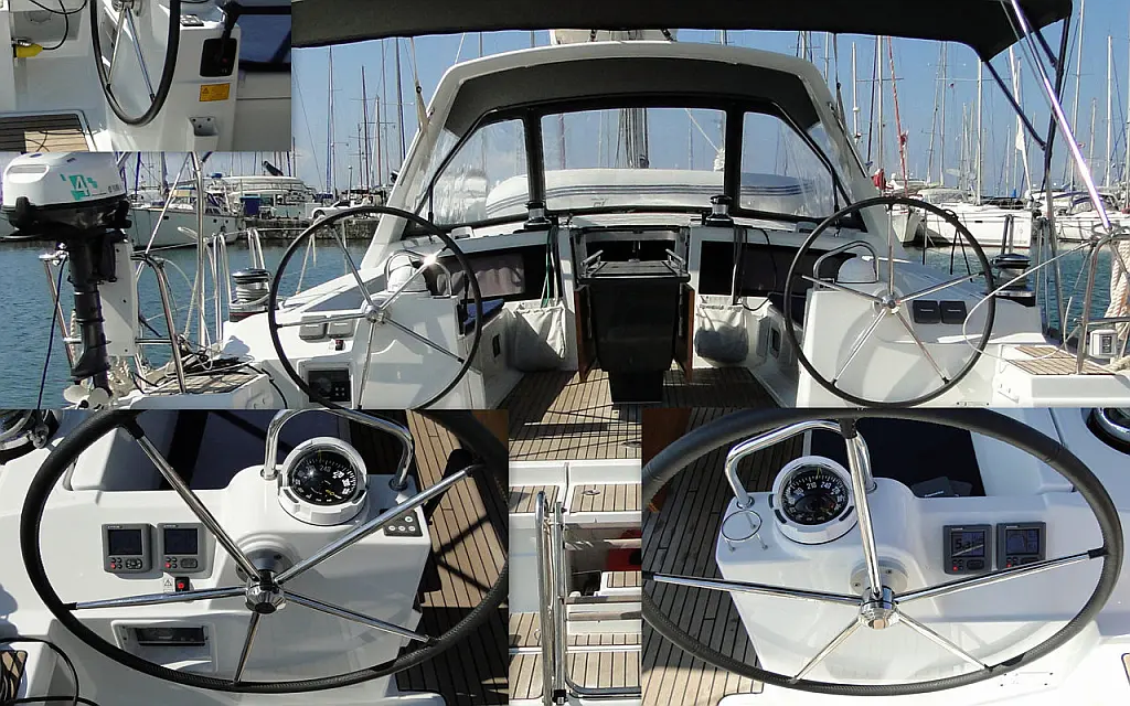 Bimini, Badeplattform, Kühlschrank, Außenbordmotor, Solar-Panele, Elektrische Toilette, Inverter, Sprayhood, Cockpit-Kissen, Beiboot