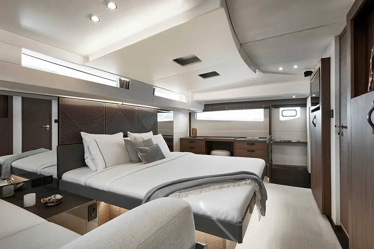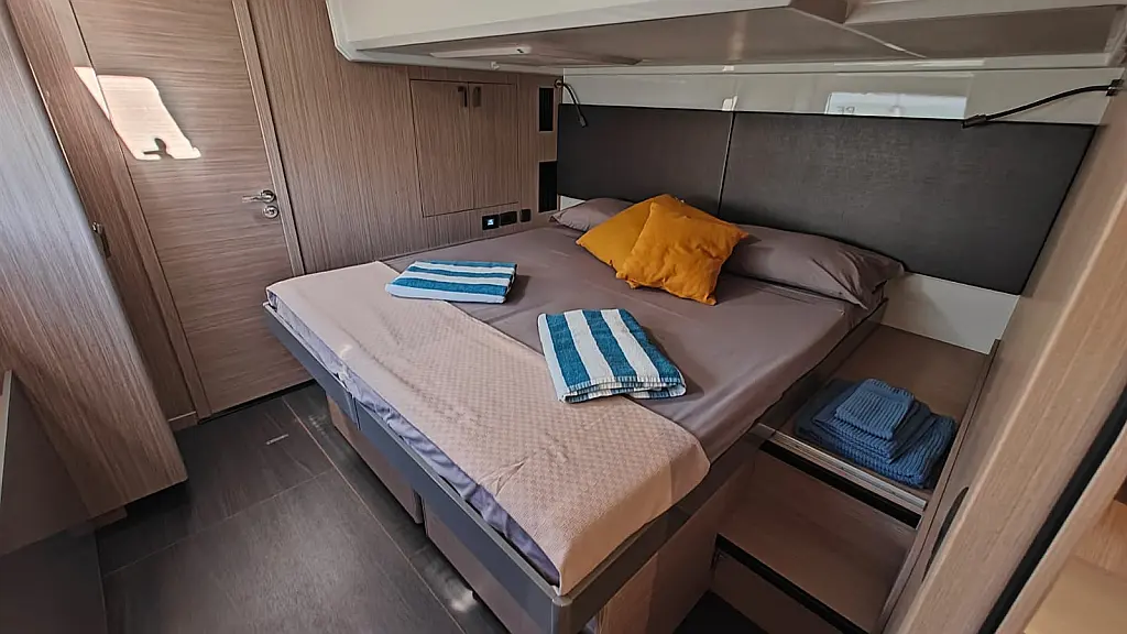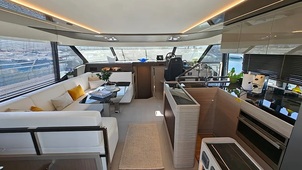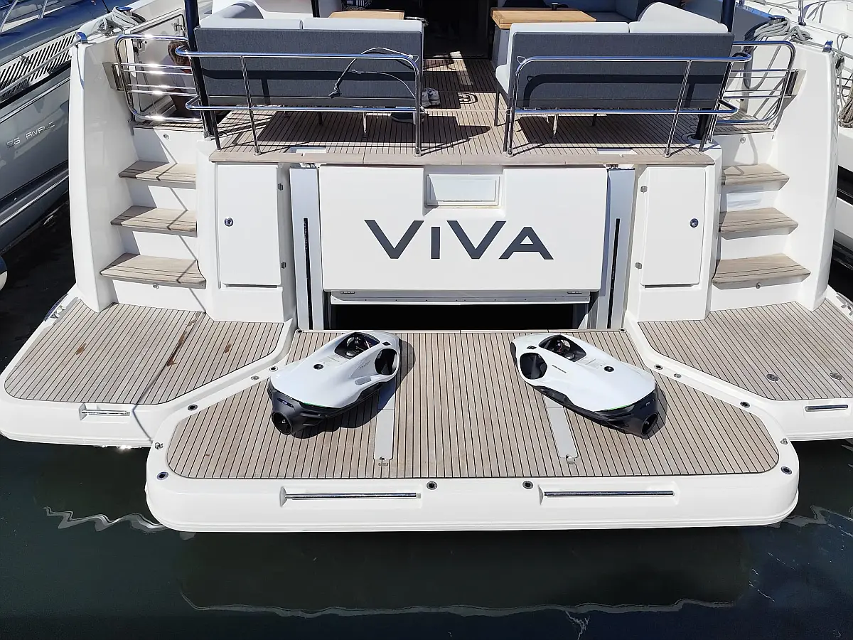 Teak Cockpit, Kühlschrank, Grill im Cockpit, Lautsprecher im Cockpit, Klimaanlage, Heizung, Badeplattform, Generator, Beiboot