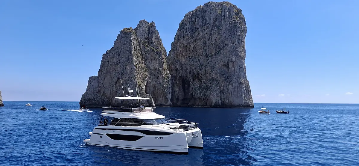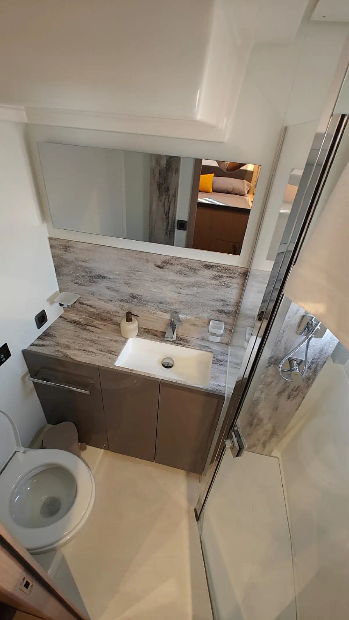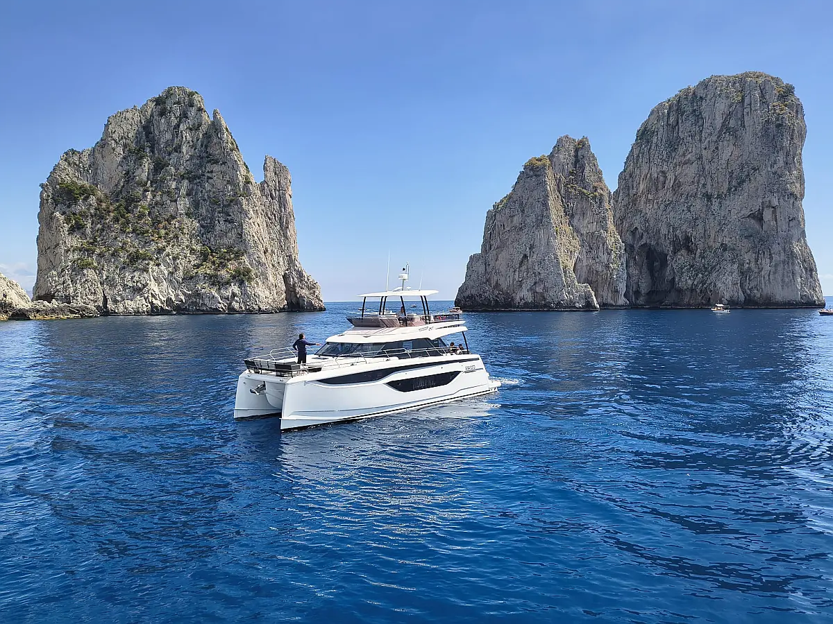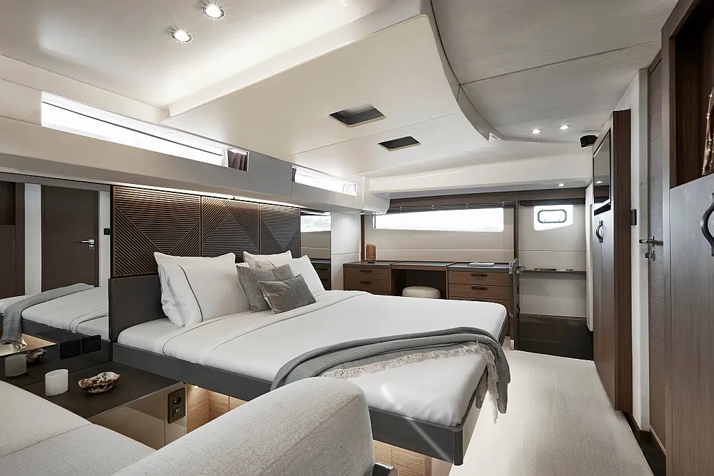Teak Cockpit, Kühlschrank, Grill im Cockpit, Lautsprecher im Cockpit, Klimaanlage, Heizung, Badeplattform, Generator, Beiboot