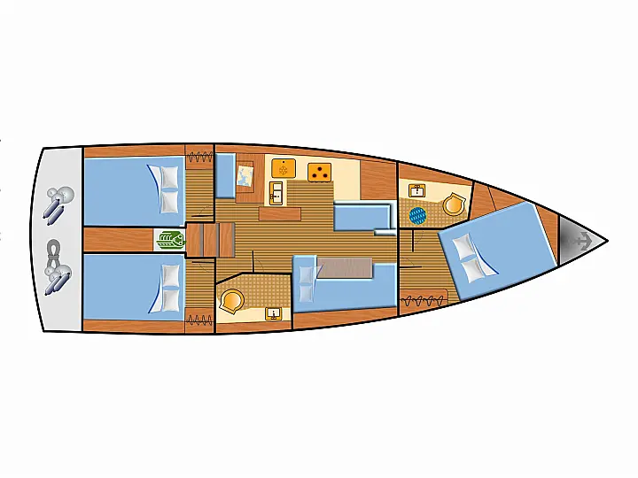 Kühlschrank, Wi-Fi und Internet, Bimini, Beiboot, Fäkalientank, Sprayhood, Cockpit-Kissen, Solar-Panele, Teak Cockpit