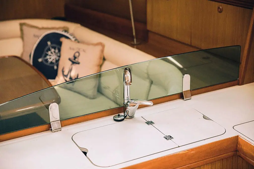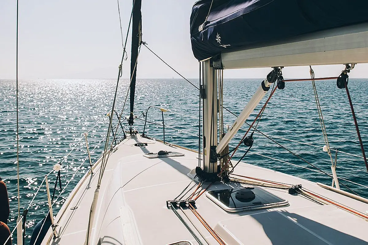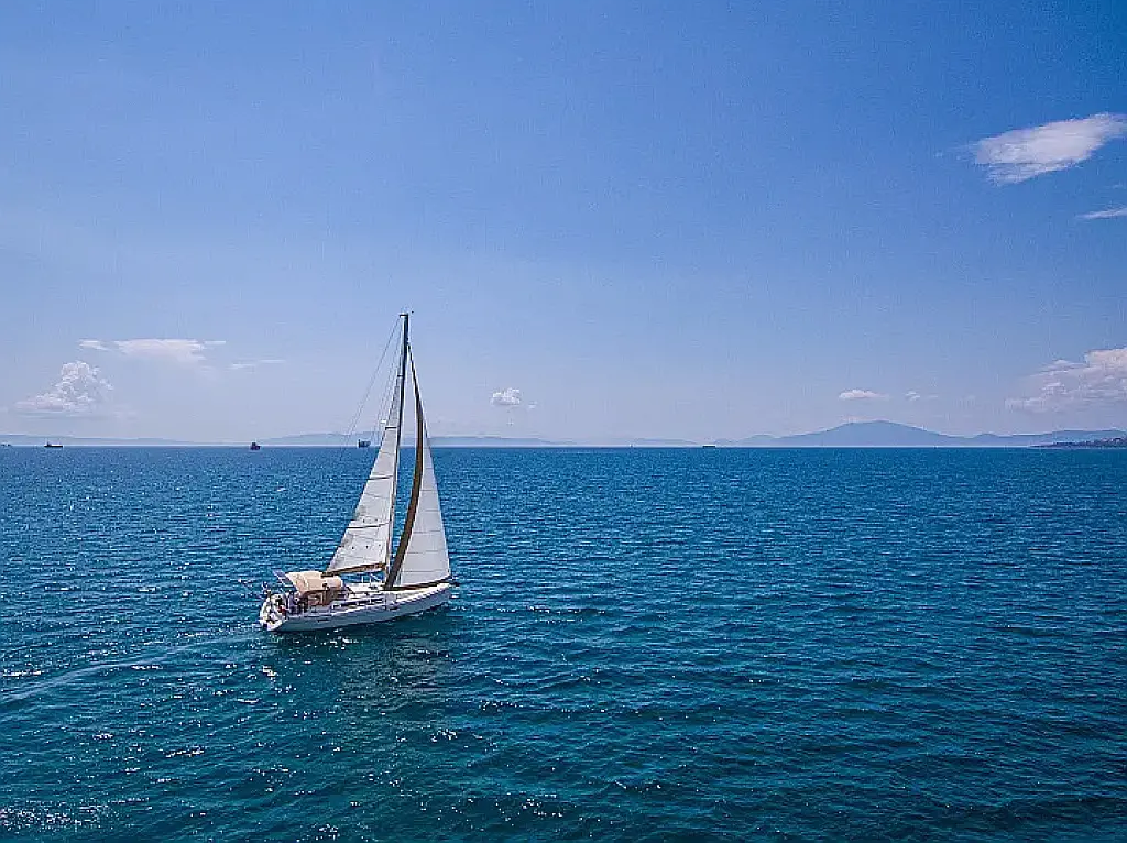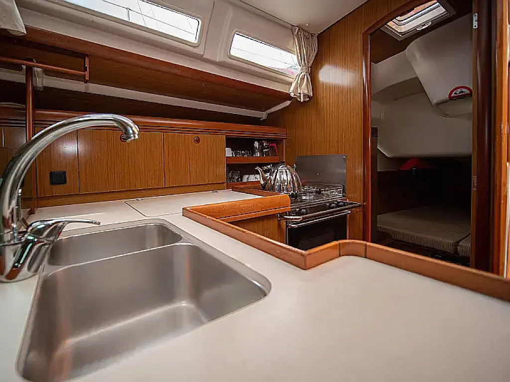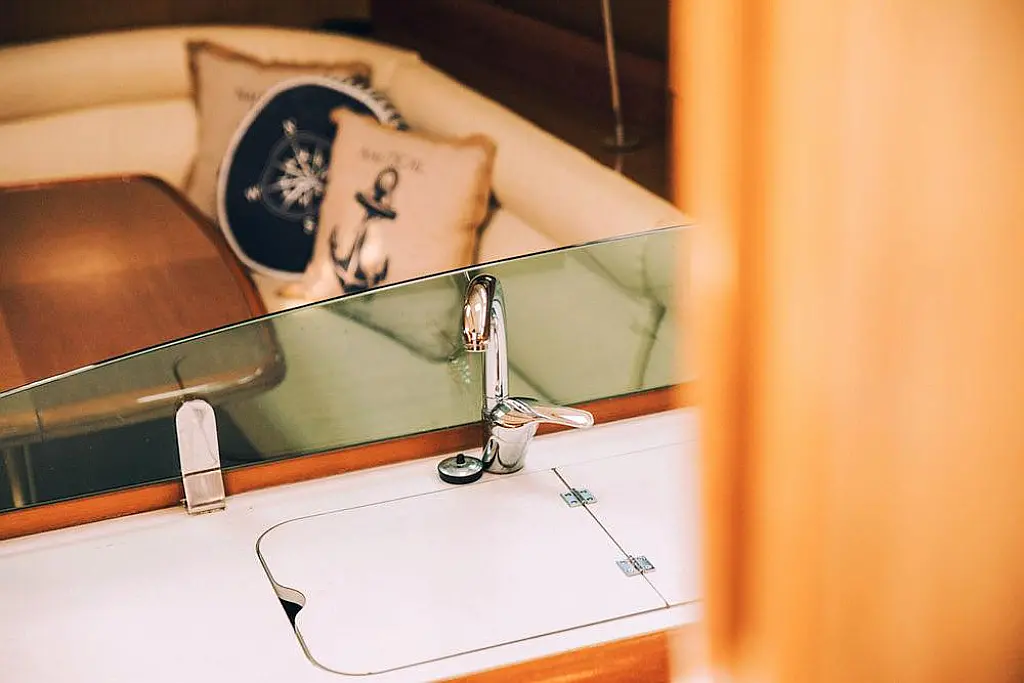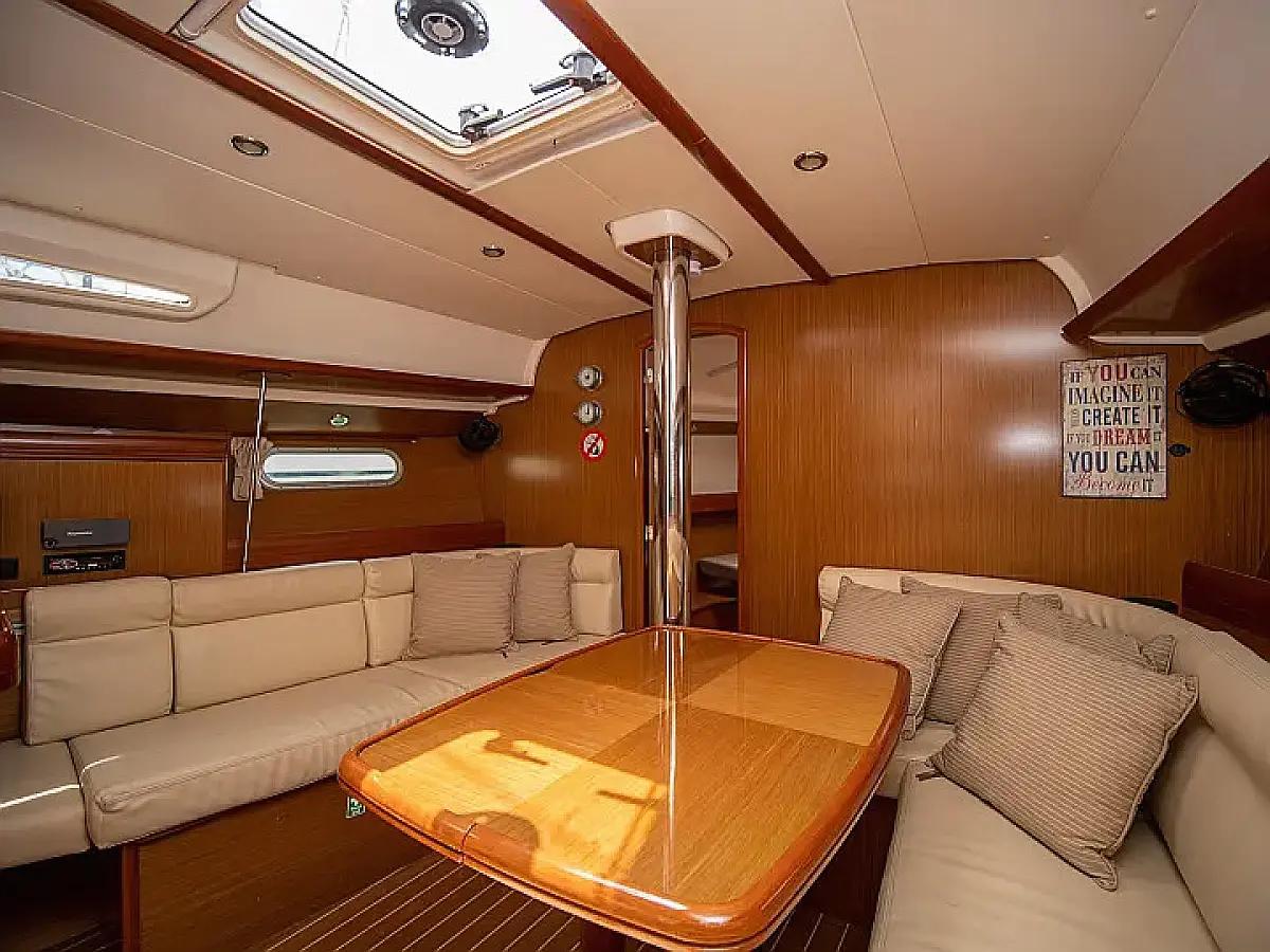 Beiboot, Bimini, Sprayhood, Cockpit-Kissen, Elektrische Toilette, Kühlschrank, Solar-Panele, Außenbordmotor, Lautsprecher im Cockpit