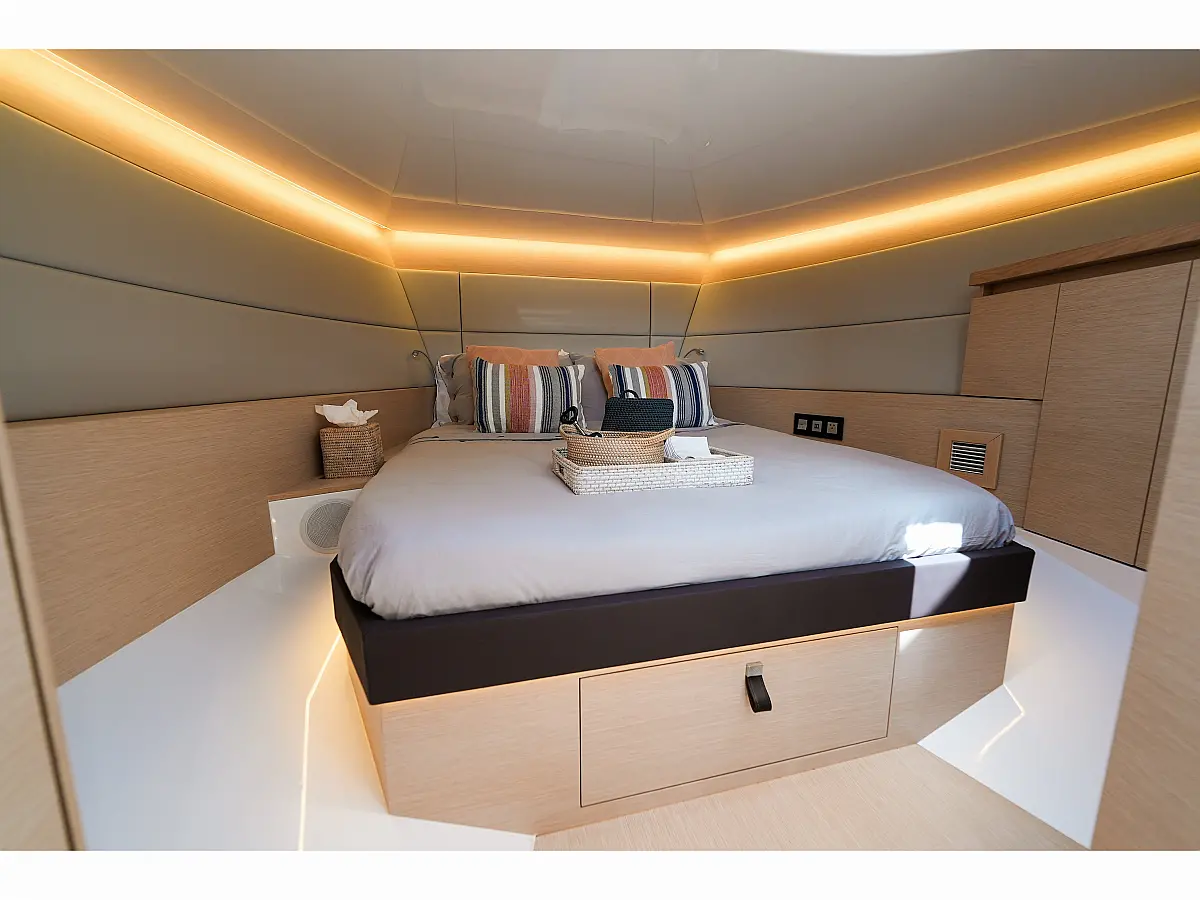 Grill im Cockpit, Bimini, Beiboot, Lautsprecher im Cockpit, Inverter, Kaffeemaschine, Kühlschrank, Solar-Panele