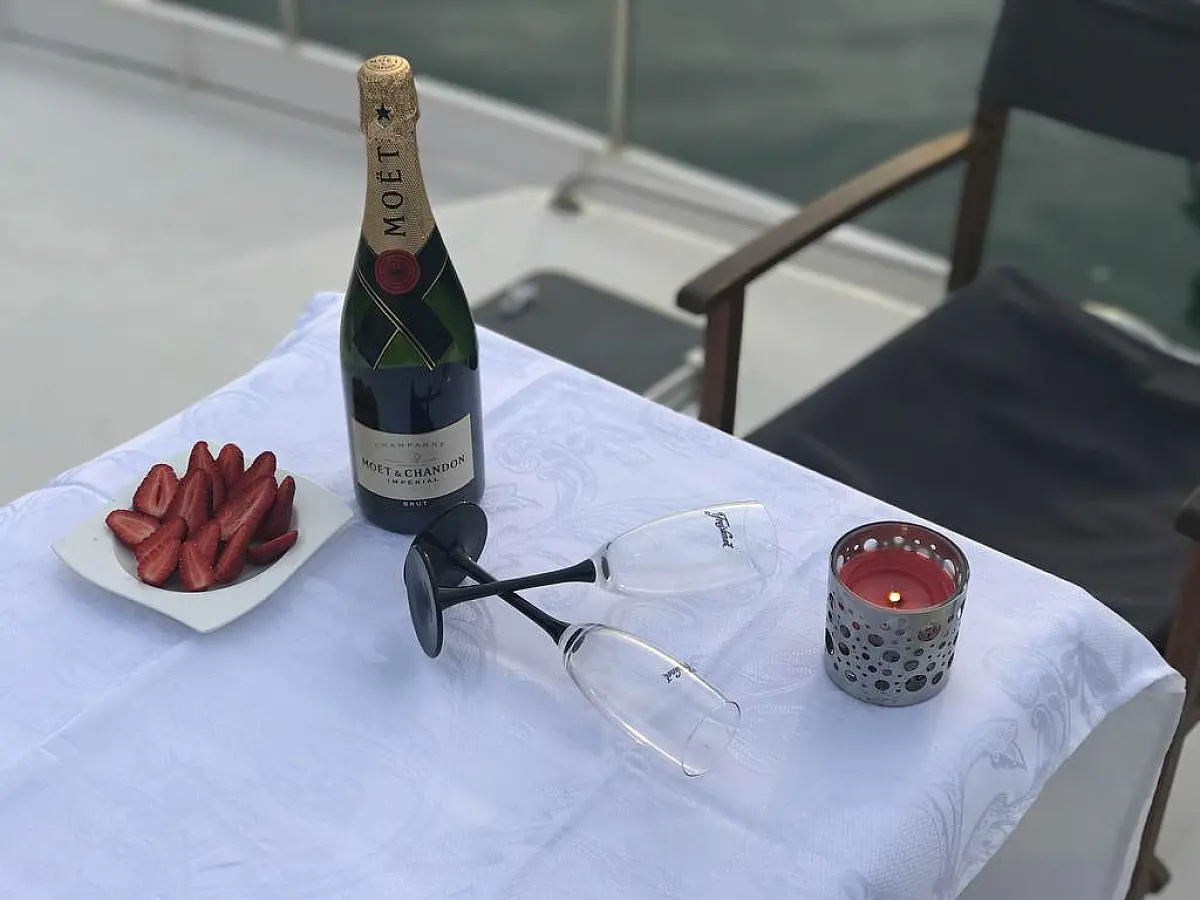 Kaffeemaschine, Lautsprecher im Cockpit, Beiboot, Außenbordmotor, Klimaanlage