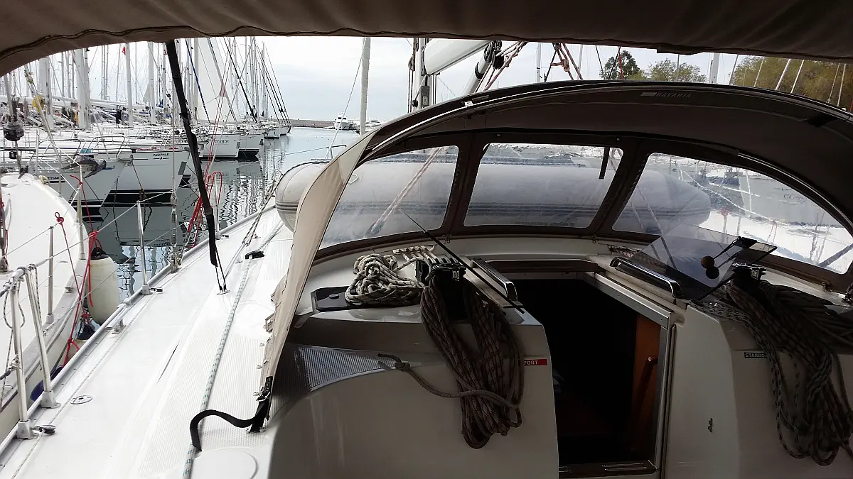 Lautsprecher im Cockpit, Beiboot, Bimini, Sprayhood, Elektrische Toilette, Fäkalientank, Inverter, Solar-Panele, Kühlschrank