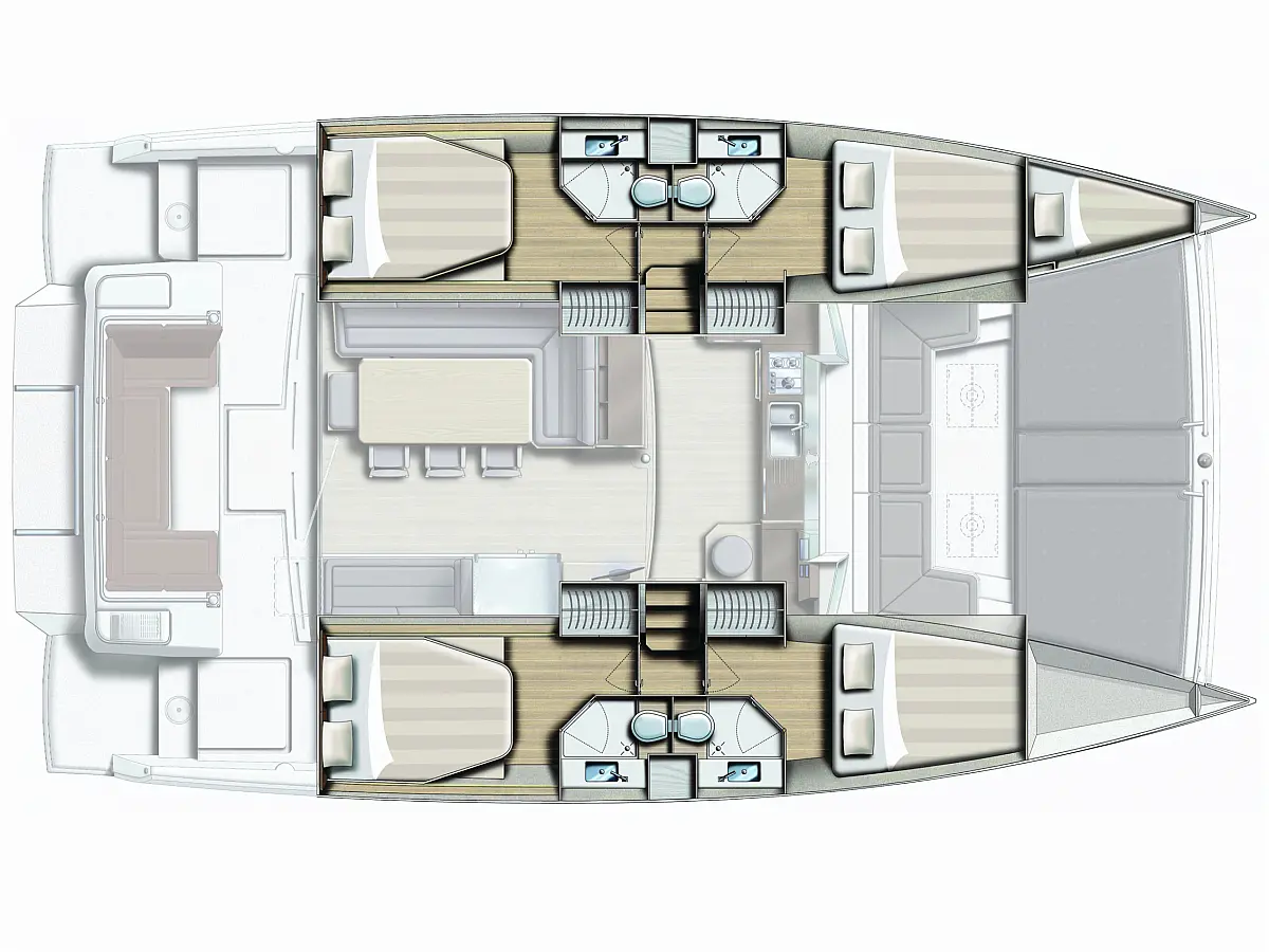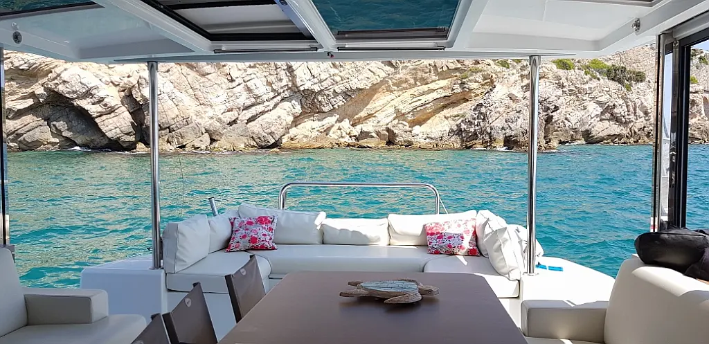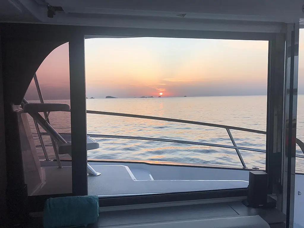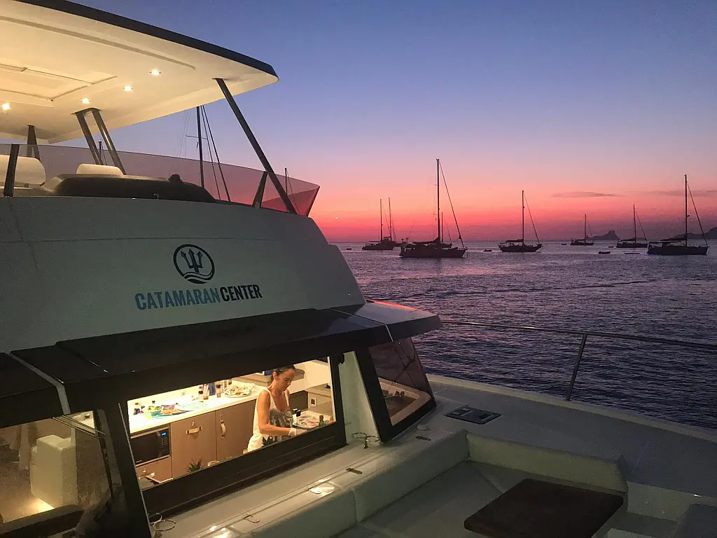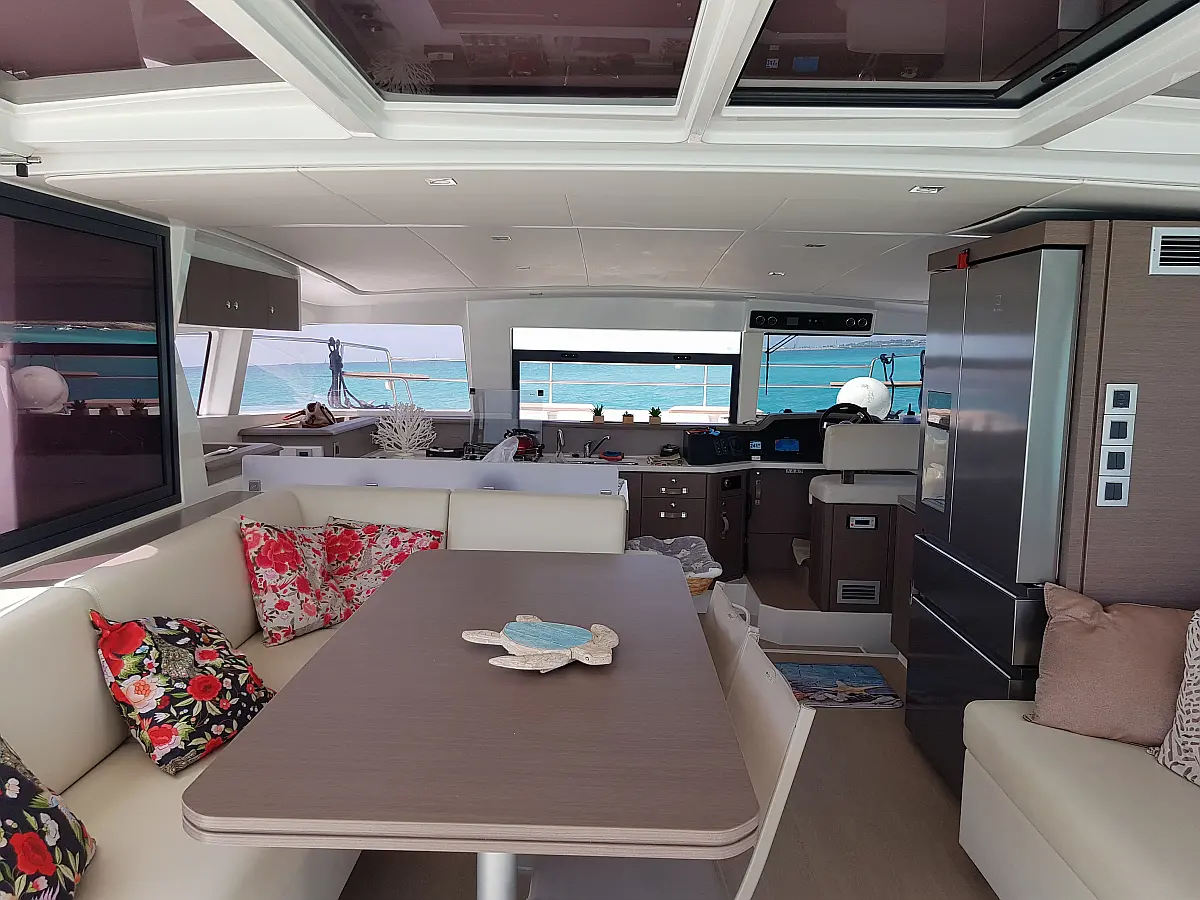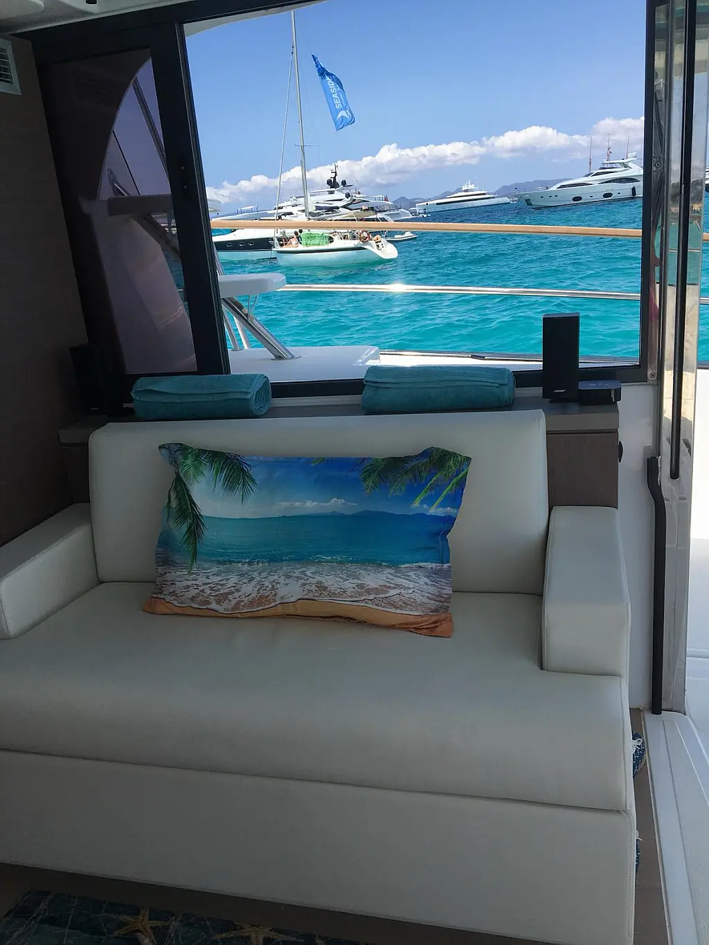 Dishwasher, Refrigerator, Ice maker, Generator, Solar Panels, Flybridge, Water maker, Dinghy