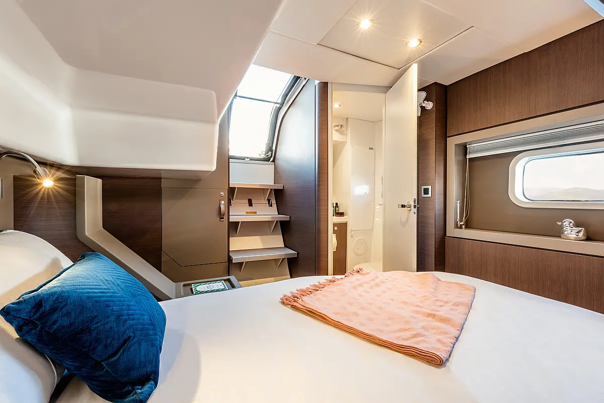 Inverter, Cockpit cushions, Electric toilet, Bimini, Water maker, Ice maker, Cockpit speakers, Air condition, Outboard engine