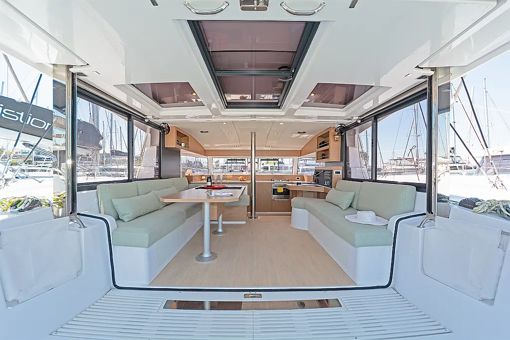 Sprayhood, Bimini, Barbecue grill in cockpit, Dinghy, Wi-Fi & Internet, Electric winches, Inverter, Electric toilet, Refrigerator, Cockpit cushions, Solar Panels, Cockpit speakers