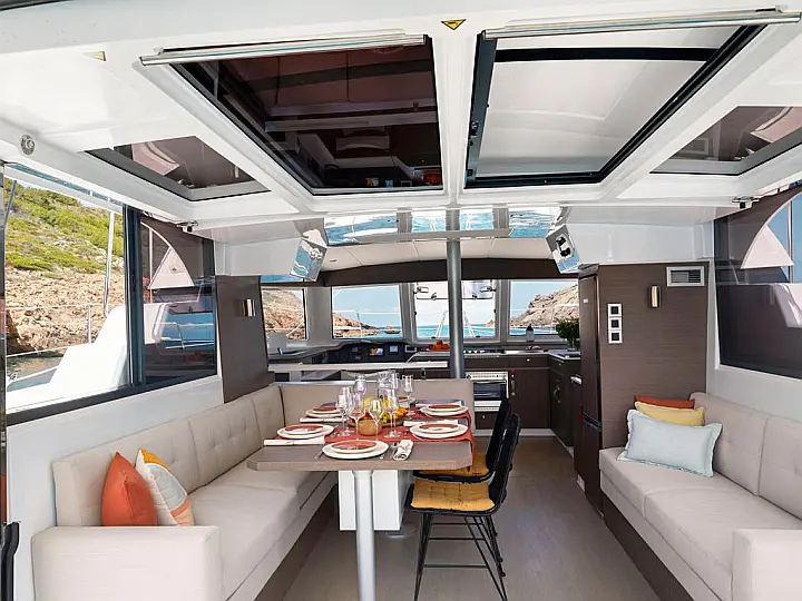 Inverter, Outboard engine, Cockpit cushions, Electric toilet, Solar Panels, Electric winches, Generator, Dinghy