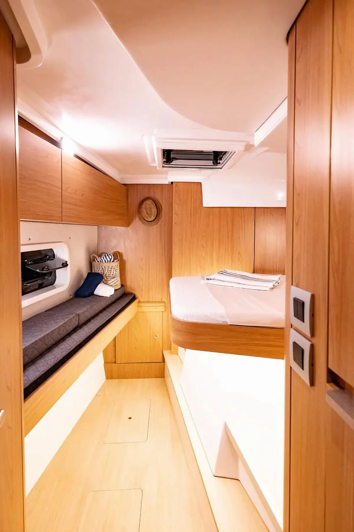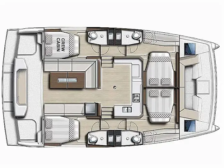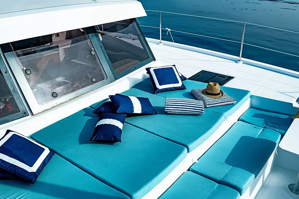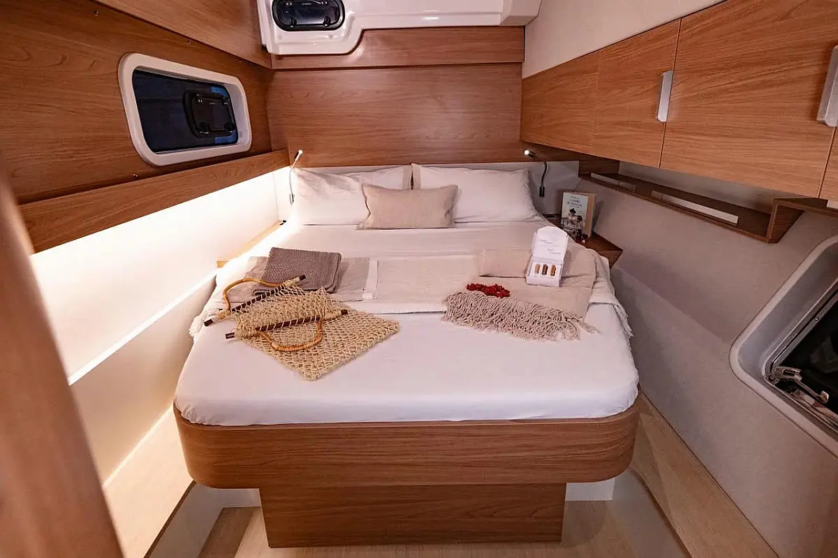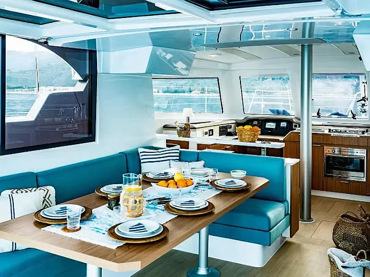Outboard engine, Barbecue grill in cockpit, Water maker, Air condition, Coffee maker, Cockpit cushions, Electric toilet, Solar Panels, Generator, Dinghy