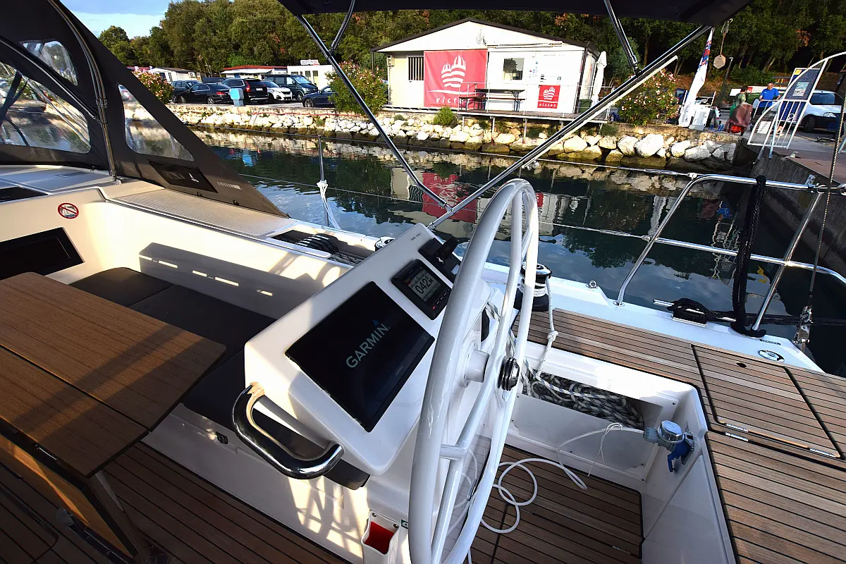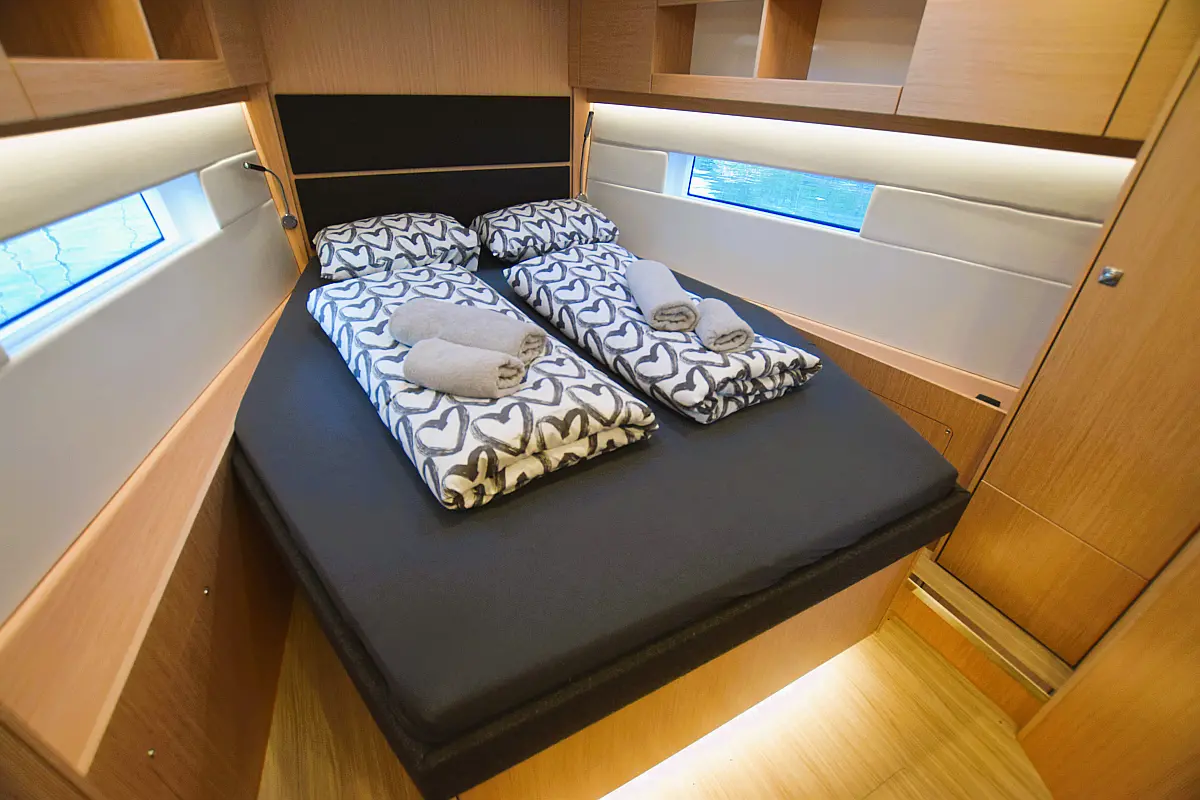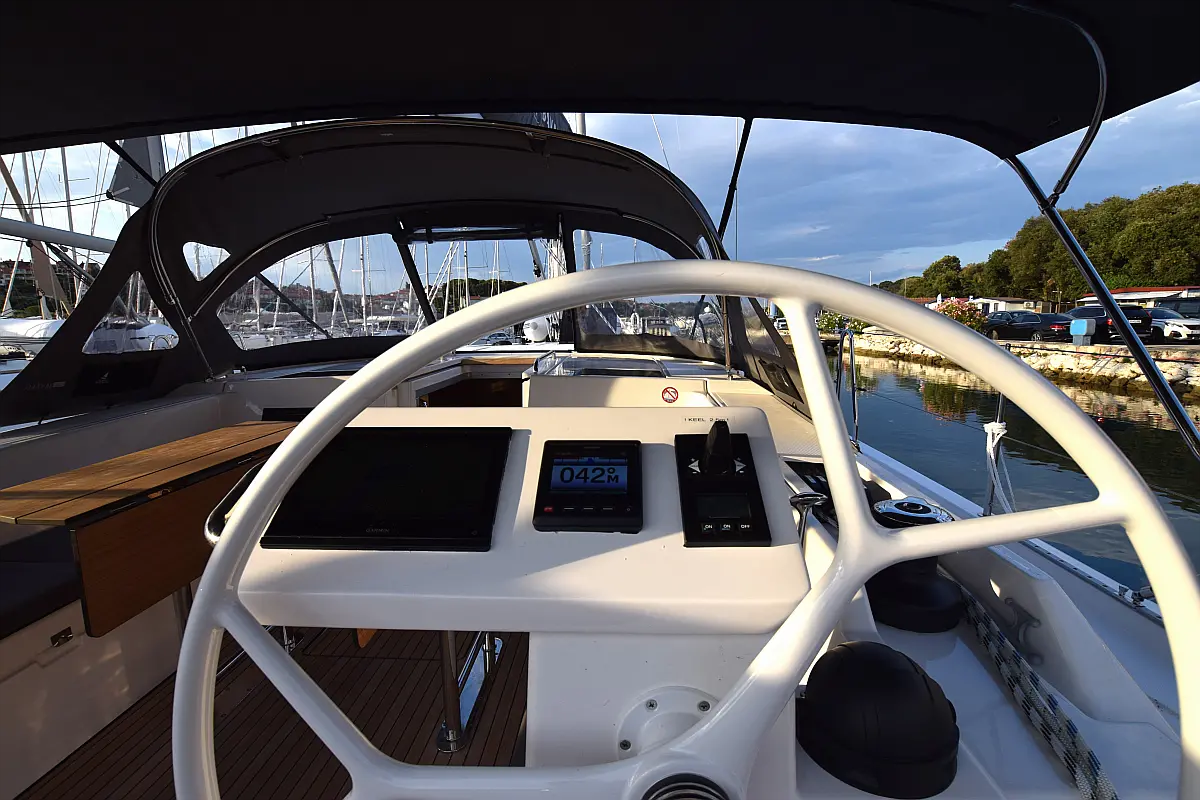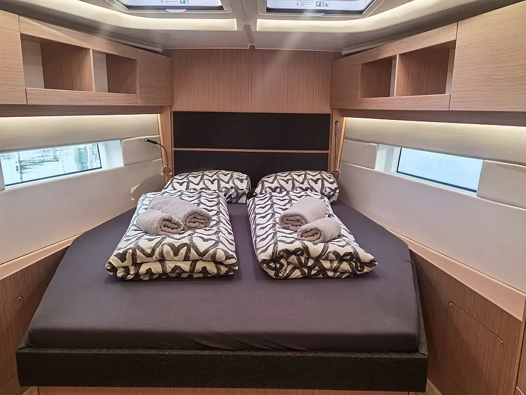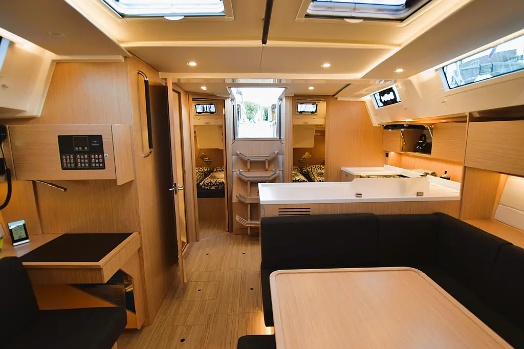 46 ft | Length 3 Cabins 8 (6+2) Berths 2 Heads Technical Specifications Draught: 7 ft | Engine: 57HP Water capacity: 620.00 l Main sail: Full batten Displacement: 12600.00 kg Fuel capacity: 444.00 l Beam: 15 ft | Genoa: Furling Equipment Navigation: Autopilot, Bow thruster Comfort: Holding tank, Cockpit cushions, Dinghy, Heating, Sprayhood, Teak Cockpit Documents Download Brochure