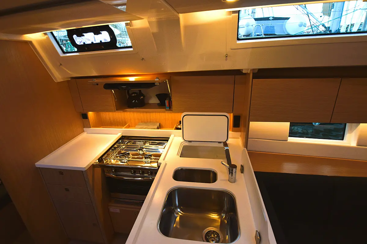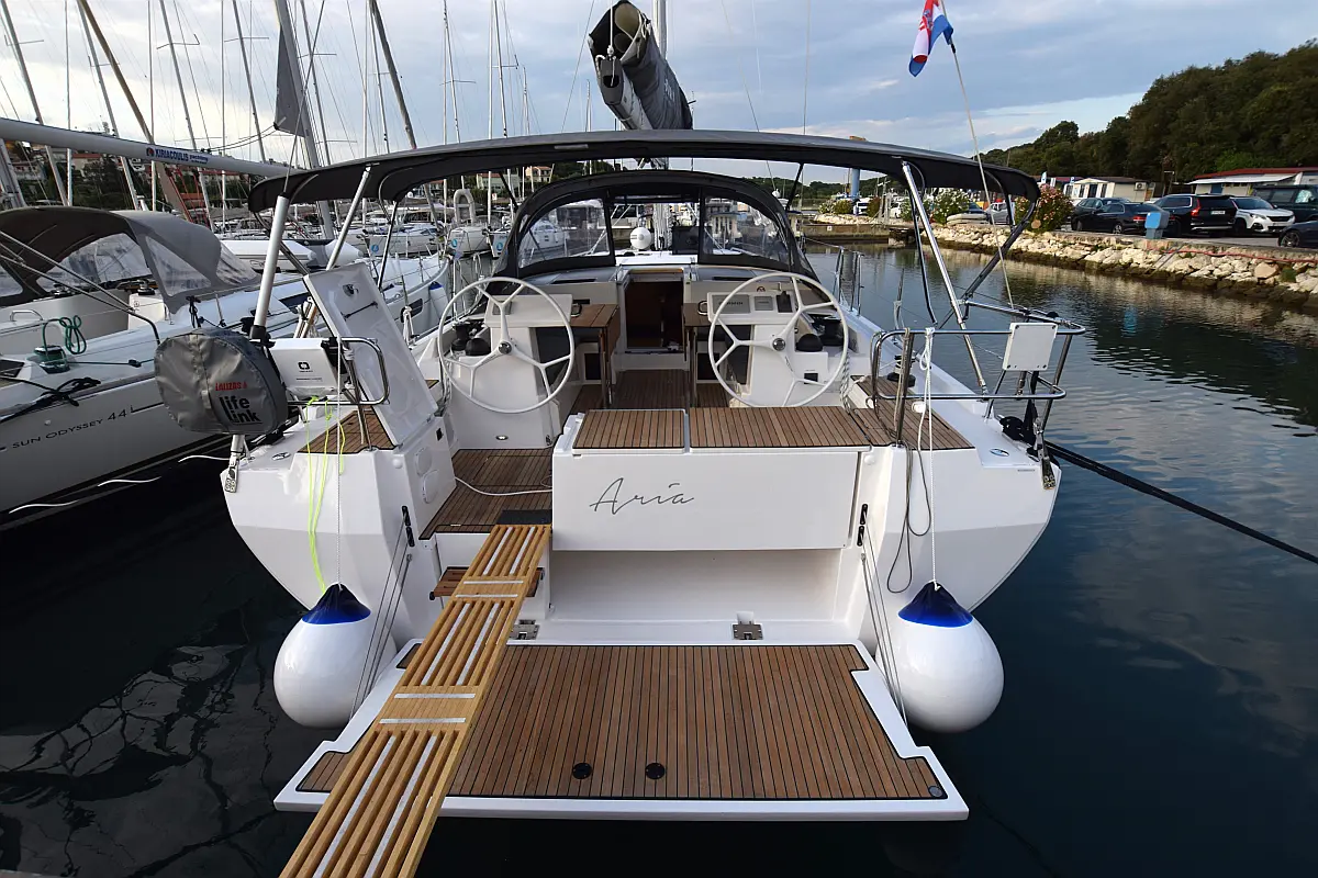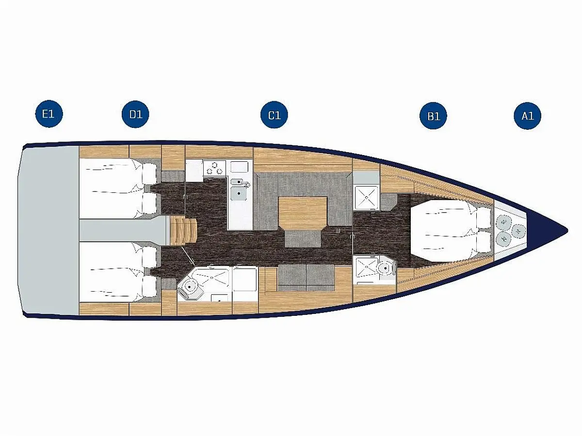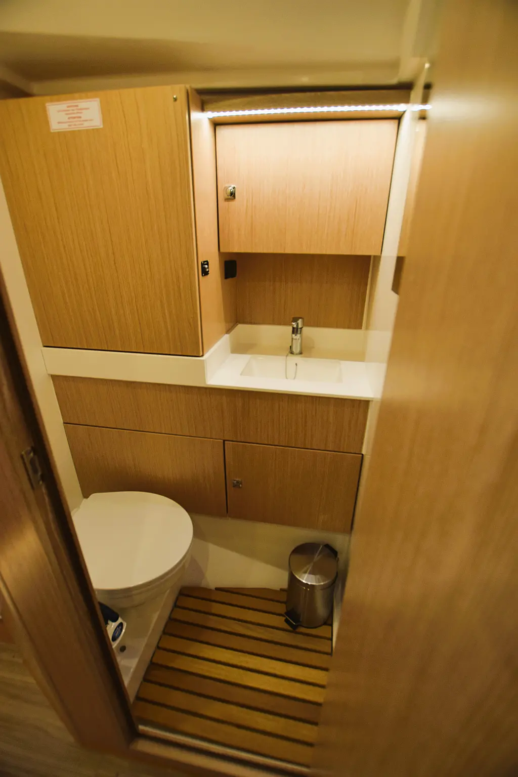 46 ft | Length 3 Cabins 8 (6+2) Berths 2 Heads Technical Specifications Draught: 7 ft | Engine: 57HP Water capacity: 620.00 l Main sail: Full batten Displacement: 12600.00 kg Fuel capacity: 444.00 l Beam: 15 ft | Genoa: Furling Equipment Navigation: Autopilot, Bow thruster Comfort: Holding tank, Cockpit cushions, Dinghy, Heating, Sprayhood, Teak Cockpit Documents Download Brochure