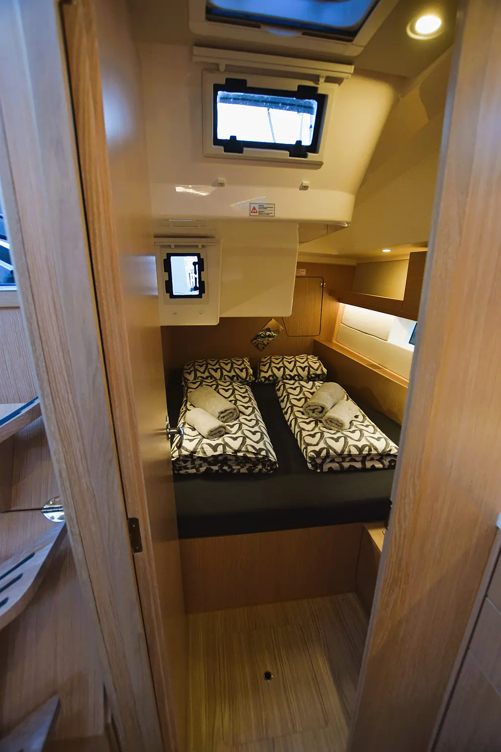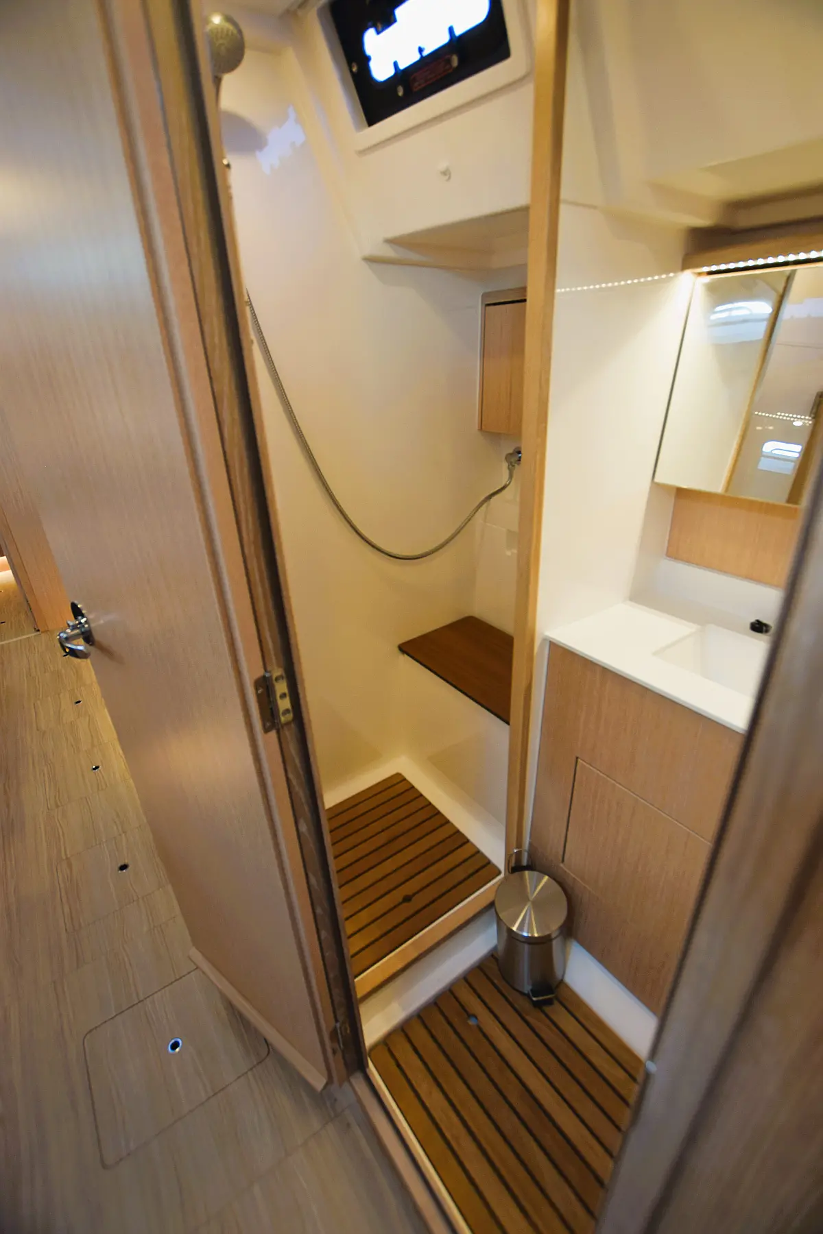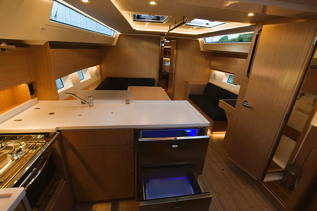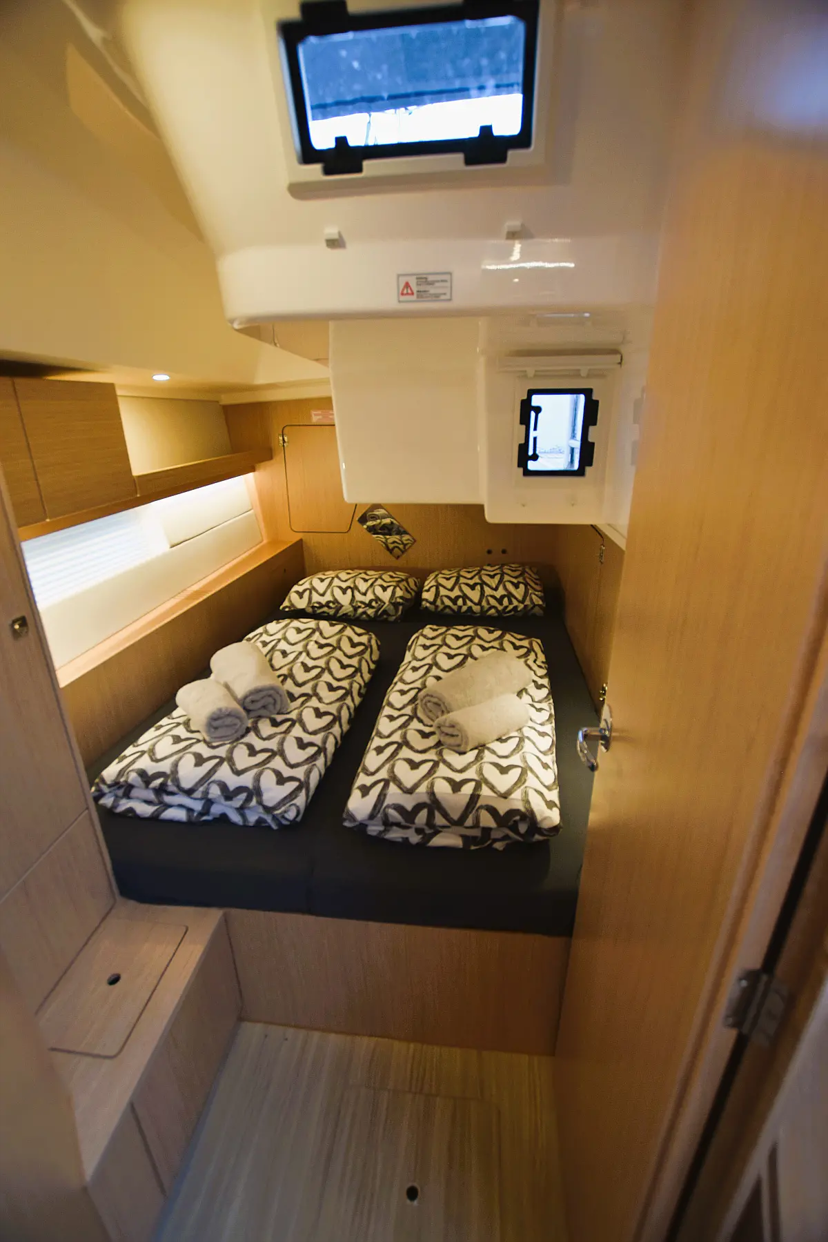 46 ft | Length 3 Cabins 8 (6+2) Berths 2 Heads Technical Specifications Draught: 7 ft | Engine: 57HP Water capacity: 620.00 l Main sail: Full batten Displacement: 12600.00 kg Fuel capacity: 444.00 l Beam: 15 ft | Genoa: Furling Equipment Navigation: Autopilot, Bow thruster Comfort: Holding tank, Cockpit cushions, Dinghy, Heating, Sprayhood, Teak Cockpit Documents Download Brochure