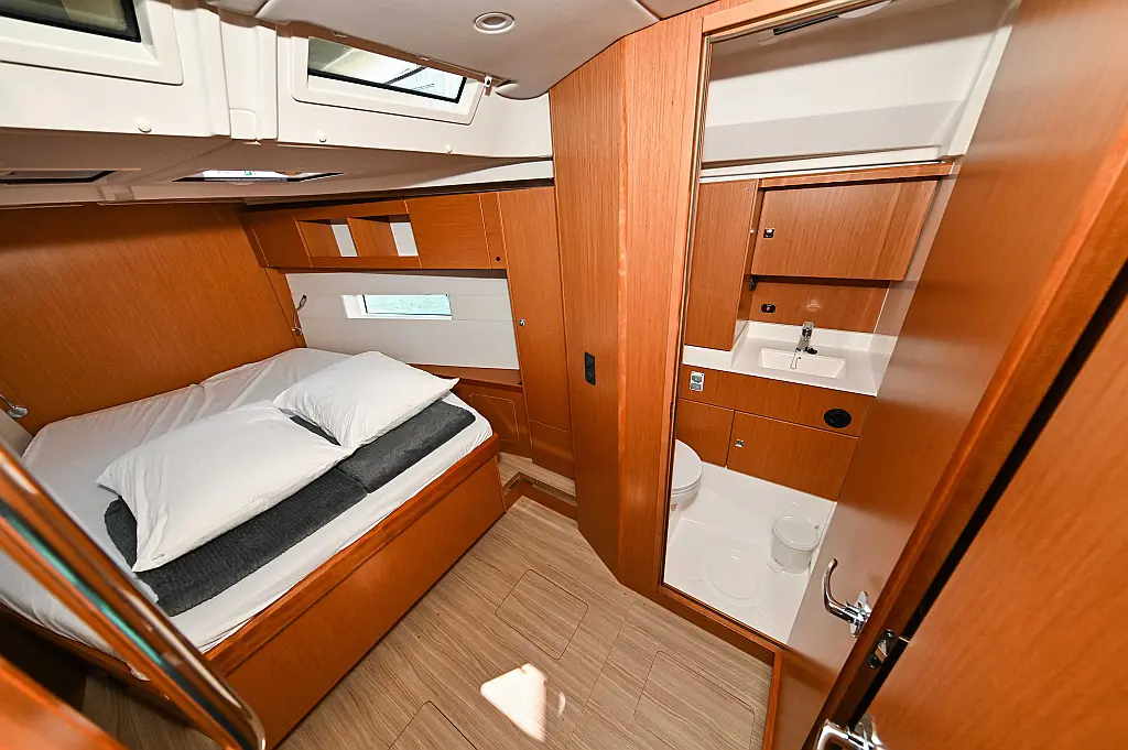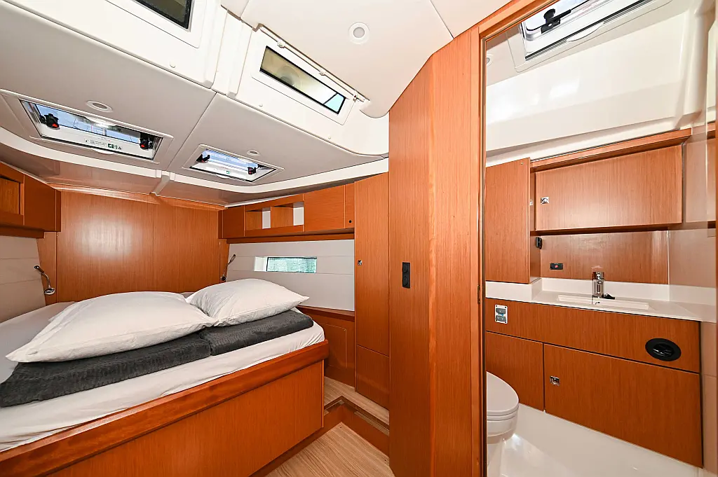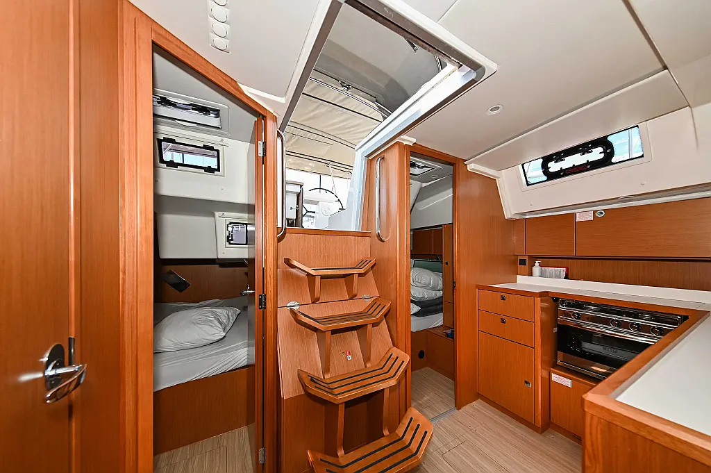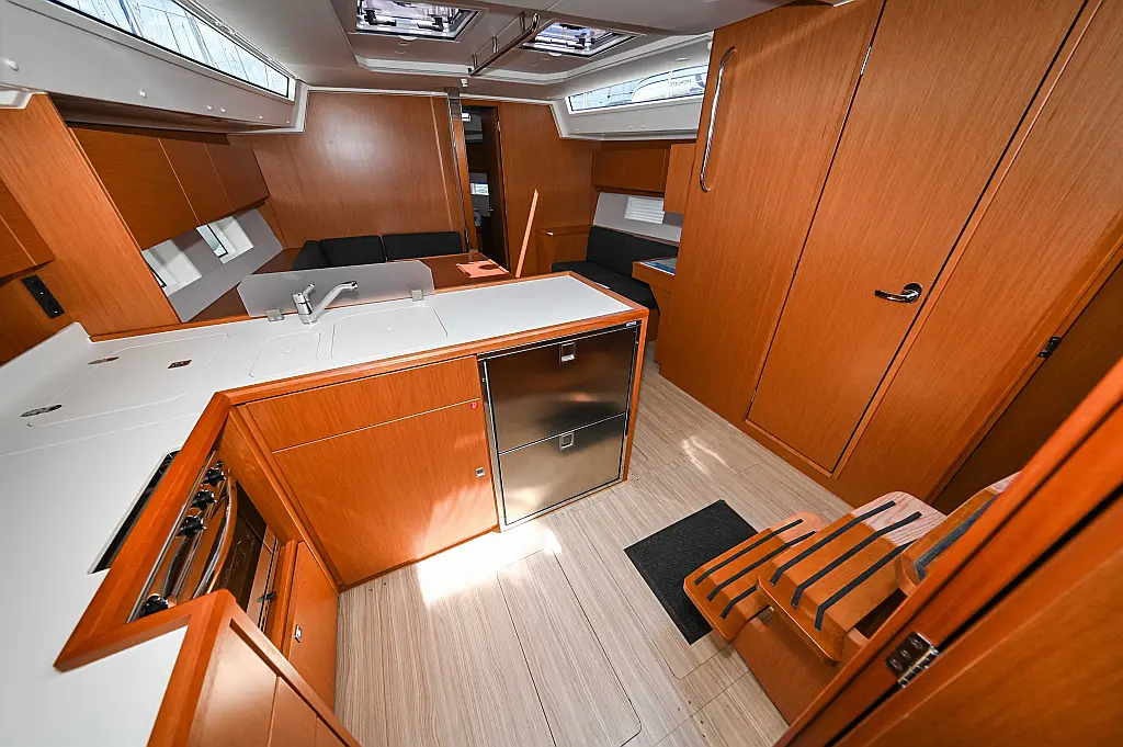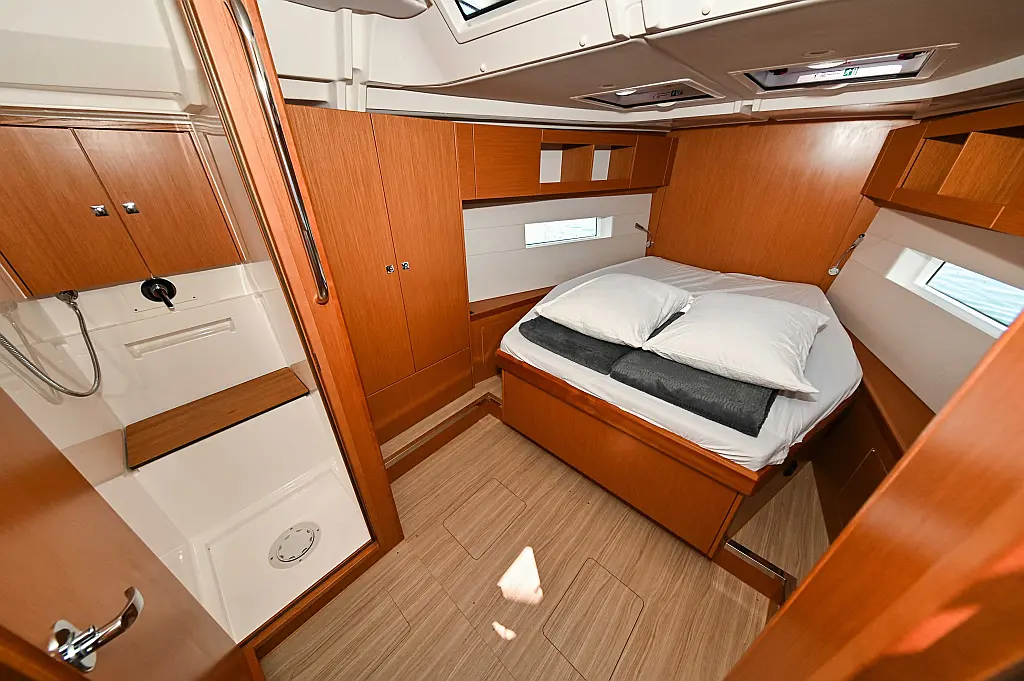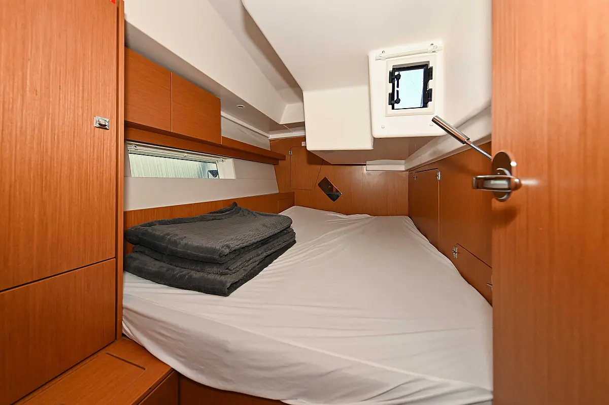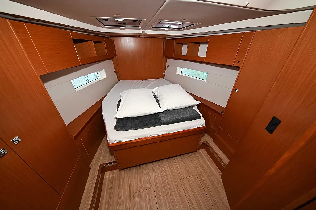 46 ft | Length 3 Cabins 8 6+2 Berths 2 Heads Technical Specifications Draught: 7 ft | Engine: 57HP Water capacity: 650.00 l Main sail: Furling Displacement: 12600.00 kg Fuel capacity: 250.00 l Beam: 15 ft | Genoa: Furling Equipment Navigation: Autopilot, Bow thruster Comfort: Holding tank, Cockpit cushions, Dinghy, Heating, Sprayhood, Teak Cockpit Documents Download Brochure