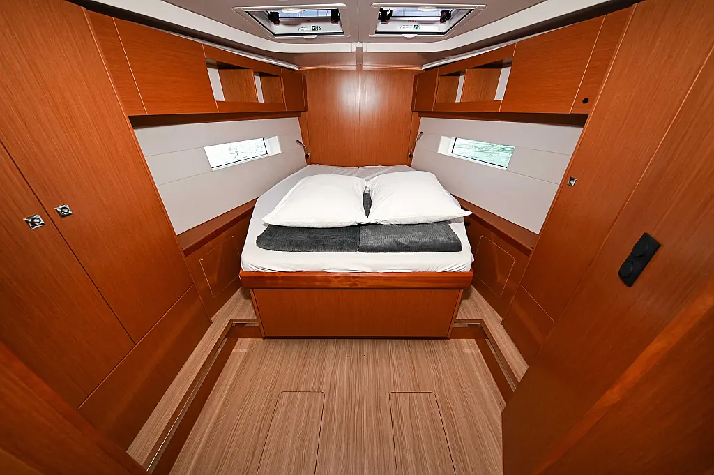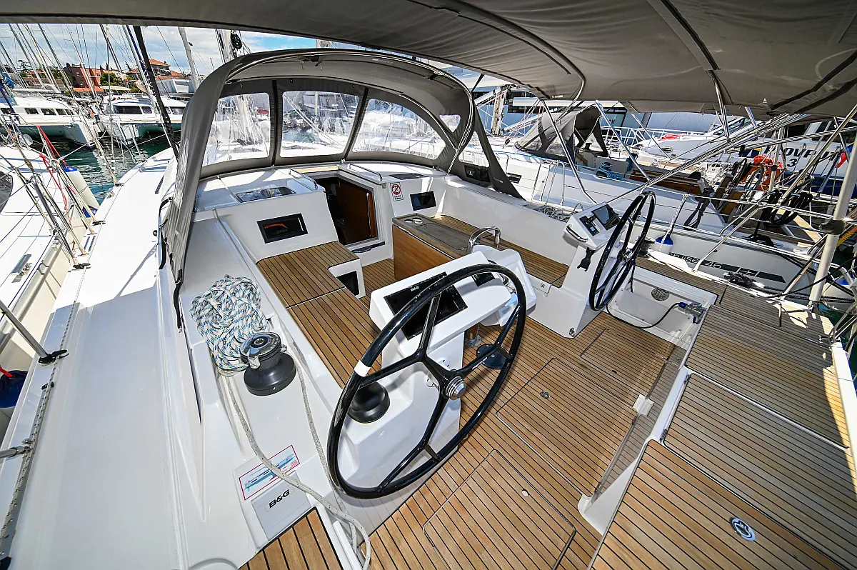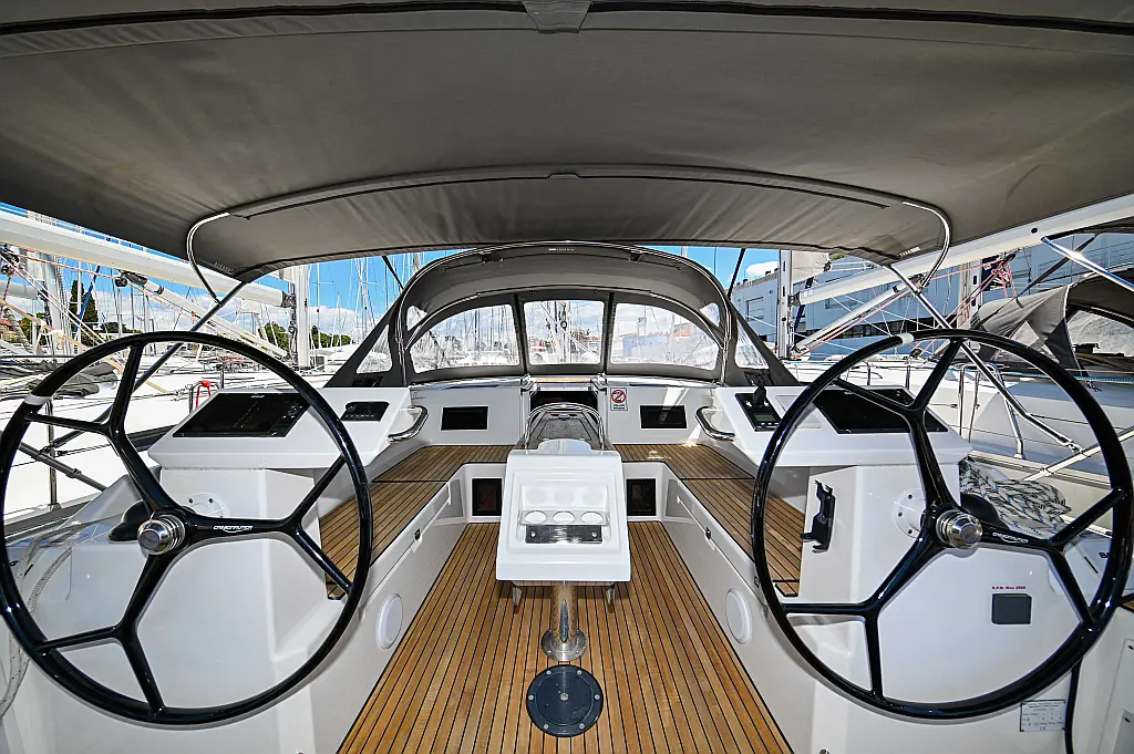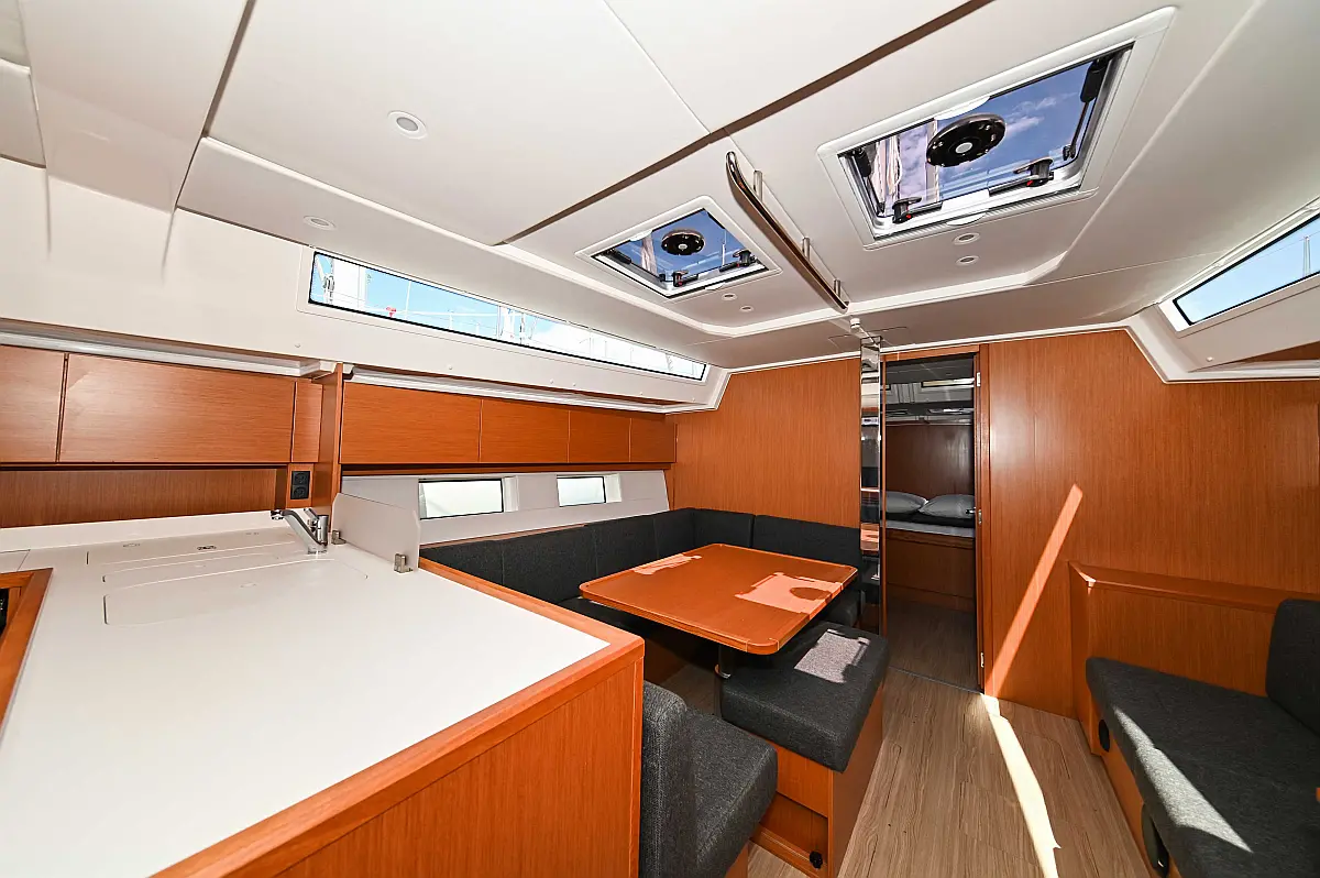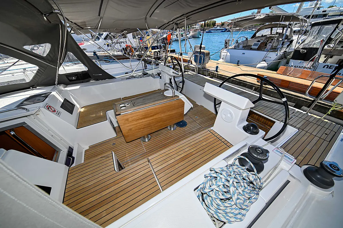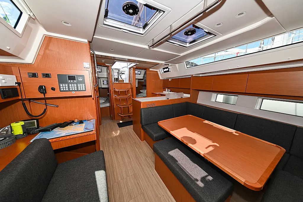 46 ft | Length 3 Cabins 8 6+2 Berths 2 Heads Technical Specifications Draught: 7 ft | Engine: 57HP Water capacity: 650.00 l Main sail: Furling Displacement: 12600.00 kg Fuel capacity: 250.00 l Beam: 15 ft | Genoa: Furling Equipment Navigation: Autopilot, Bow thruster Comfort: Holding tank, Cockpit cushions, Dinghy, Heating, Sprayhood, Teak Cockpit Documents Download Brochure