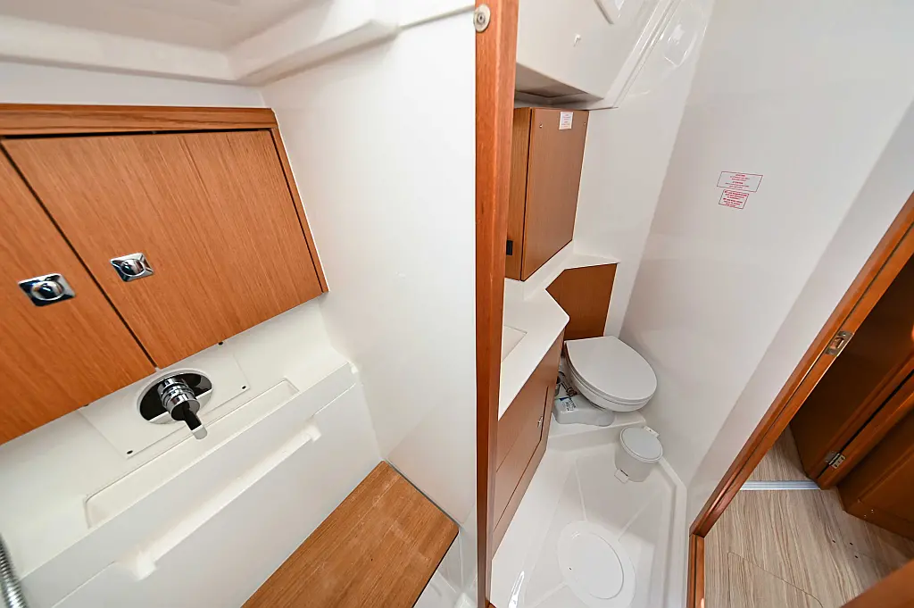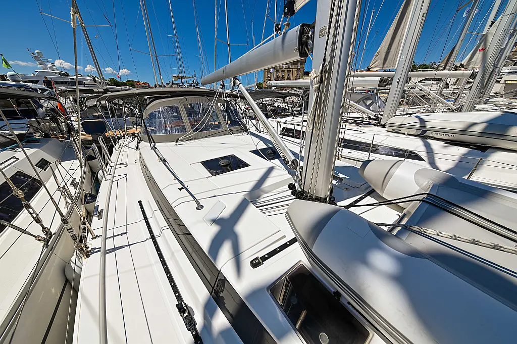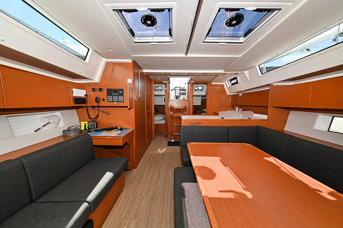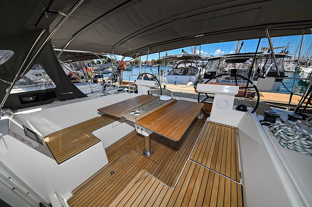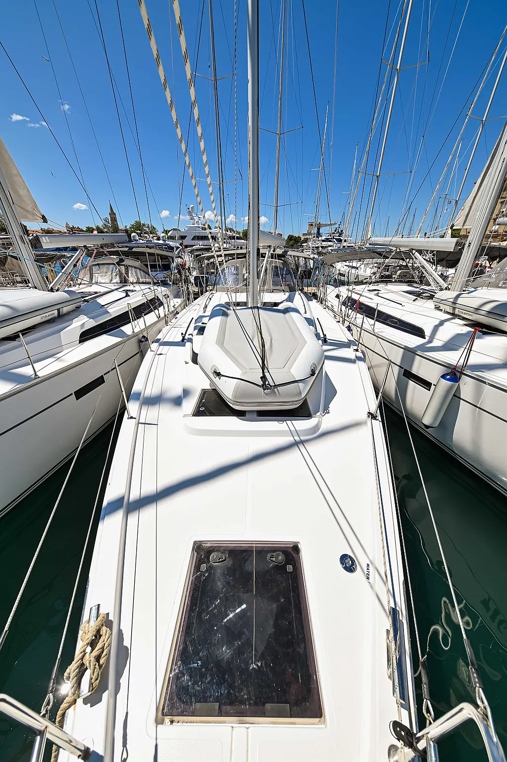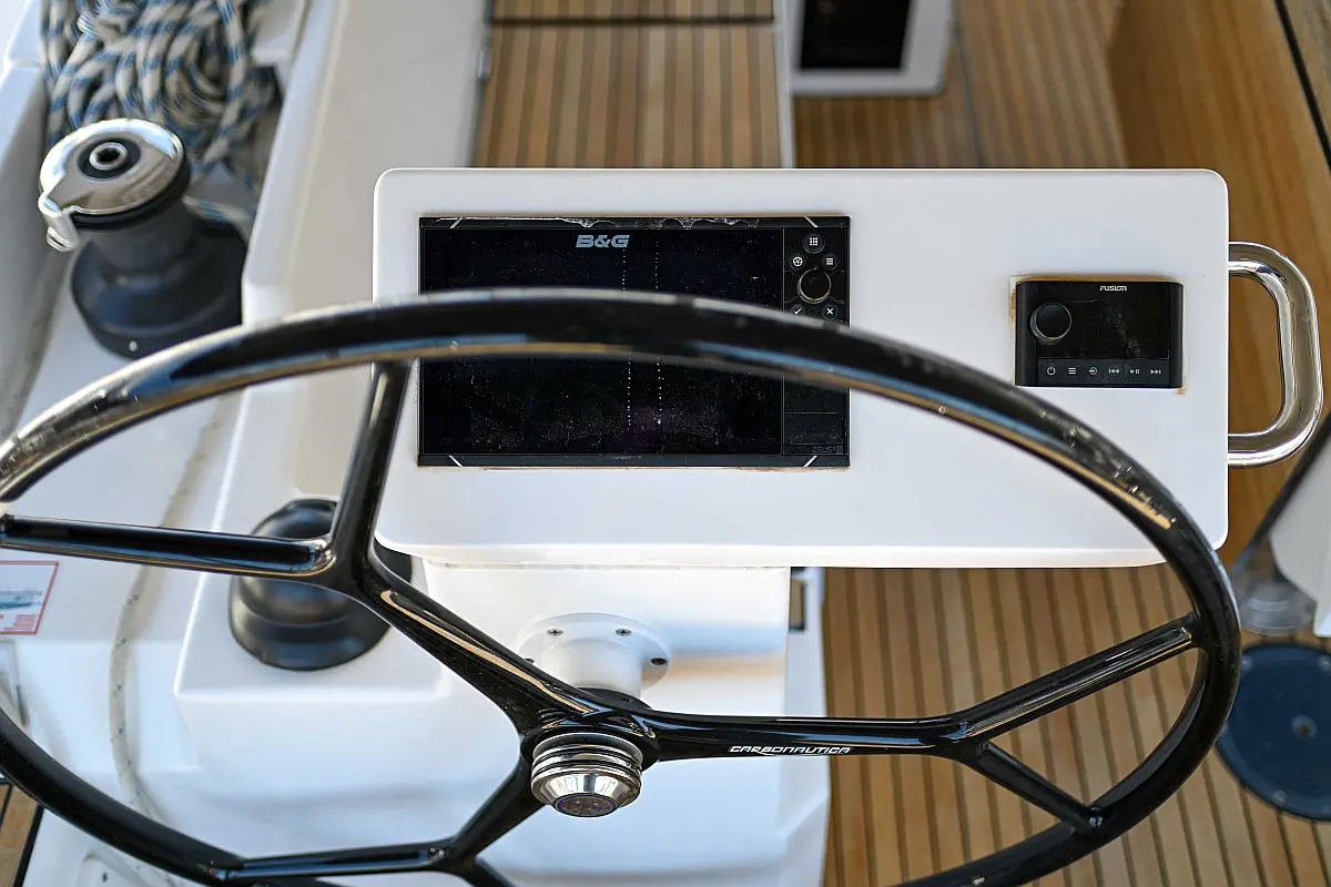 46 ft | Length 3 Cabins 8 6+2 Berths 2 Heads Technical Specifications Draught: 7 ft | Engine: 57HP Water capacity: 650.00 l Main sail: Furling Displacement: 12600.00 kg Fuel capacity: 250.00 l Beam: 15 ft | Genoa: Furling Equipment Navigation: Autopilot, Bow thruster Comfort: Holding tank, Cockpit cushions, Dinghy, Heating, Sprayhood, Teak Cockpit Documents Download Brochure