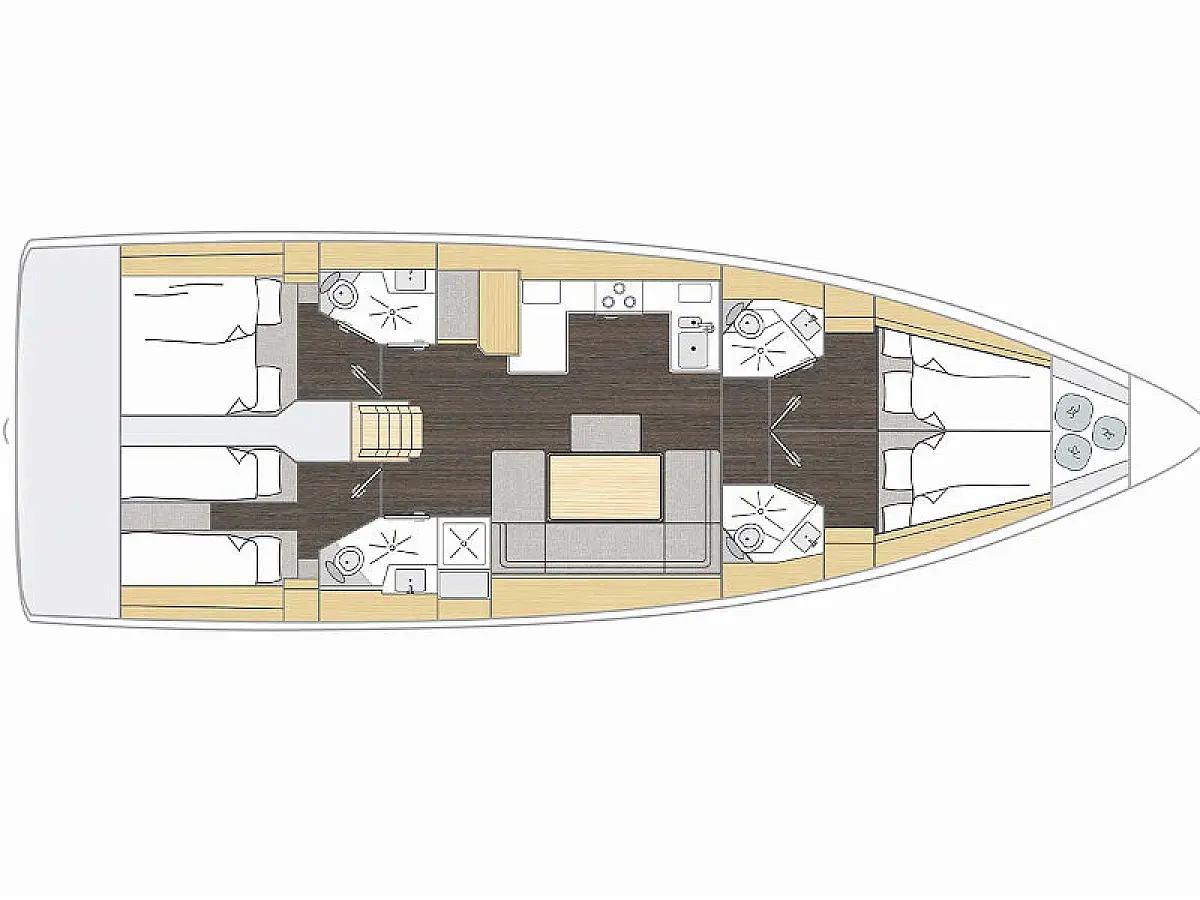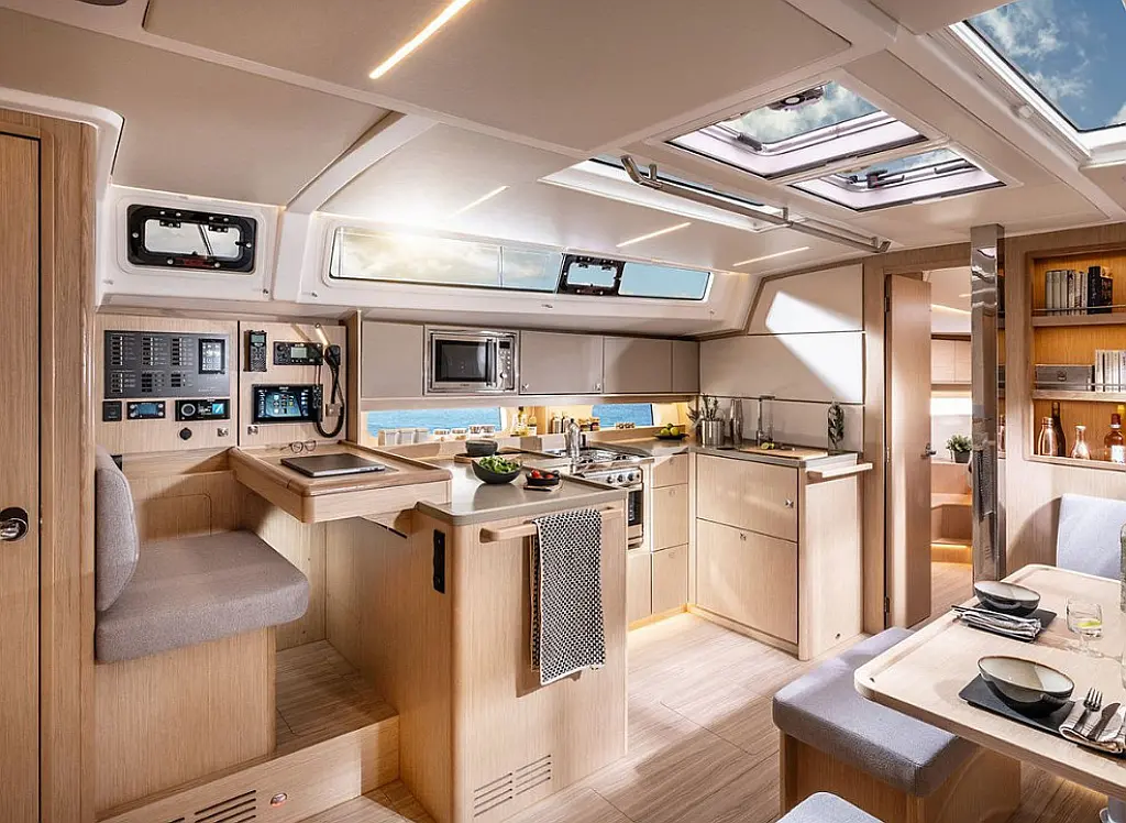Cockpit speakers, Electric toilet, Holding tank, Bimini, Cockpit cushions, Refrigerator, Barbecue grill in cockpit, Dinghy, Sprayhood, Teak Cockpit, Coffee maker, Air condition, Heating, Solar Panels