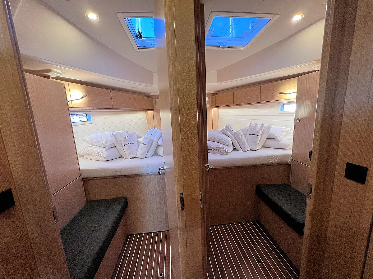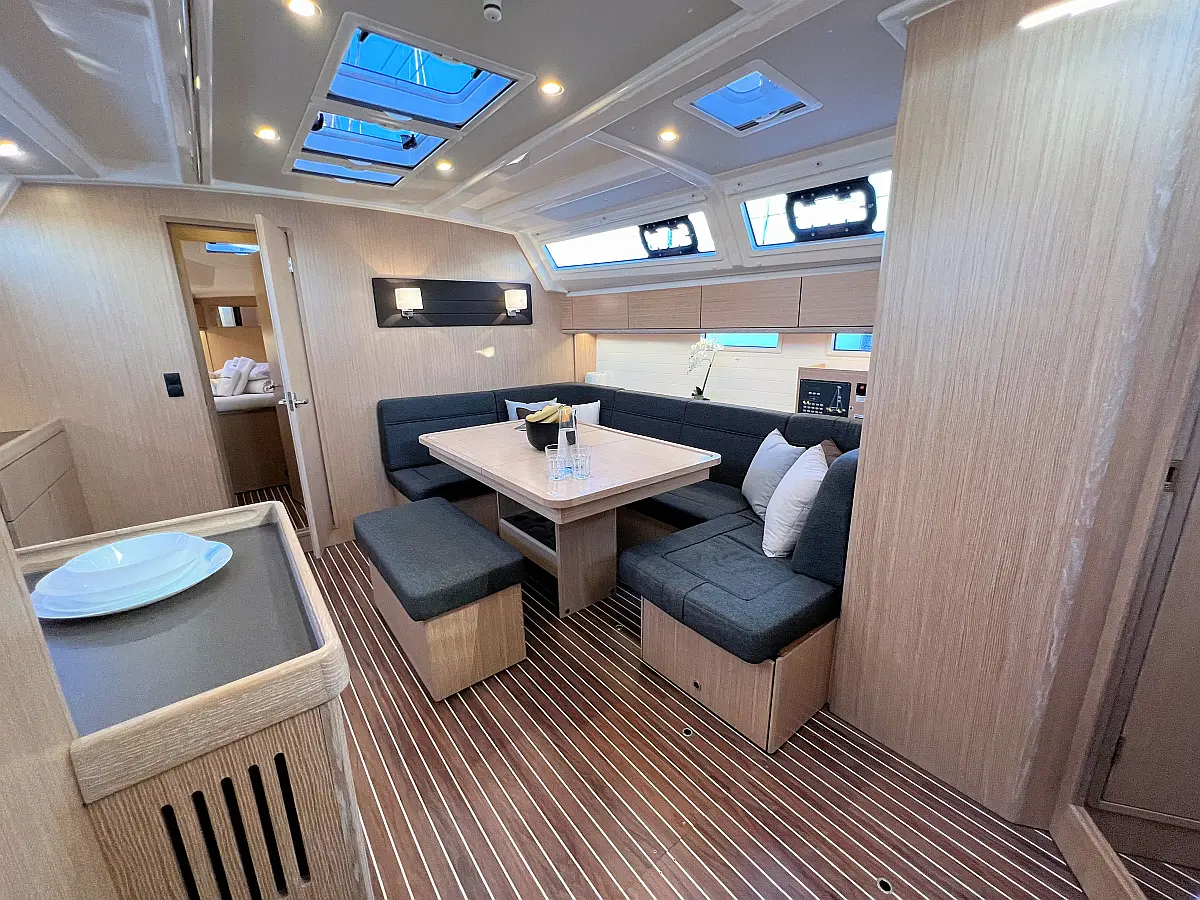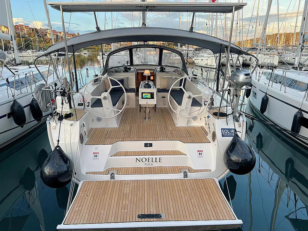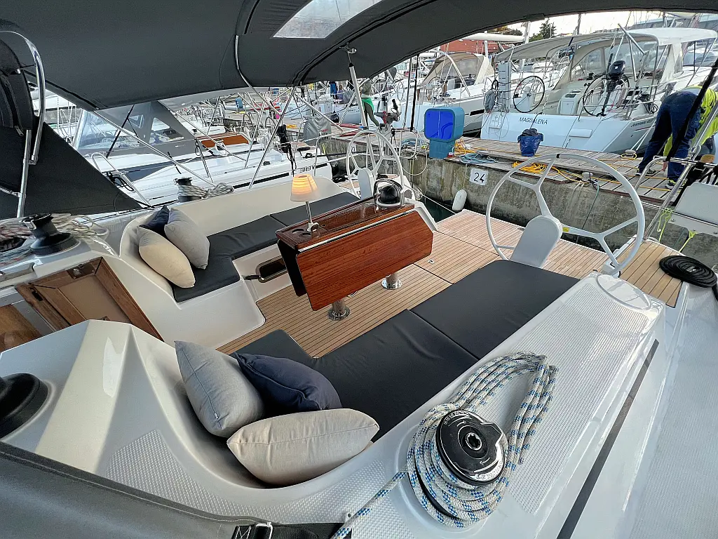 Cockpit speakers, Holding tank, Bimini, Cockpit cushions, Dinghy, Sprayhood, Teak Cockpit, Refrigerator, Heating, Solar Panels