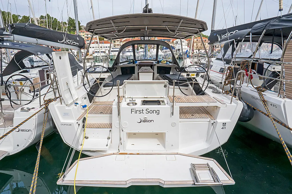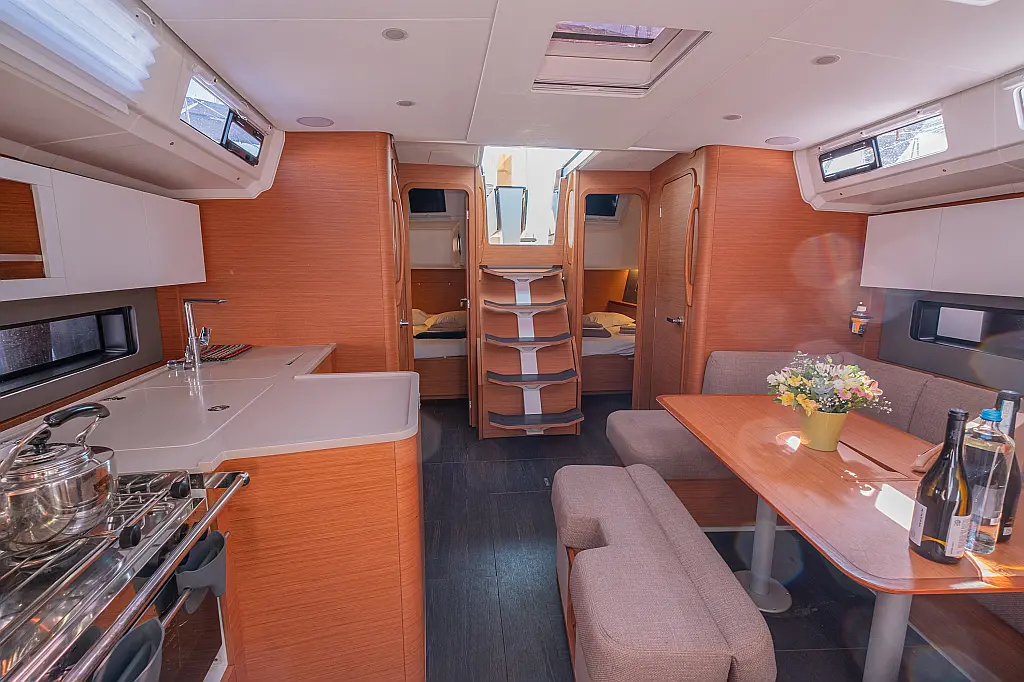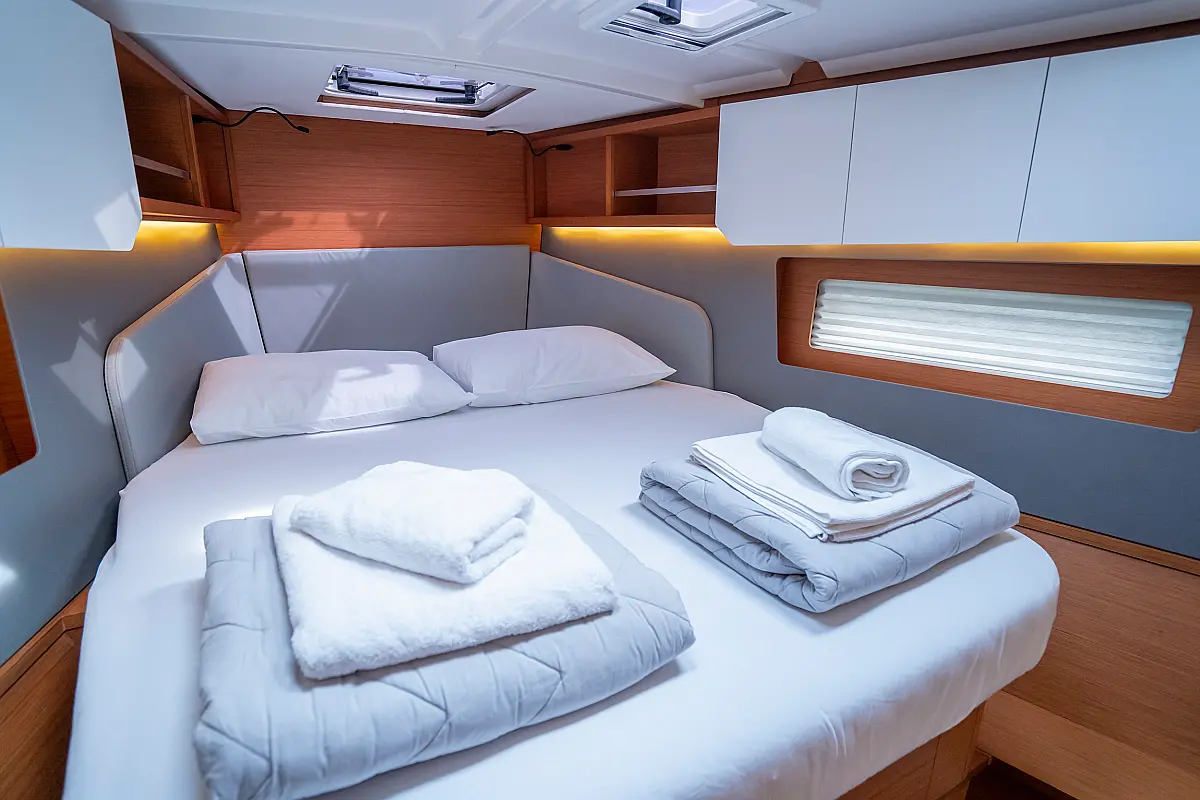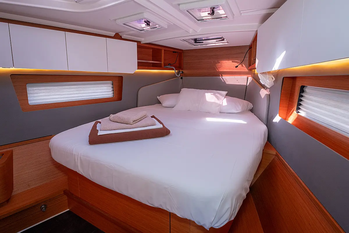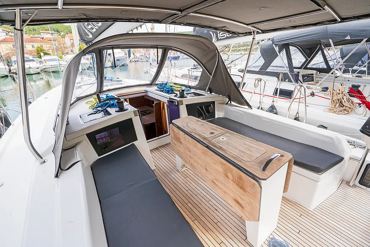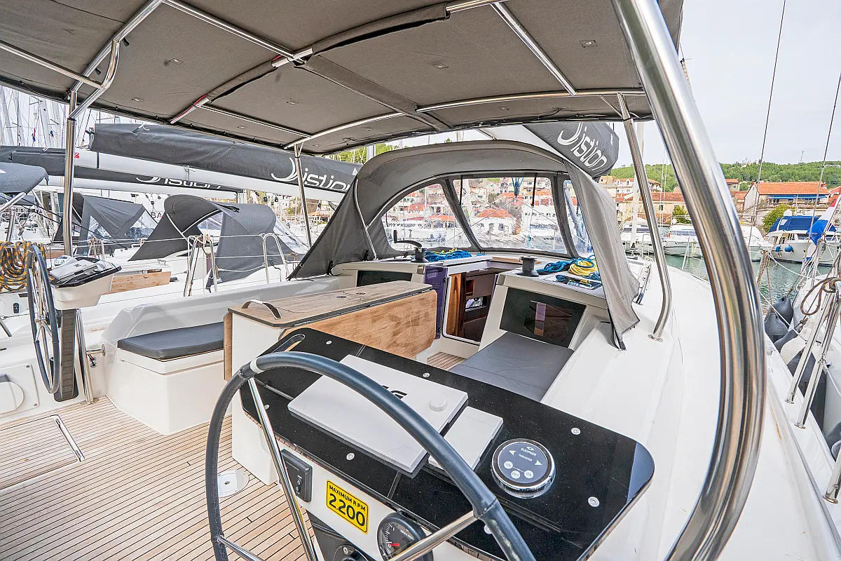 Cockpit cushions, Sprayhood, Bimini, Coffee maker, Wi-Fi & Internet, Holding tank, Dinghy, Outboard engine, Inverter, Heating, Electric toilet, Barbecue grill in cockpit, Cockpit speakers, Solar Panels, Refrigerator