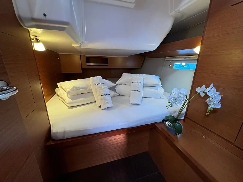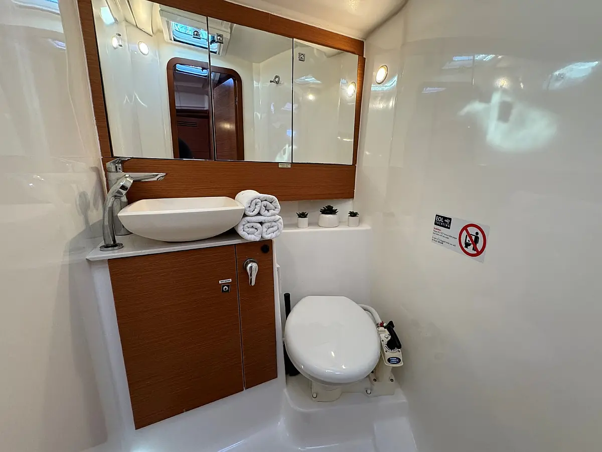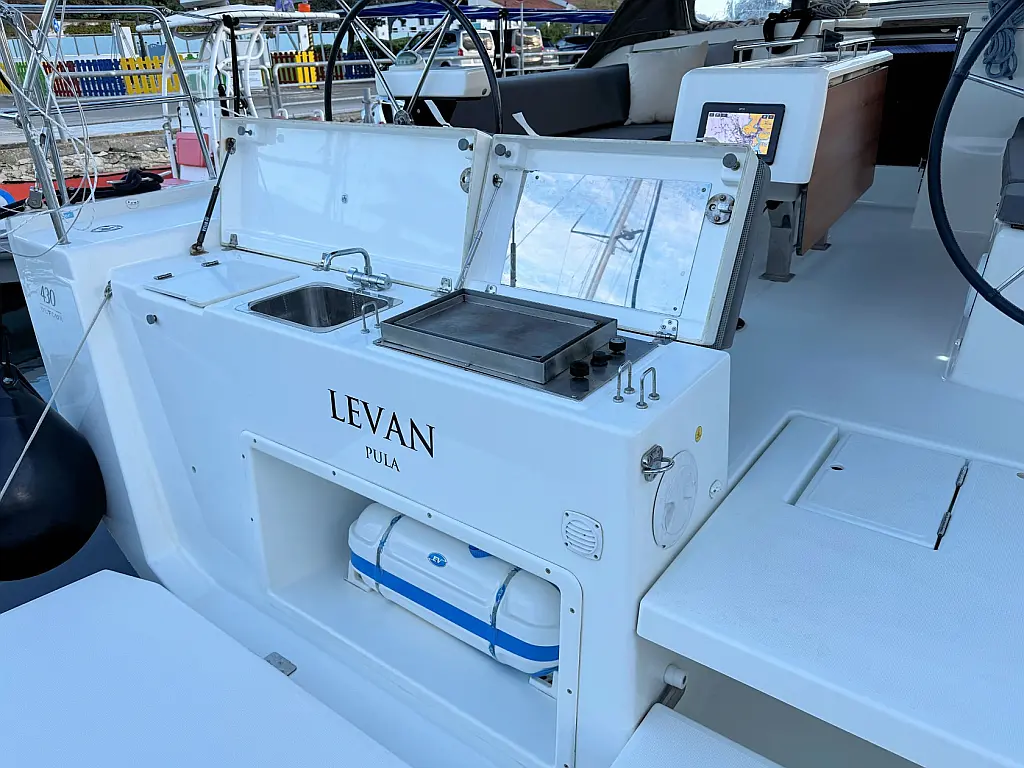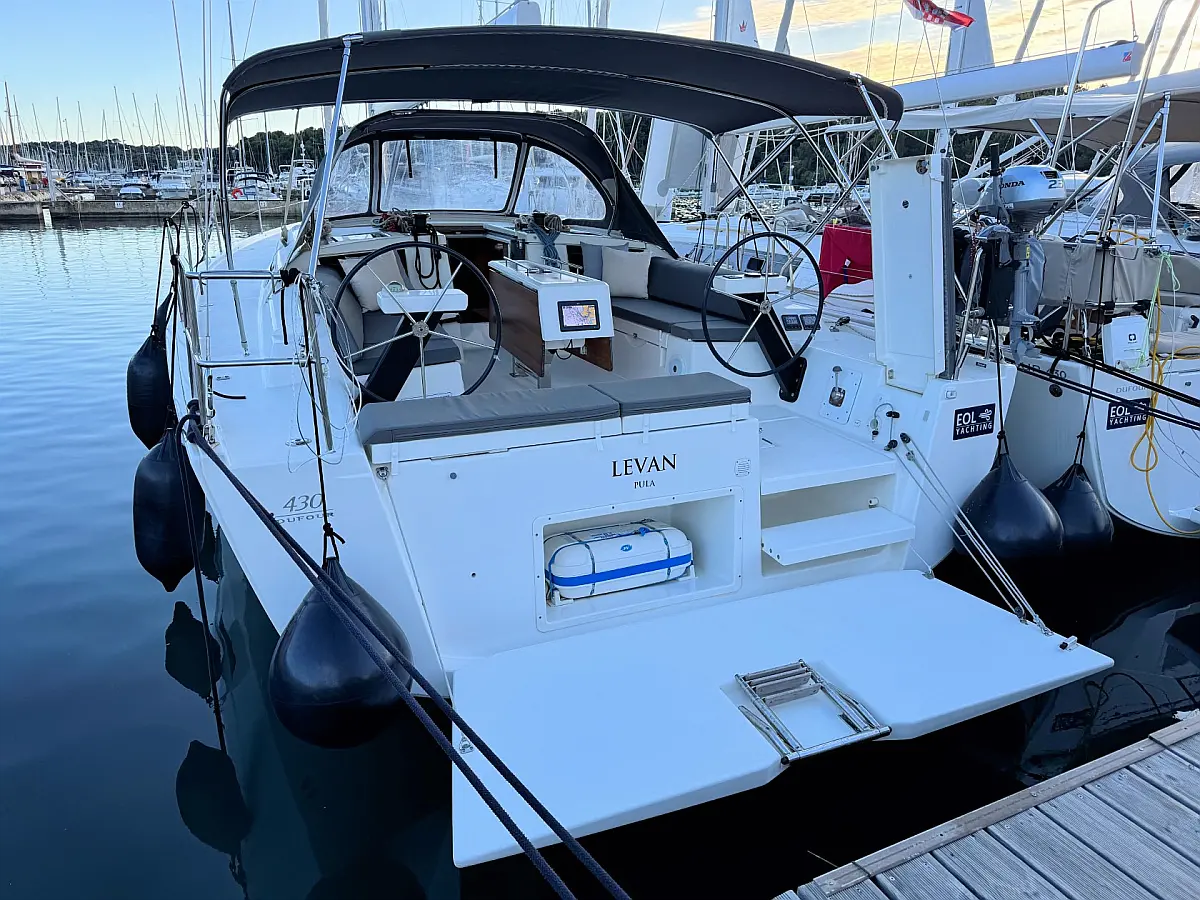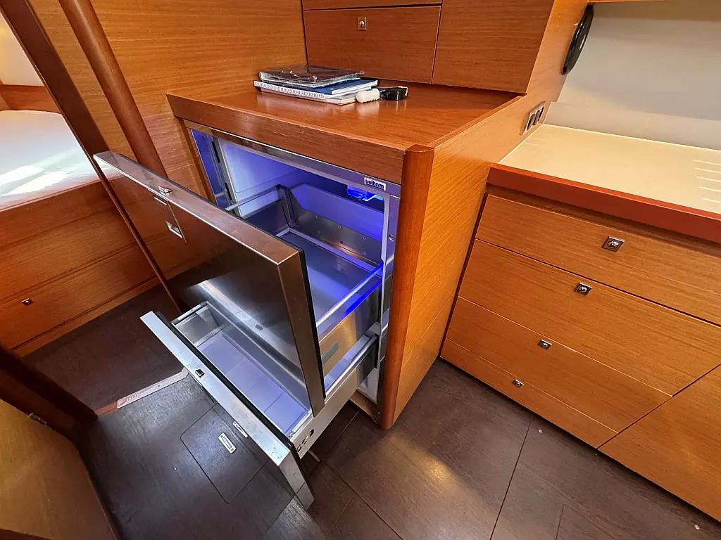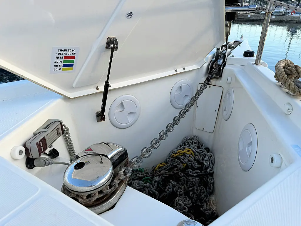 Cockpit speakers, Holding tank, Bimini, Cockpit cushions, Barbecue grill in cockpit, Dinghy, Sprayhood, Refrigerator, Air condition, Heating